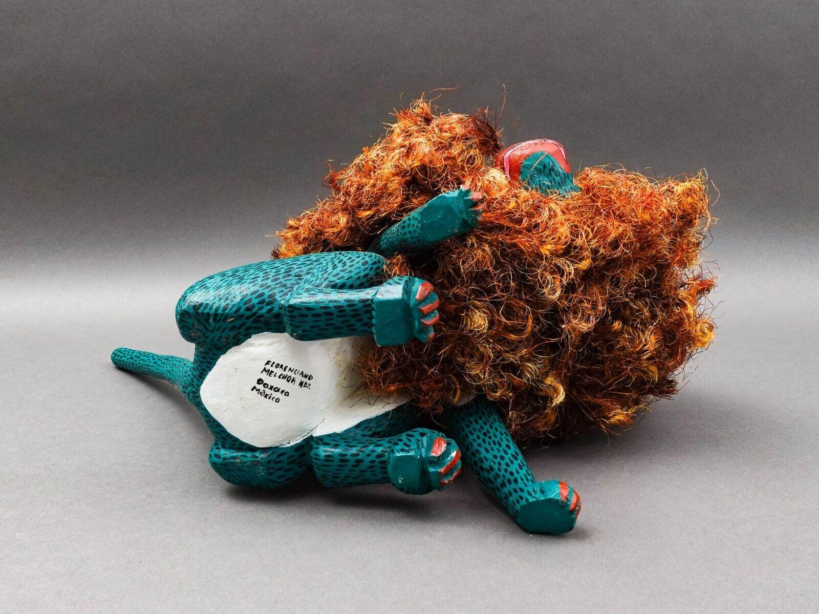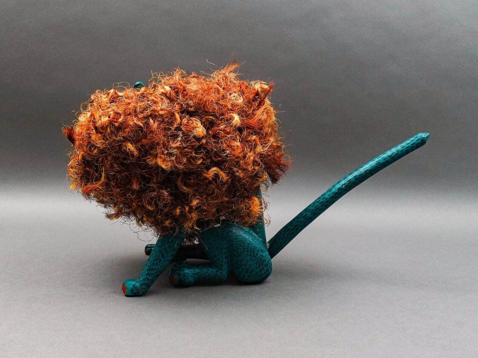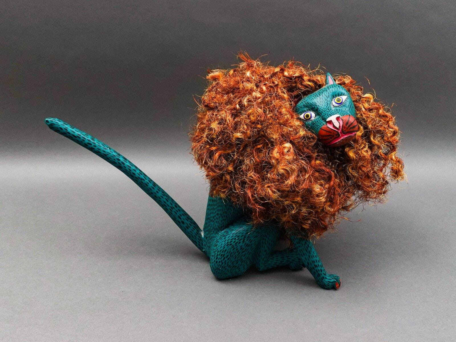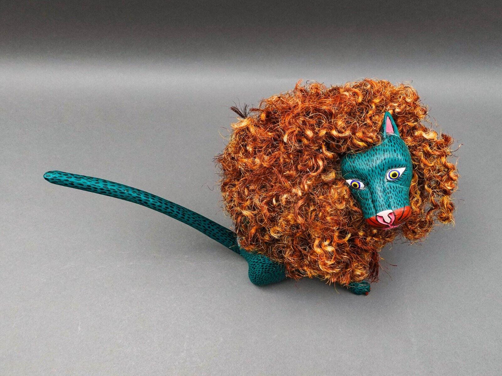 Florenciano Melchor Mdz. Oaxaca Mexico Wood Carving Lion Cat Art Sculpture 18.5"