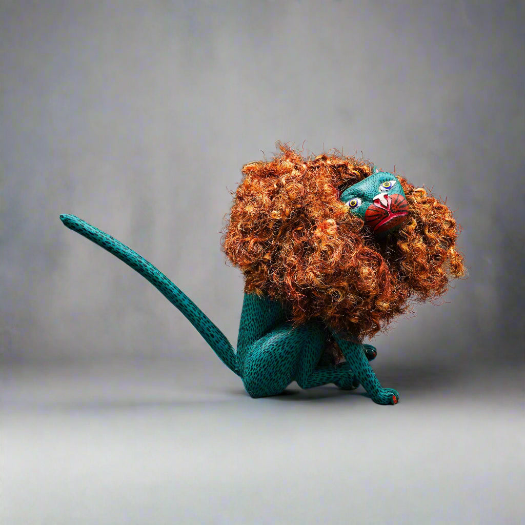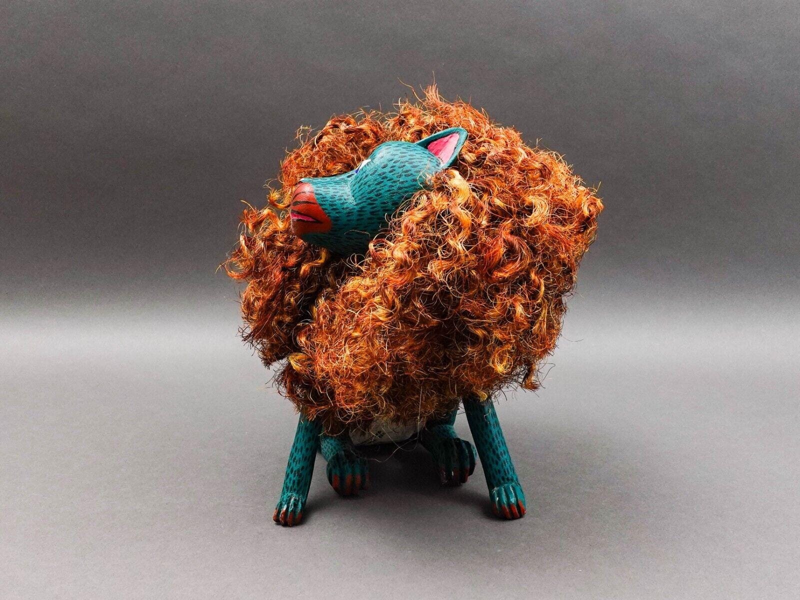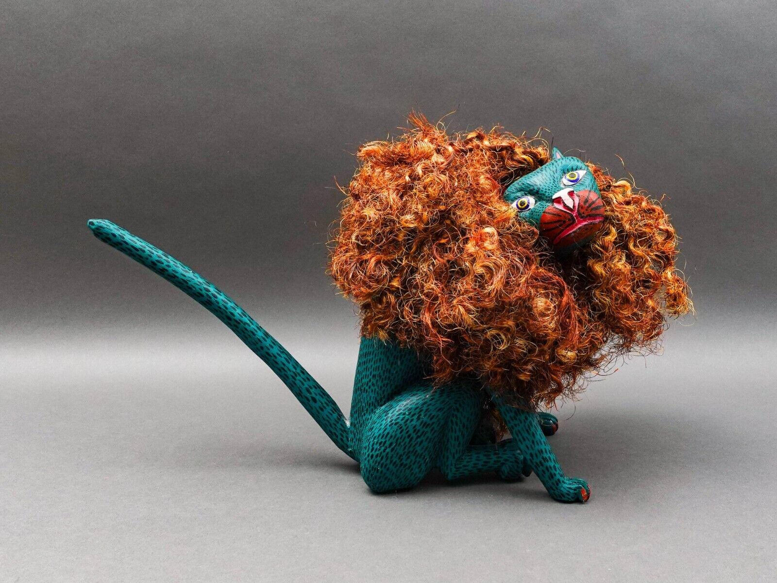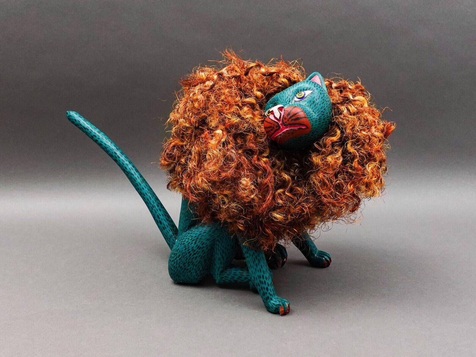 Florenciano Melchor Mdz. Oaxaca Mexico Wood Carving Lion Cat Art Sculpture 18.5"