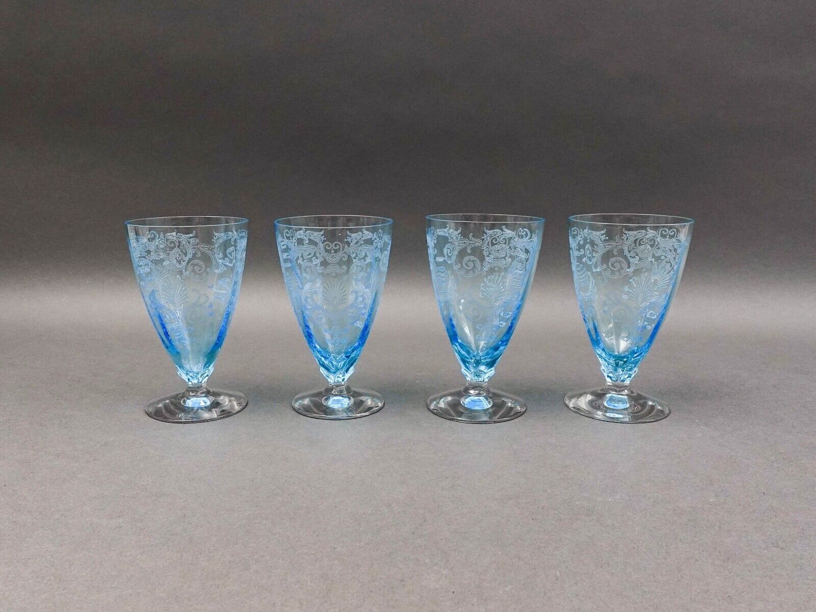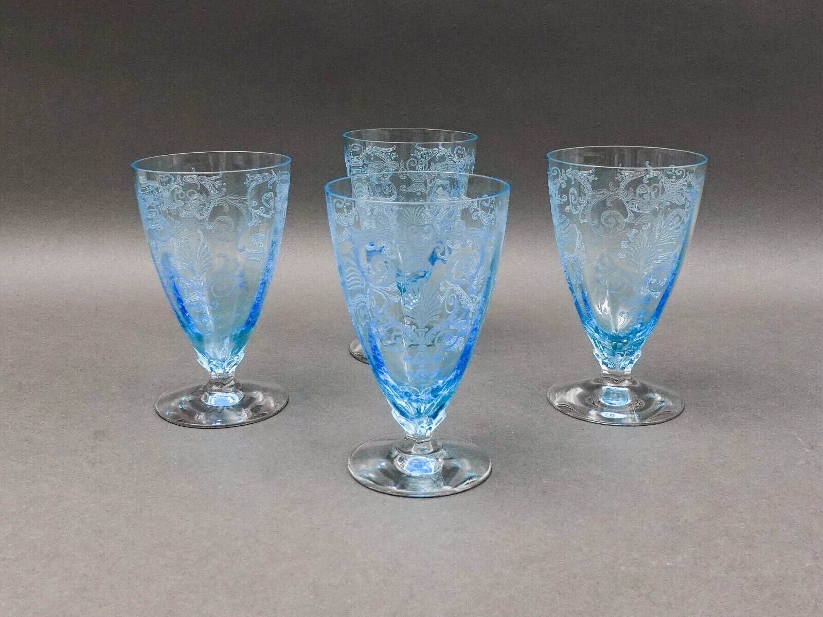 Fostoria Versailles Azure Blue Etched Crystal Parfait Tumbler Glasses Set Of 4