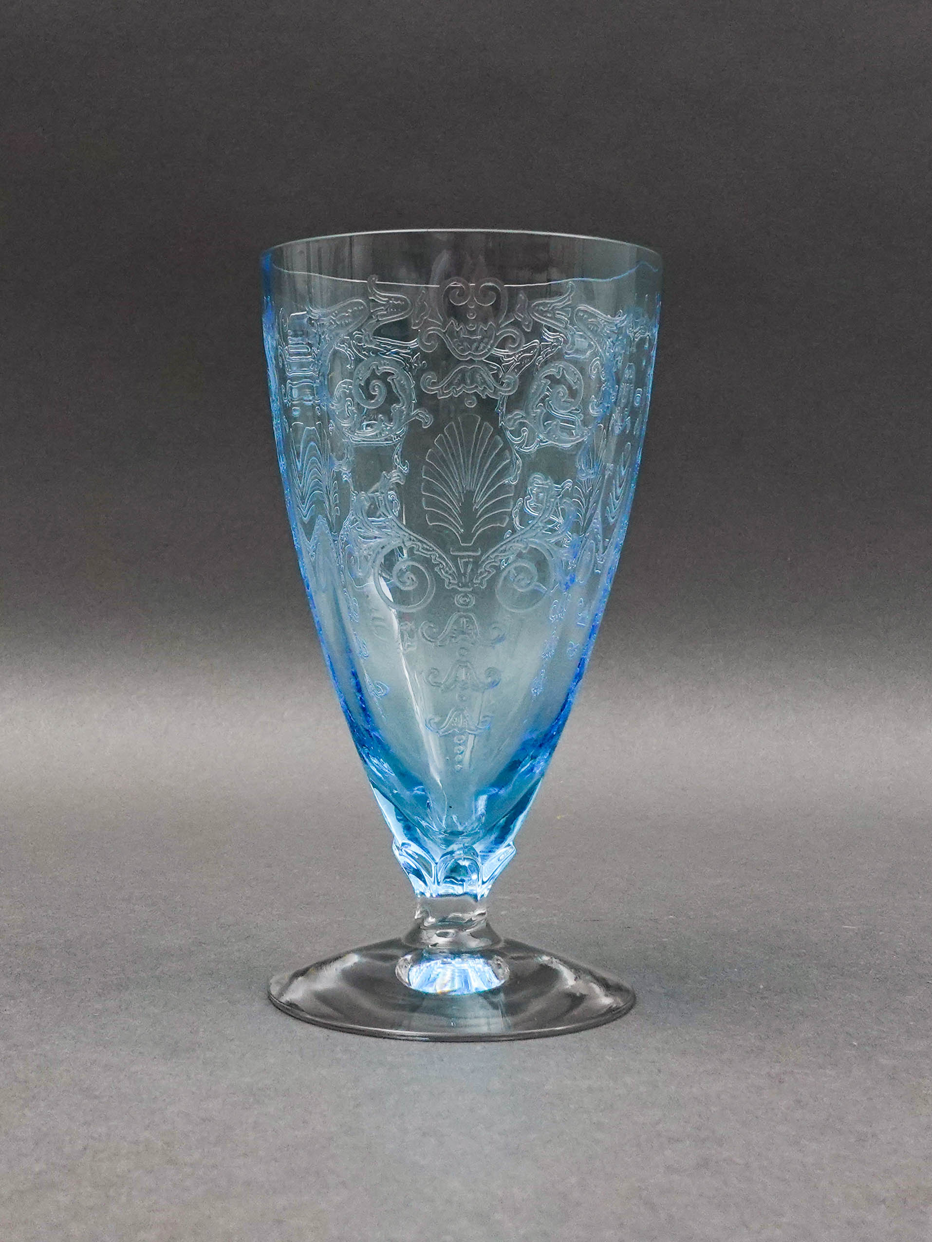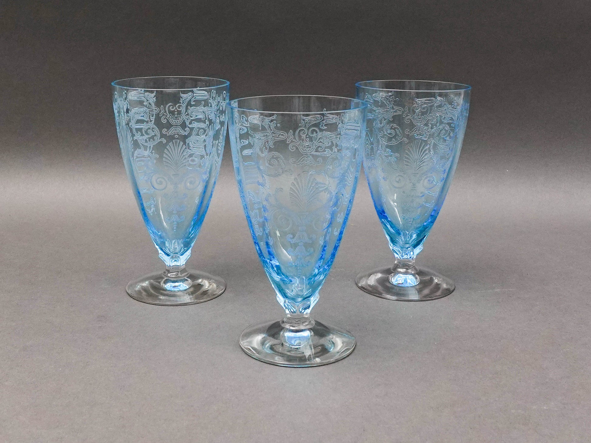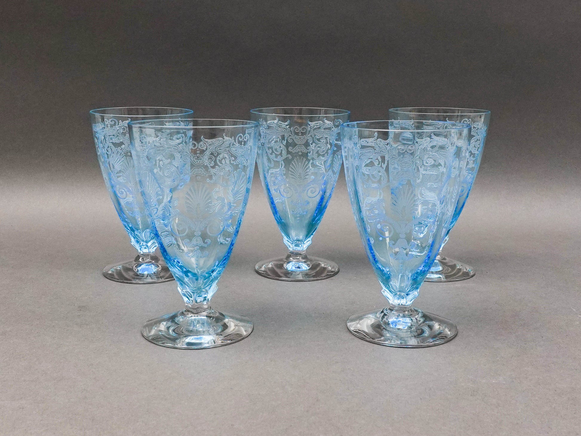 Fostoria Versailles Azure Blue Etched Crystal Parfait Tumbler Glasses Set Of 5