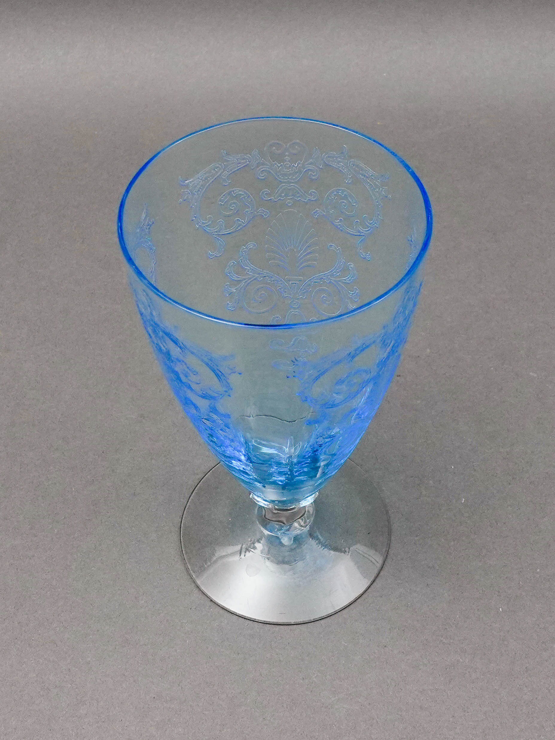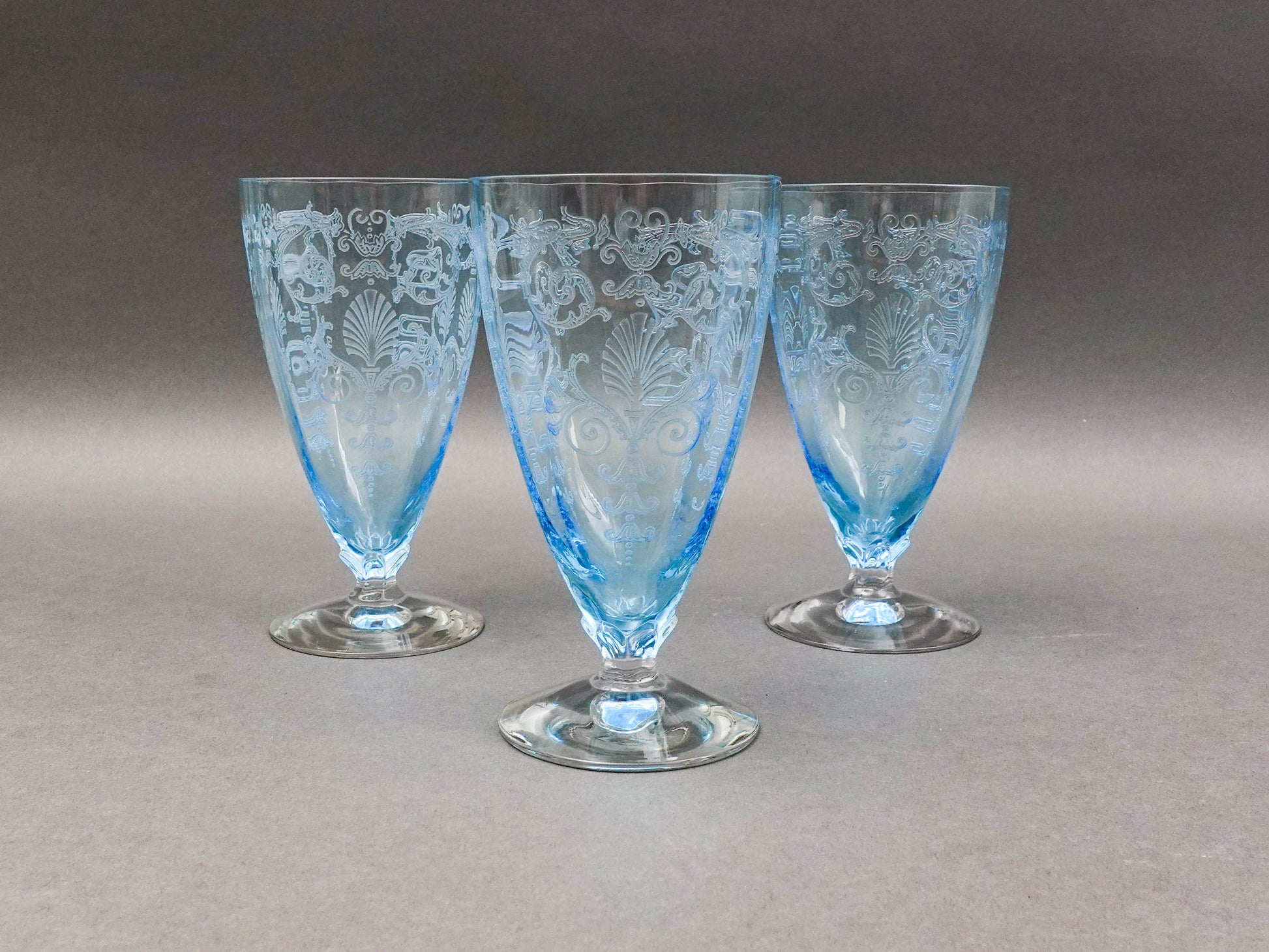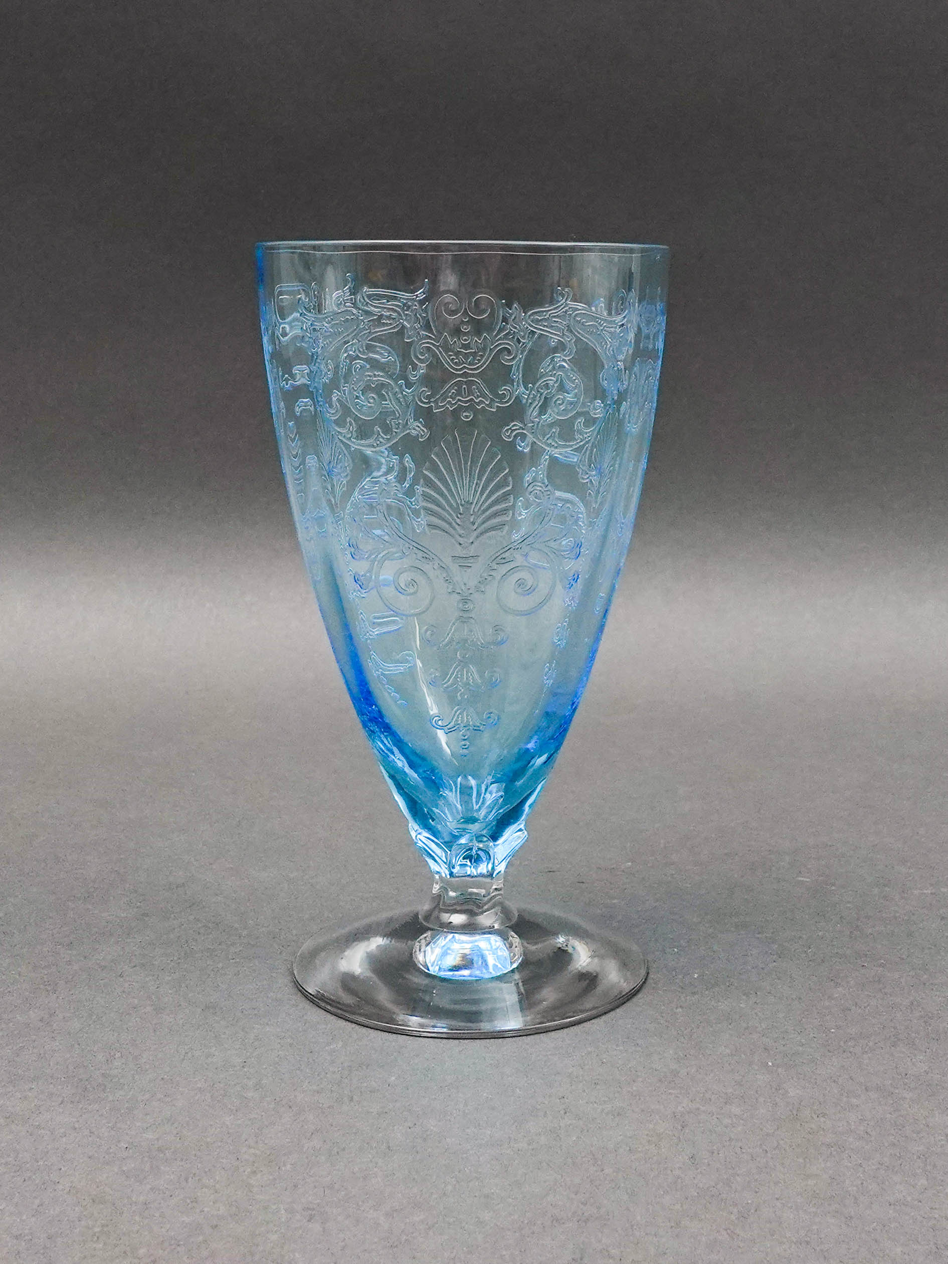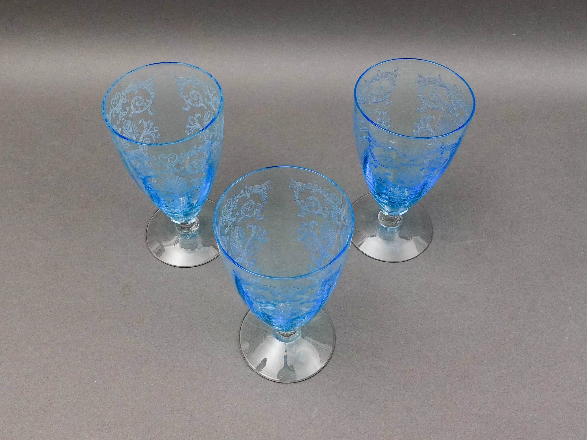 Fostoria Versailles Azure Blue Etched Crystal Parfait Tumbler Glasses Set Of 5