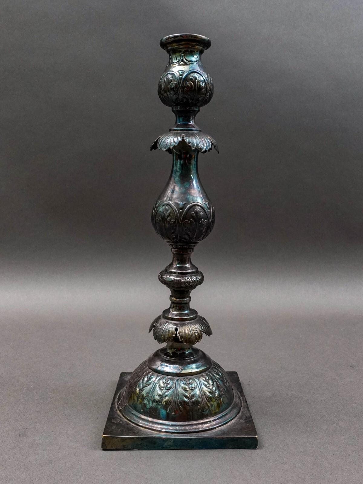 Antique Fraget Warszawa Poland Shabbat Sabbath Judaica Silver Plated Candlestick