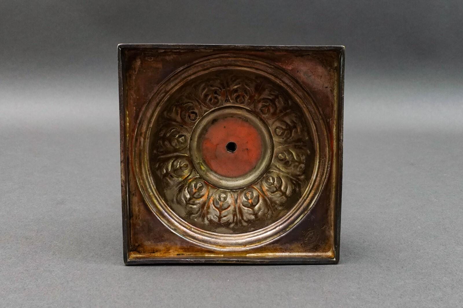 Candle Holder.Measures approximately 4 1/2" long, 4 1/2" wide, 11 7/8" high. Great pre-owned condition. Item is being sold as found. No chips, cracks or repairs. ]Some normal patina and light scratches. Overall fantastic appearance!!!