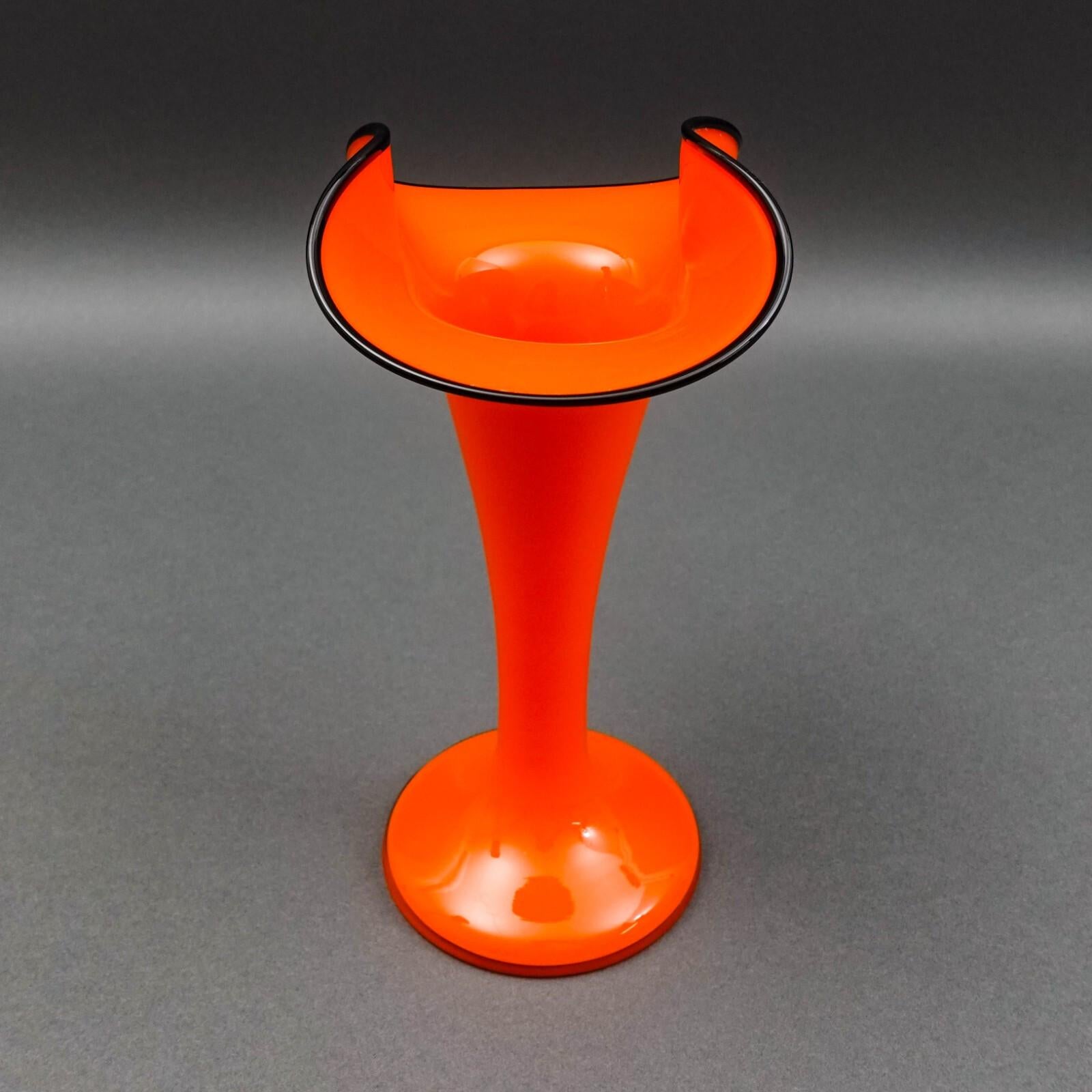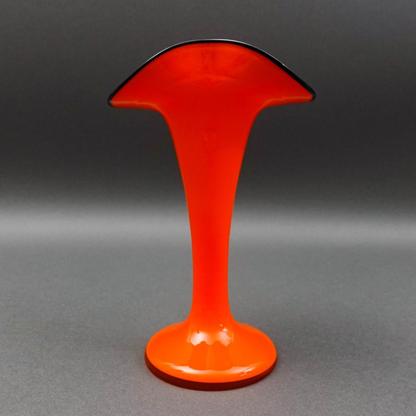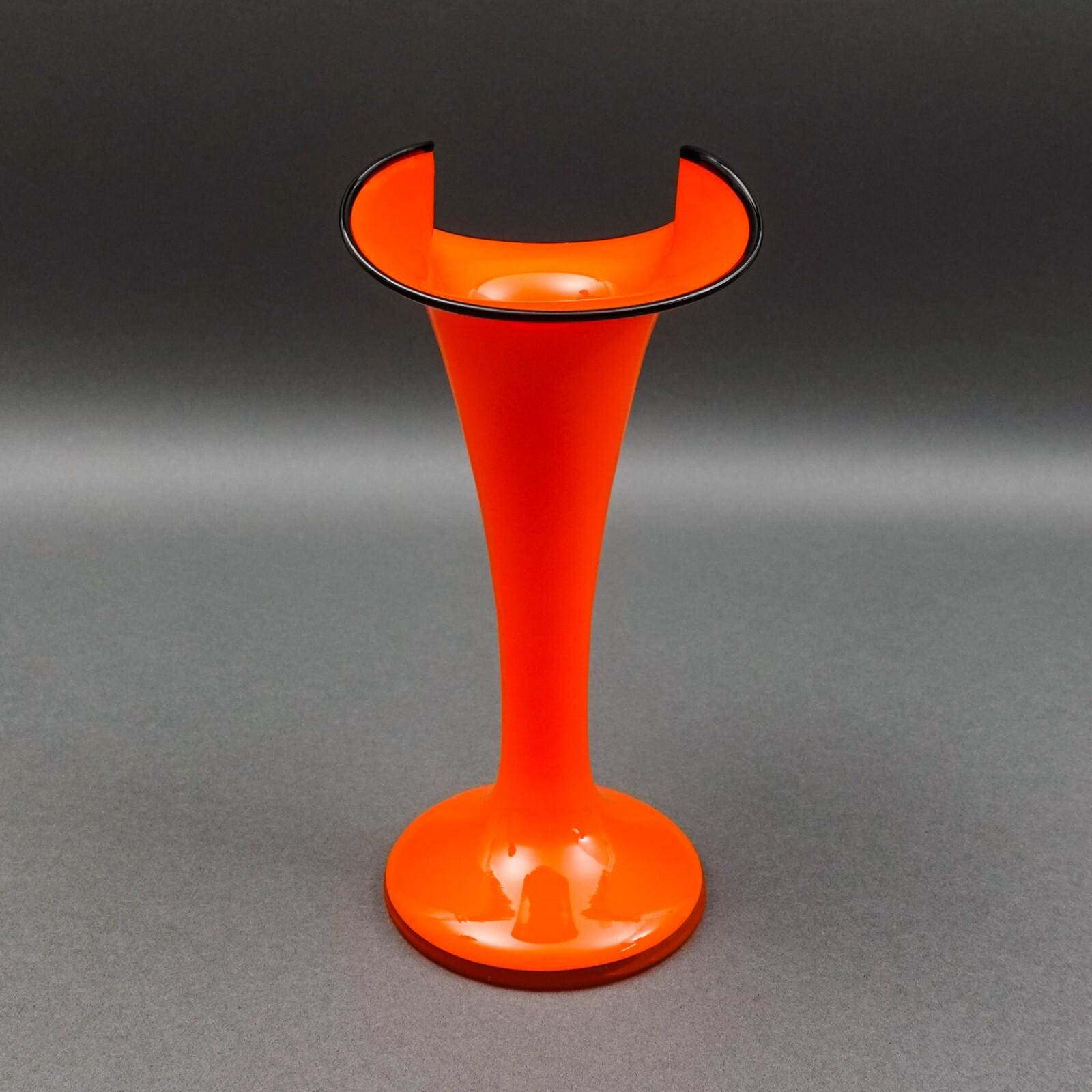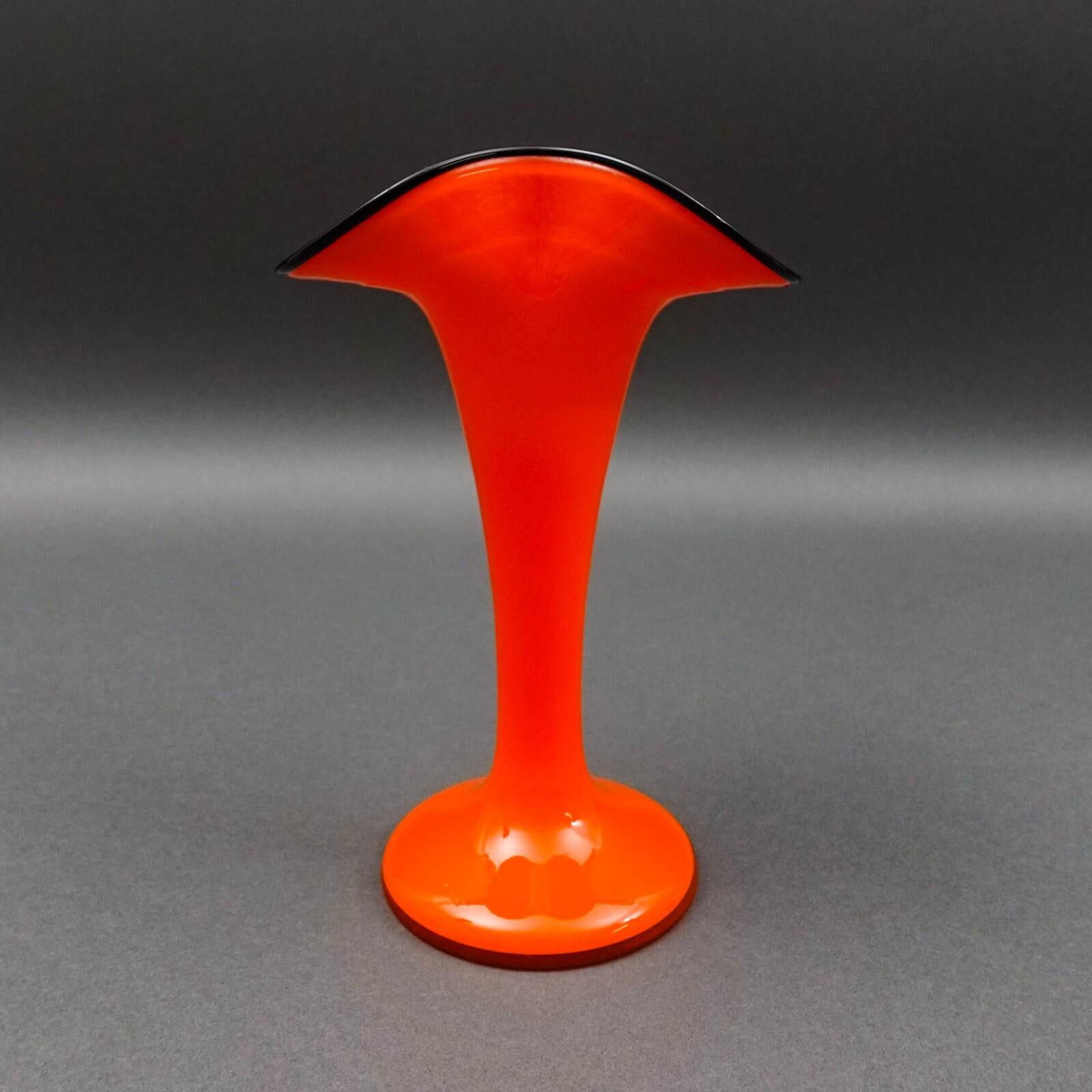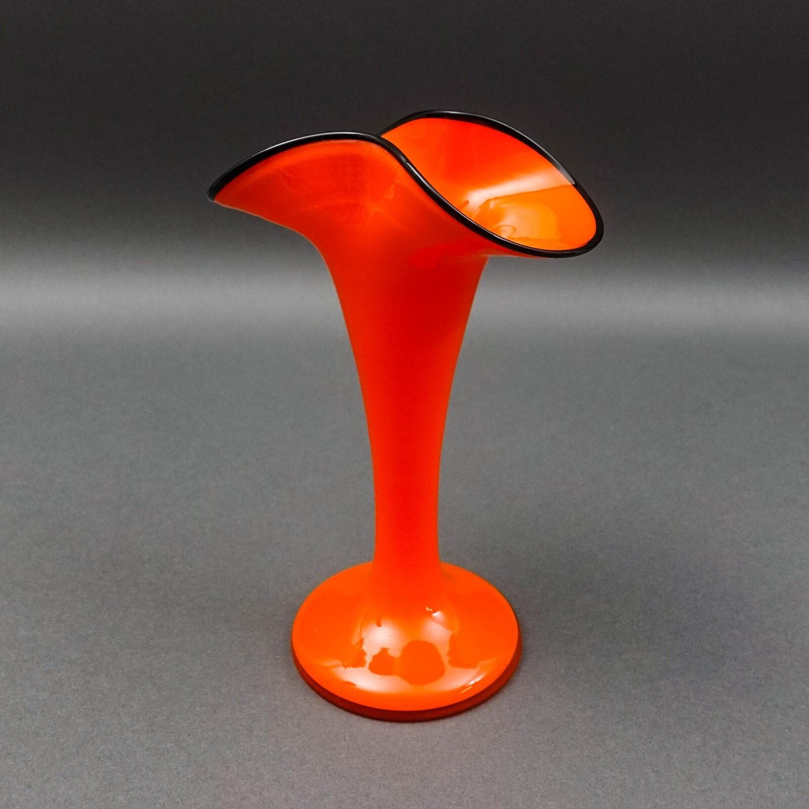 Franz Welz Bohemian Czech Art Deco Tango Art Glass Fluted Trumpet Vase.Measures approximately 5 1/8" long, 3 3/8" wide, 8" high.Excellent pre-owned condition. Item is being sold as found. No chips, cracks or