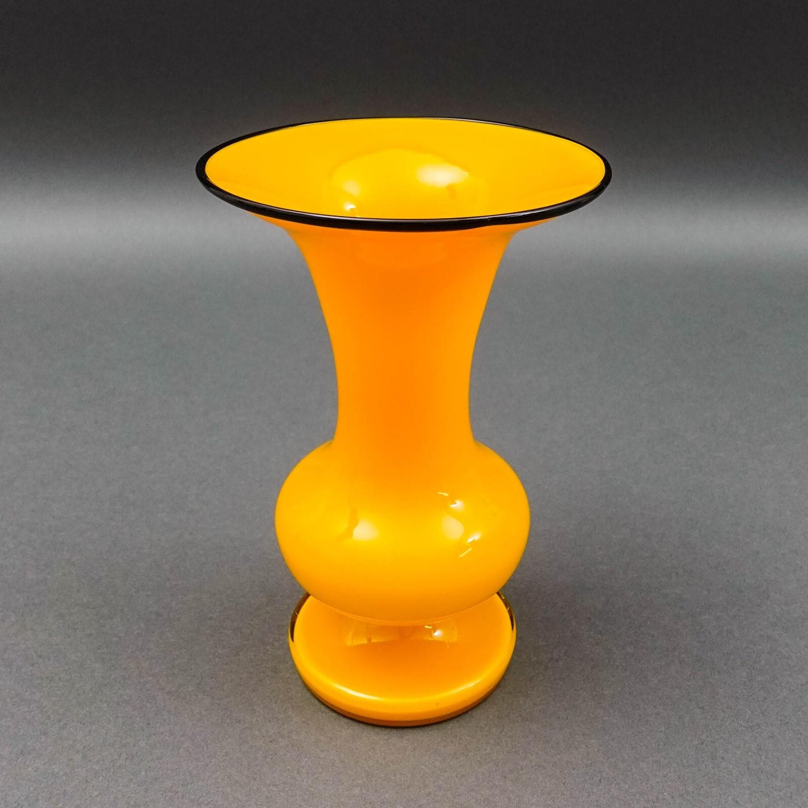 Franz Welz Bohemian Czech Art Deco Tango Art Glass Trumpet Vase.Measures approximately 4 3/8" diameter, 6 5/8" high.Excellent pre-owned condition. Item is being sold as found. No chips, cracks or