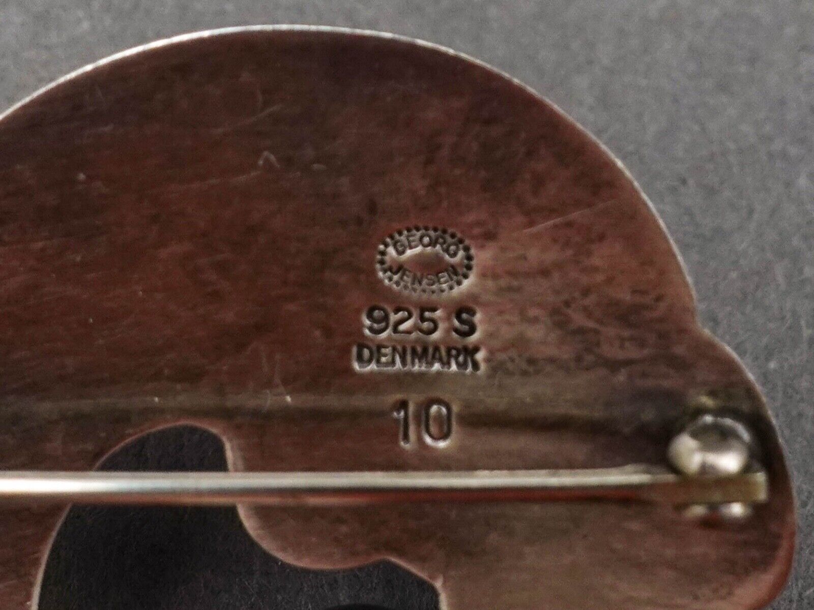 Georg Jensen Denmark Sterling Silver 925 Moonstone Fish Motif Brooch Pin