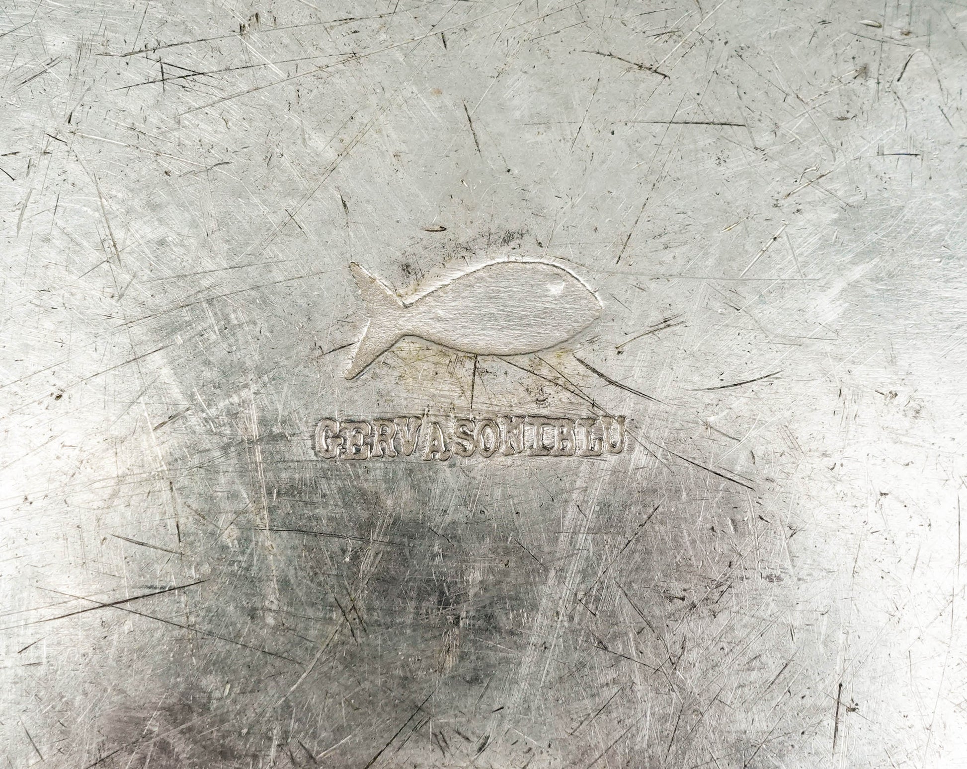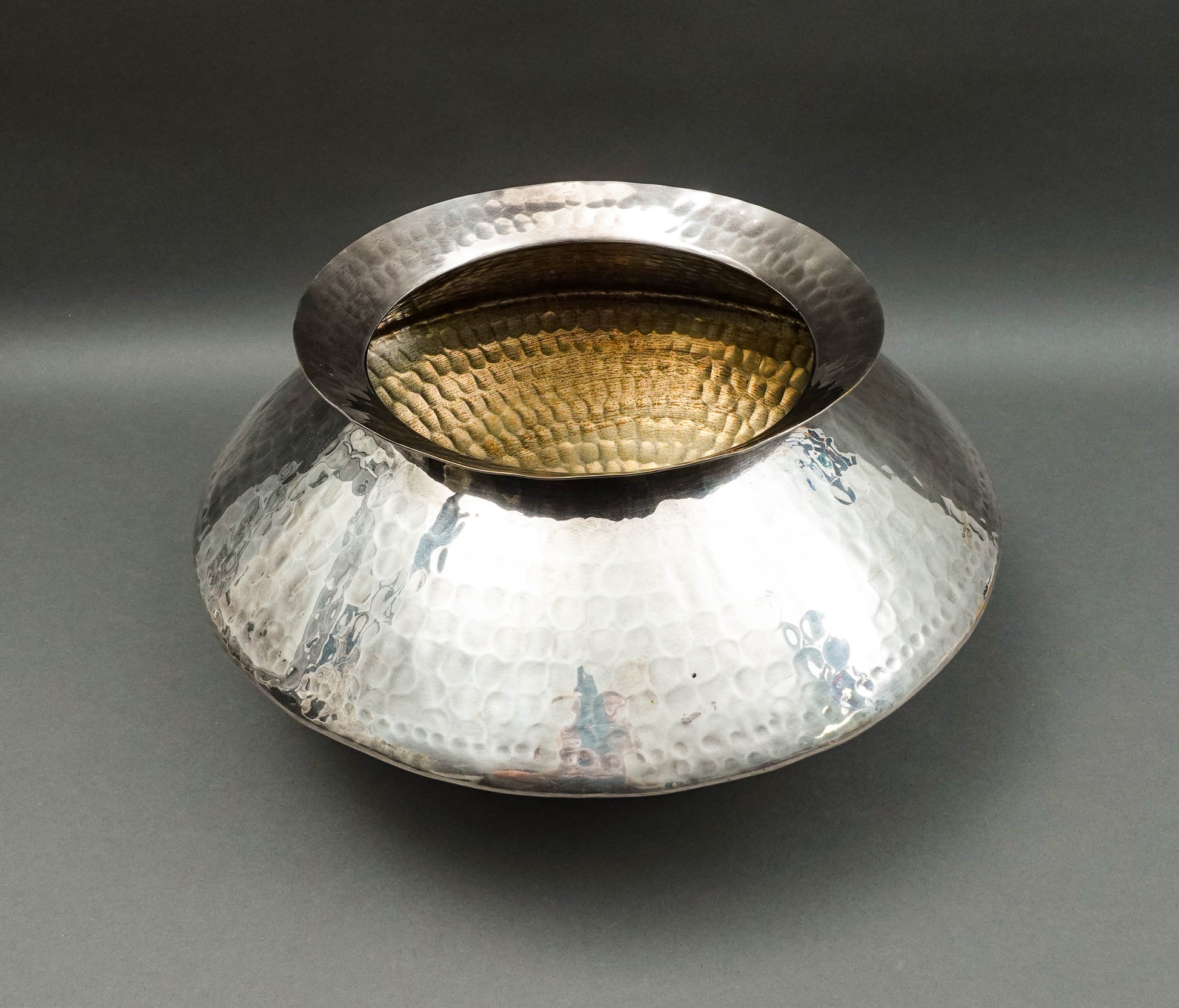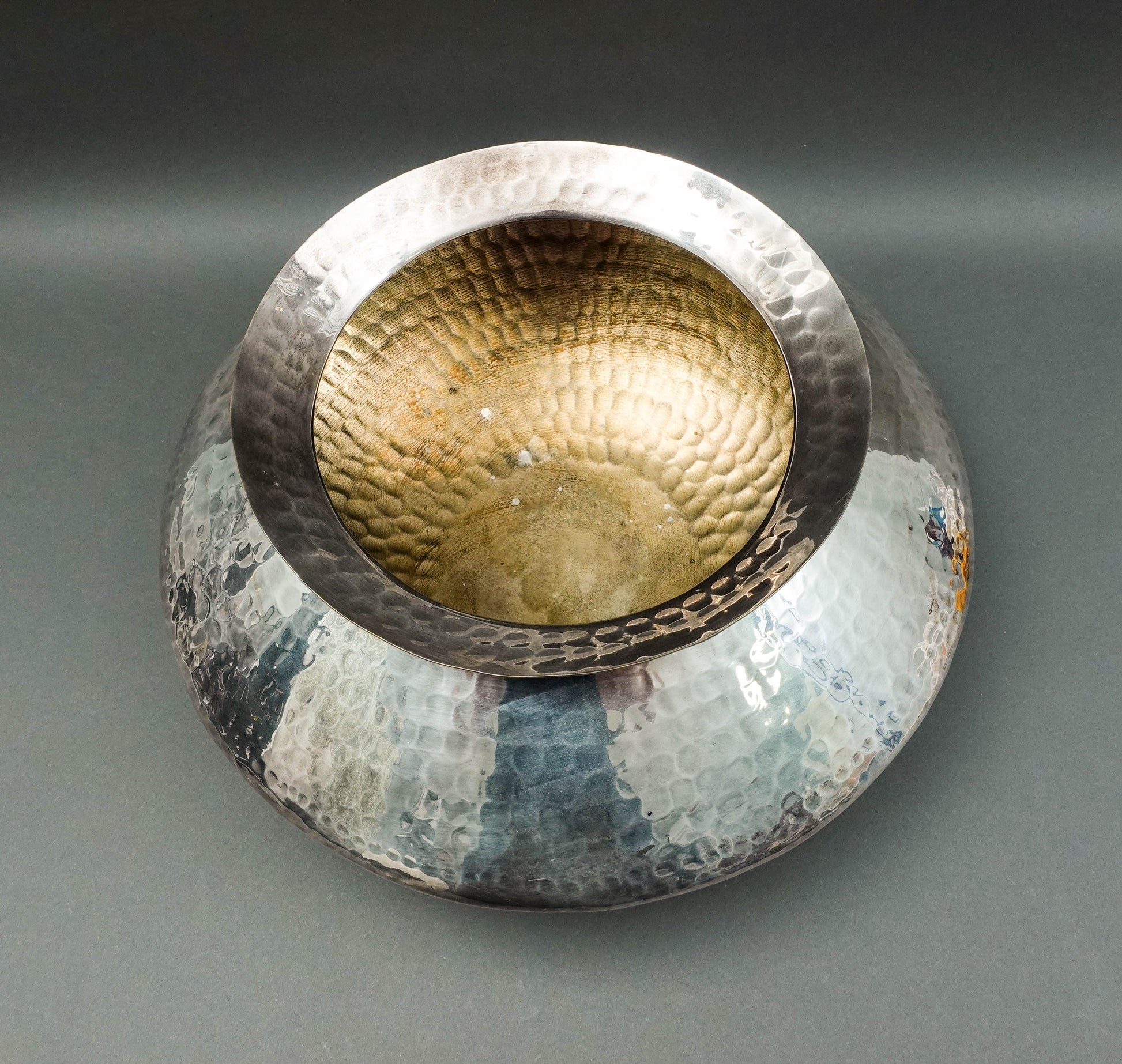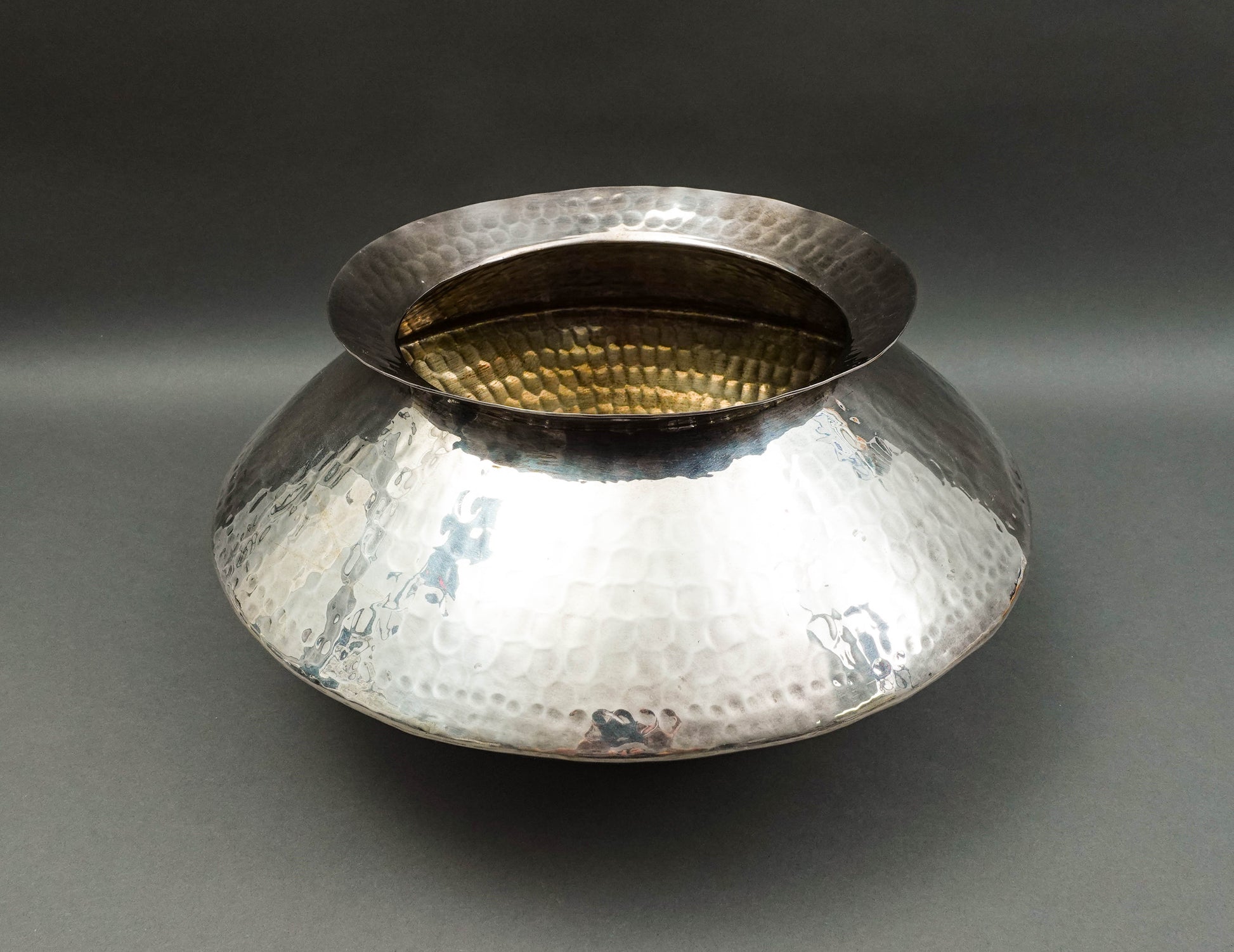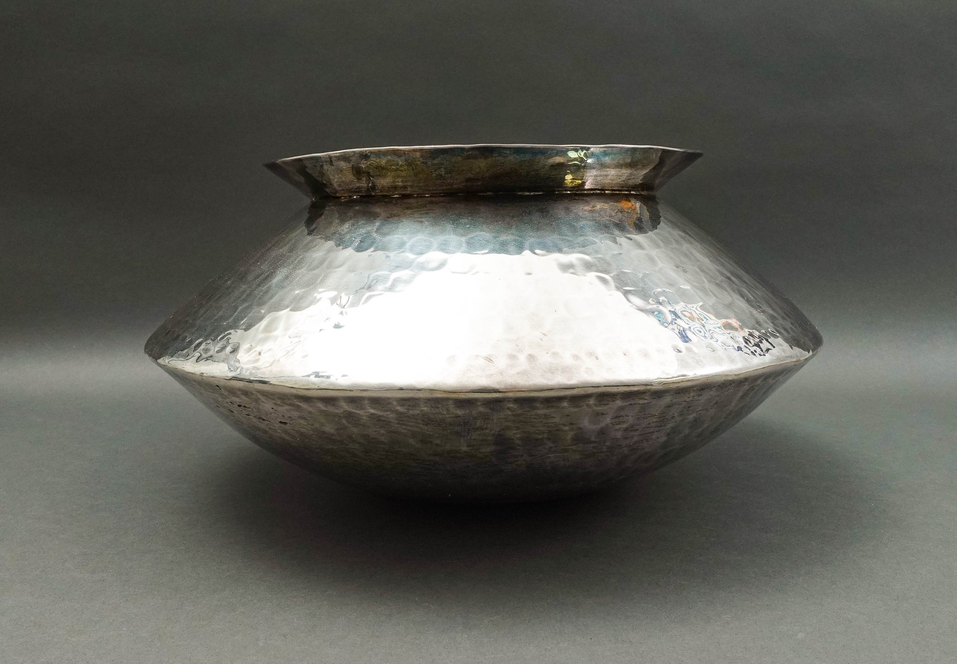 Gervasoni Blu Italy Hammered Silver Plated Metal Large Container Planter Vase.
