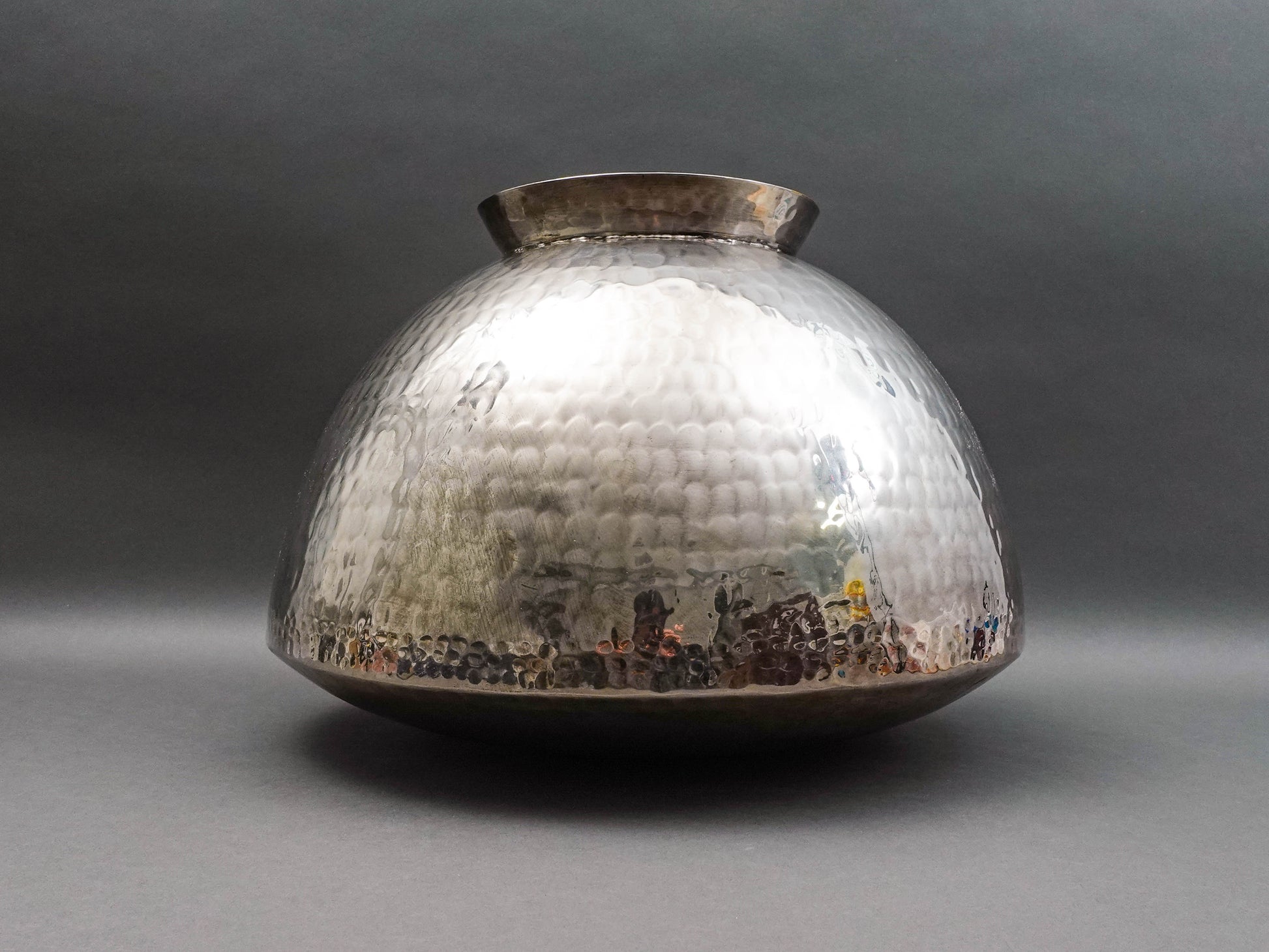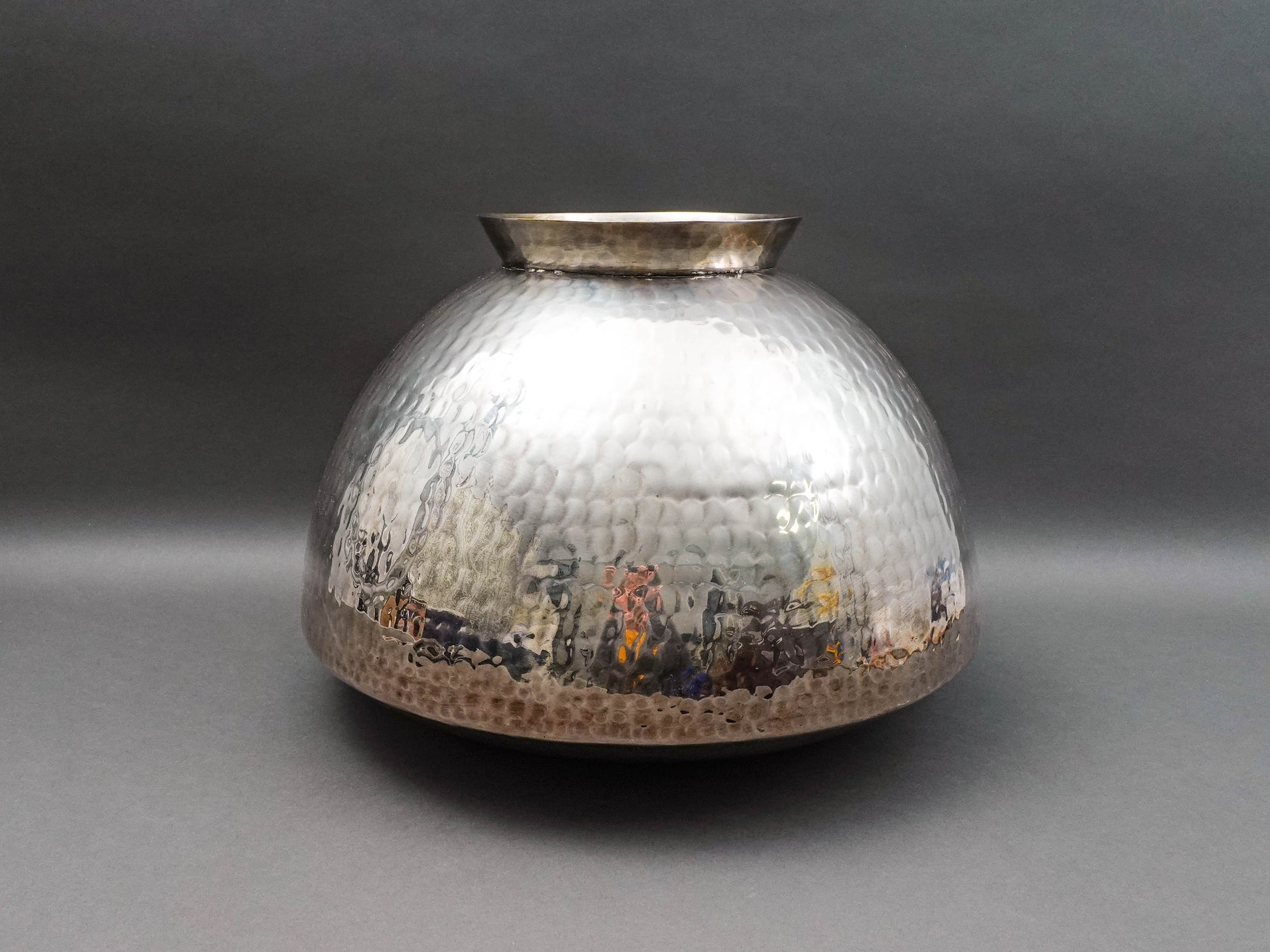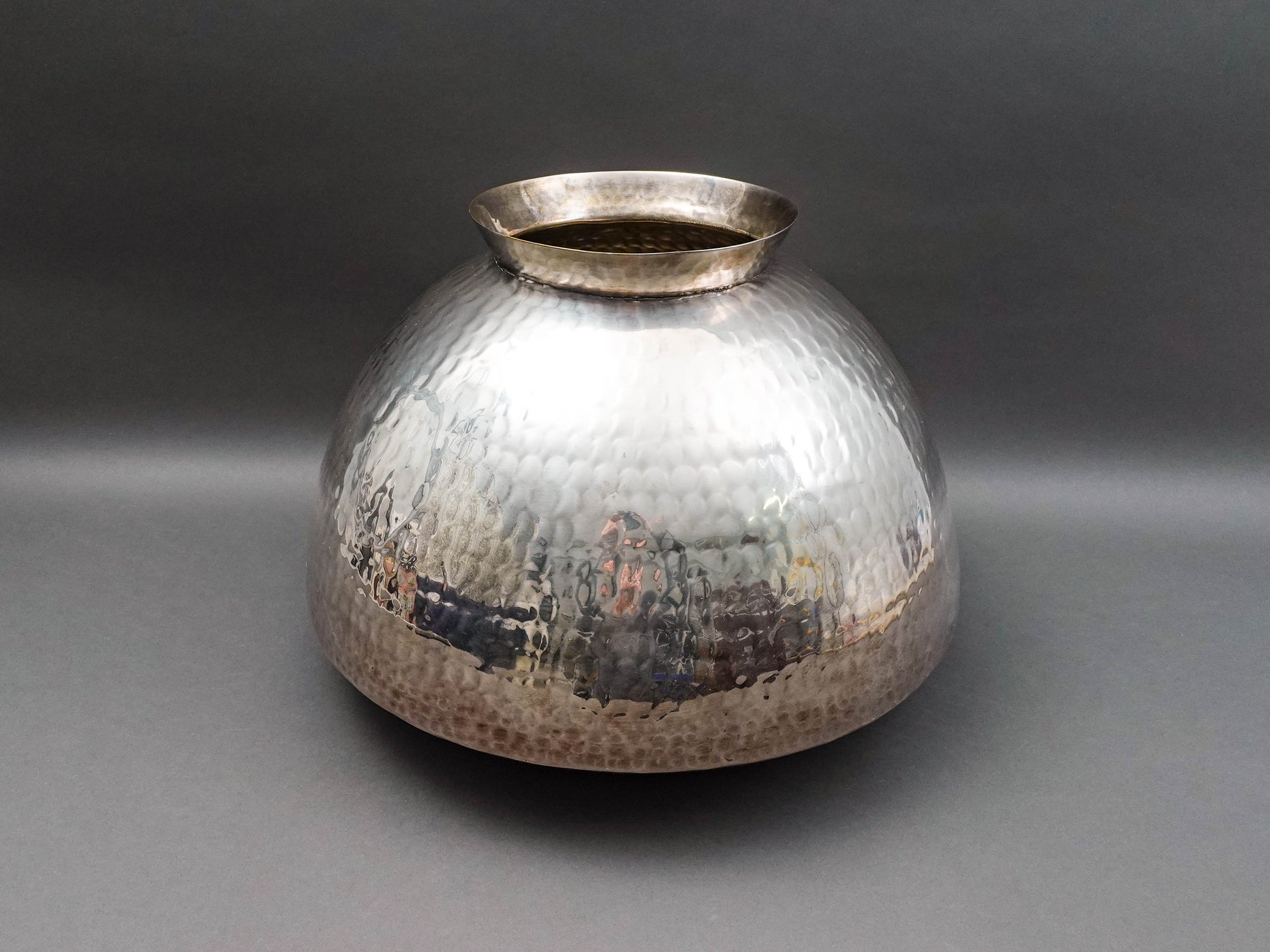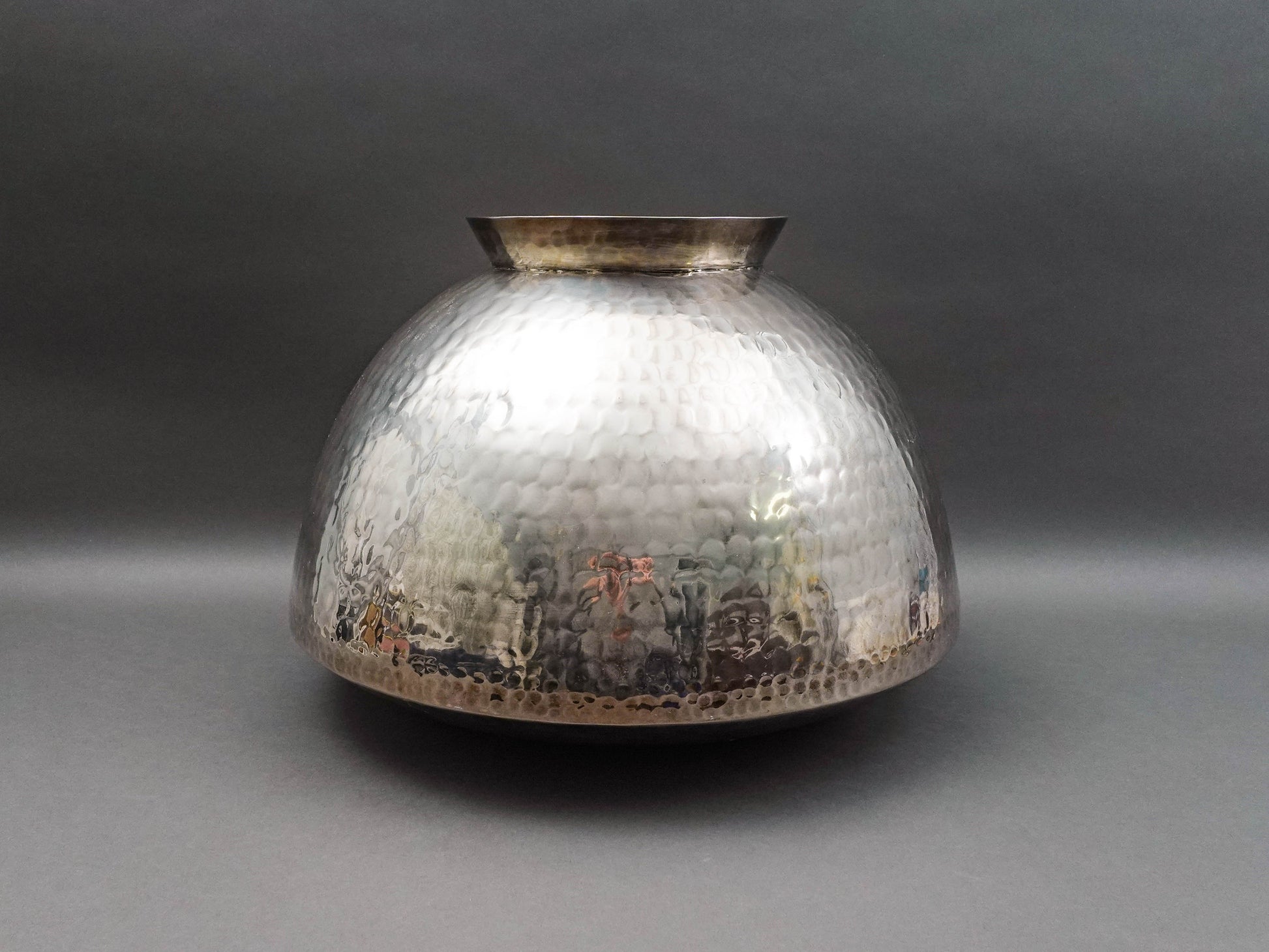 Gervasoni Blu Italy Hammered Silver Plate Metal Container Planter Vase 18"