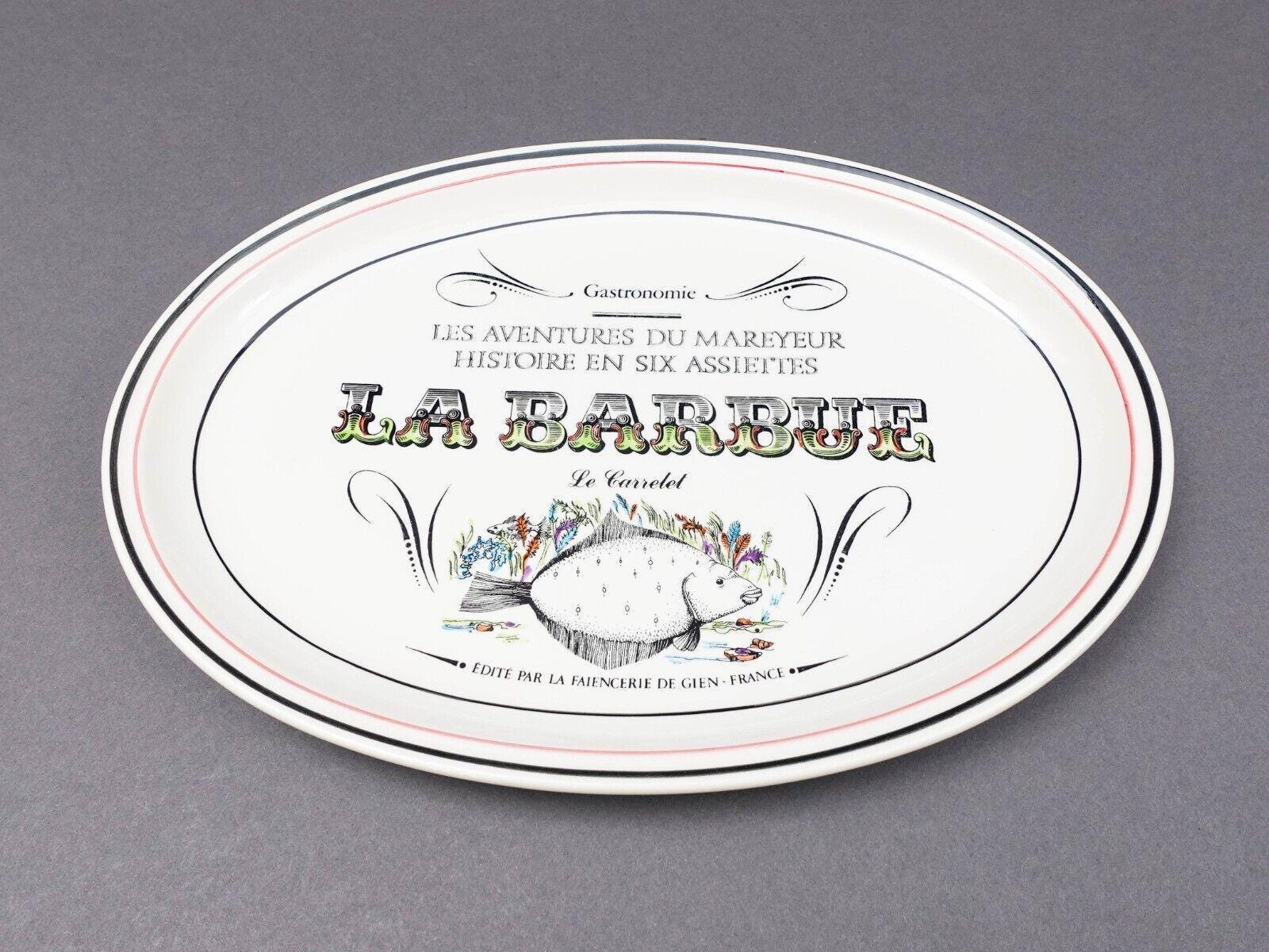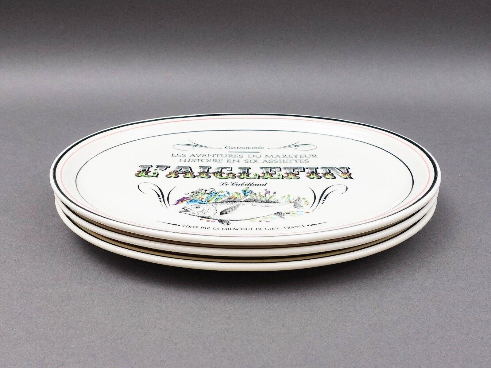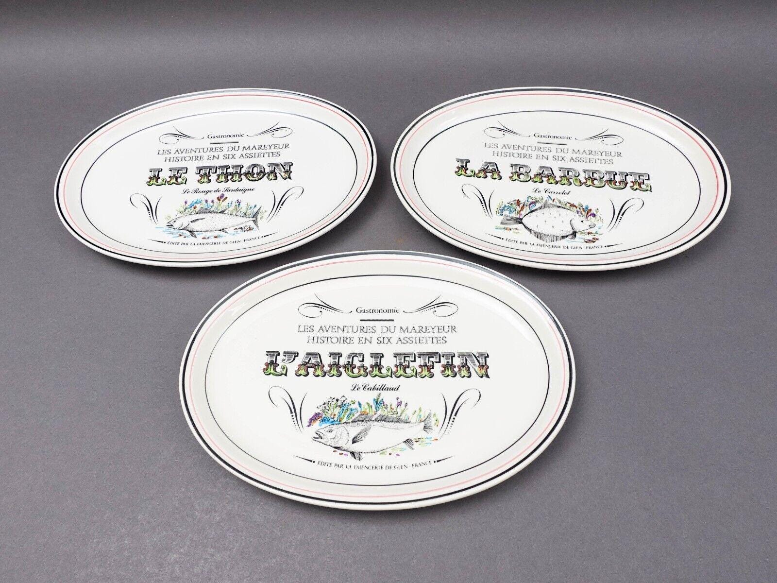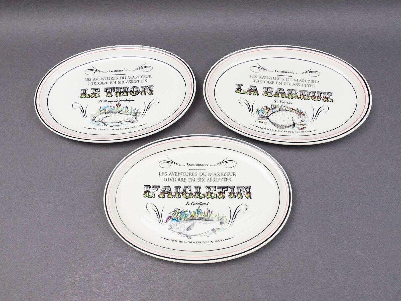 Gien France Les Adventures Du Mareyeur Thon Barbue L'Aiglefin Oval Fish Plates 3