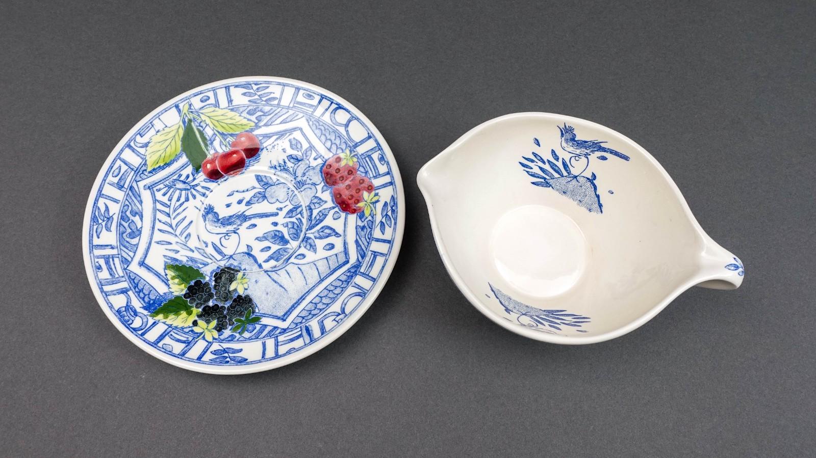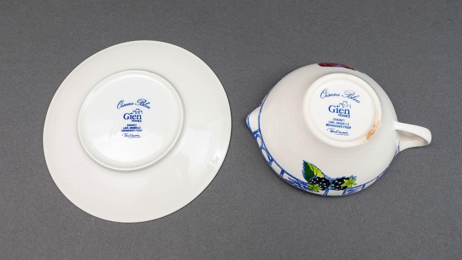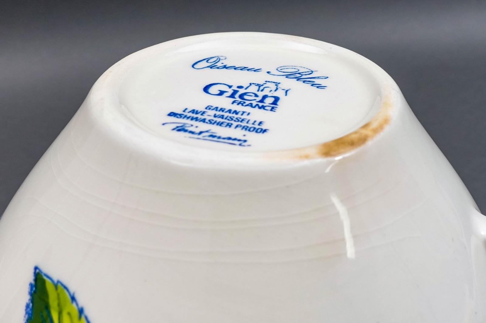 Gien France Oiseau Bleu Birds Fruits Gravy Sauce Boat & Underplate