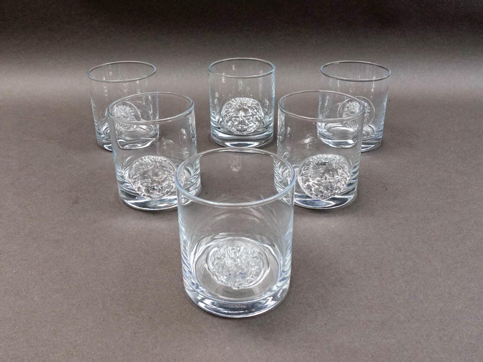 Global Views Leo Lion Head Double Old Fashioned Tumbler Glasses Set Of 6Measures approximately 3 1/4" diameter, 3 5/8" high.Excellent pre-owned condition. Item is being sold as found. No chips, cracks or
