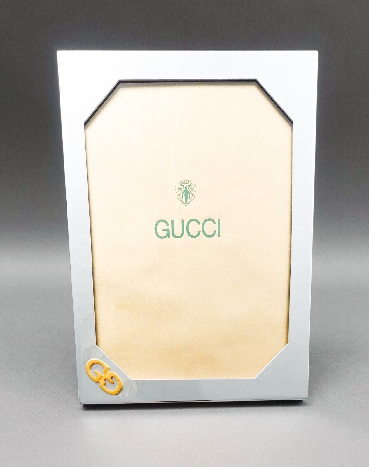 Gucci Italy Vintage Chrome Silver/Gold Tone GG Logo Picture Photo Frame 5x7.
