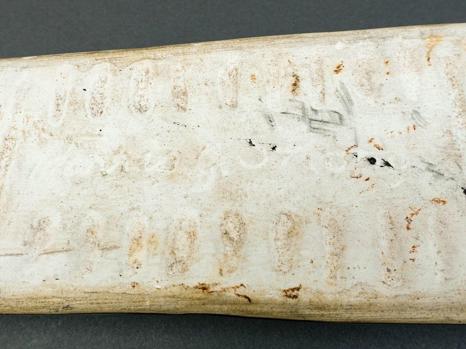 Tile.Measures approximately 5" long, 1 3/4" deep, 23 3/4" high.Excellent pre-owned condition. Item is being sold as found. No chips, cracks or repairs. Overall fantastic appearance!!!