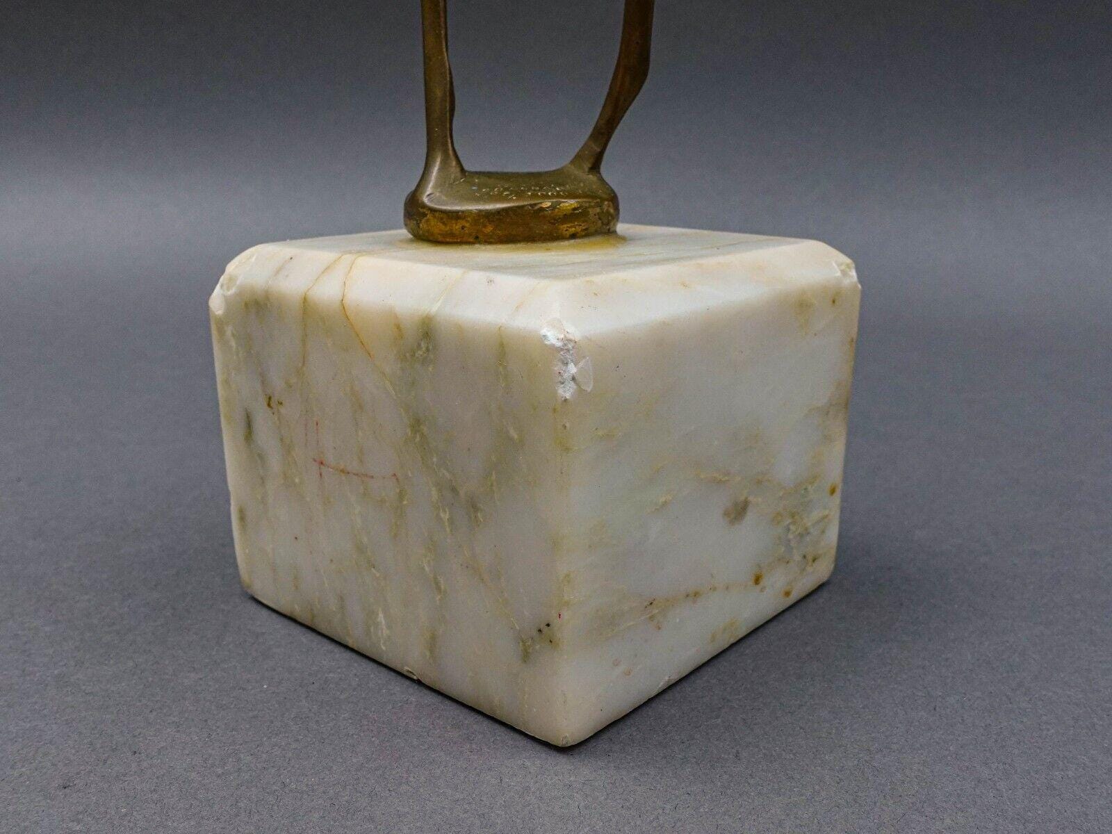 Sculpture.Measures approximately 3 1/4" long, 5 1/2" wide, 24" high. Weight 8.4 PoundsPre-owned condition. Item is being sold as found. No chips, cracks or repairs. Many chips to bottom marble base mainly to edges.