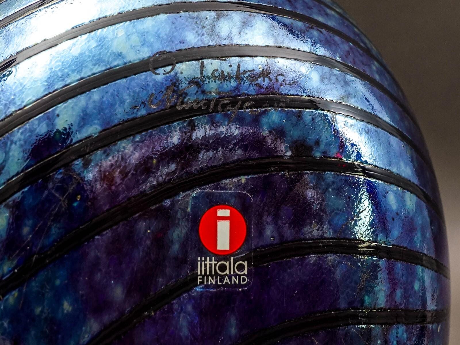 Iittala Finland Oiva Toikka Nuutajarvi Iridescent Glass Fasaani Pheasant Bird.Measures approximately 9 1/4" long, 4 1/2" wide, 6 3/8" high.Excellent pre-owned condition. Item is being sold as found. No chips, cracks orrepairs. Overall fantastic appearance!!!
