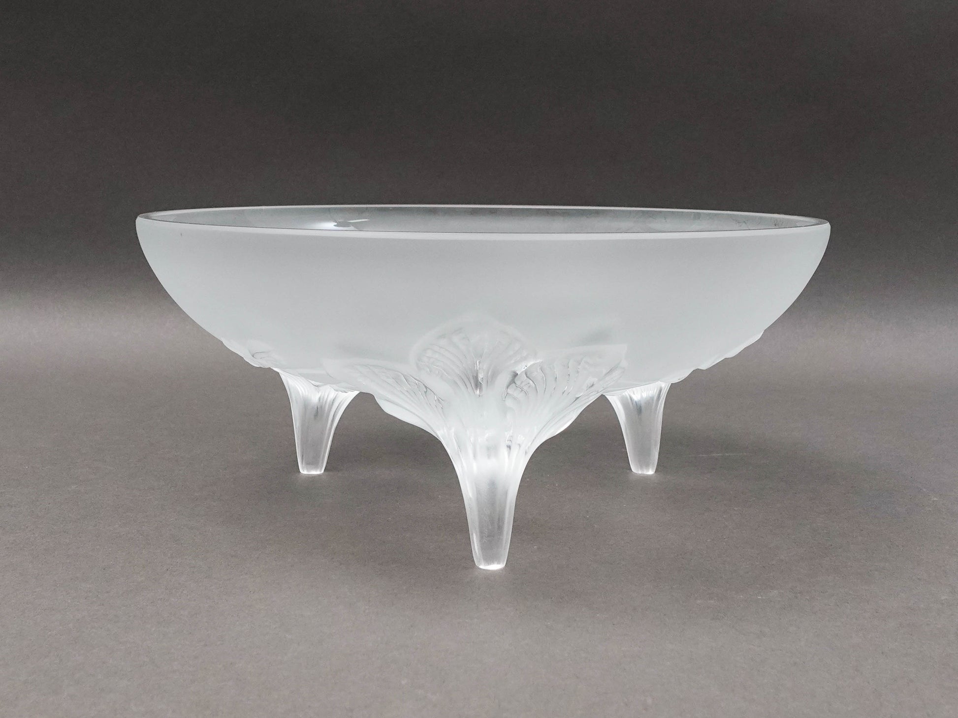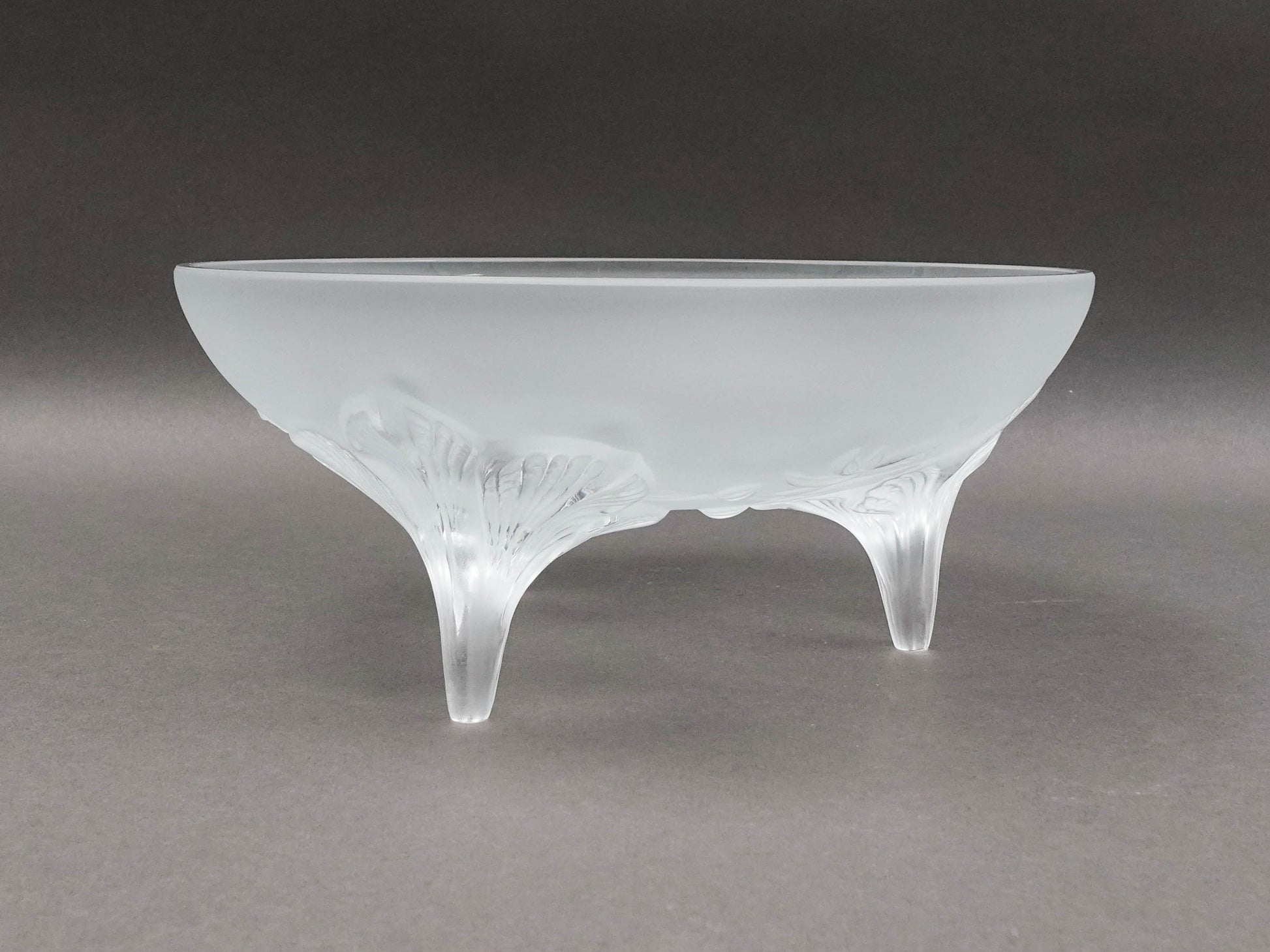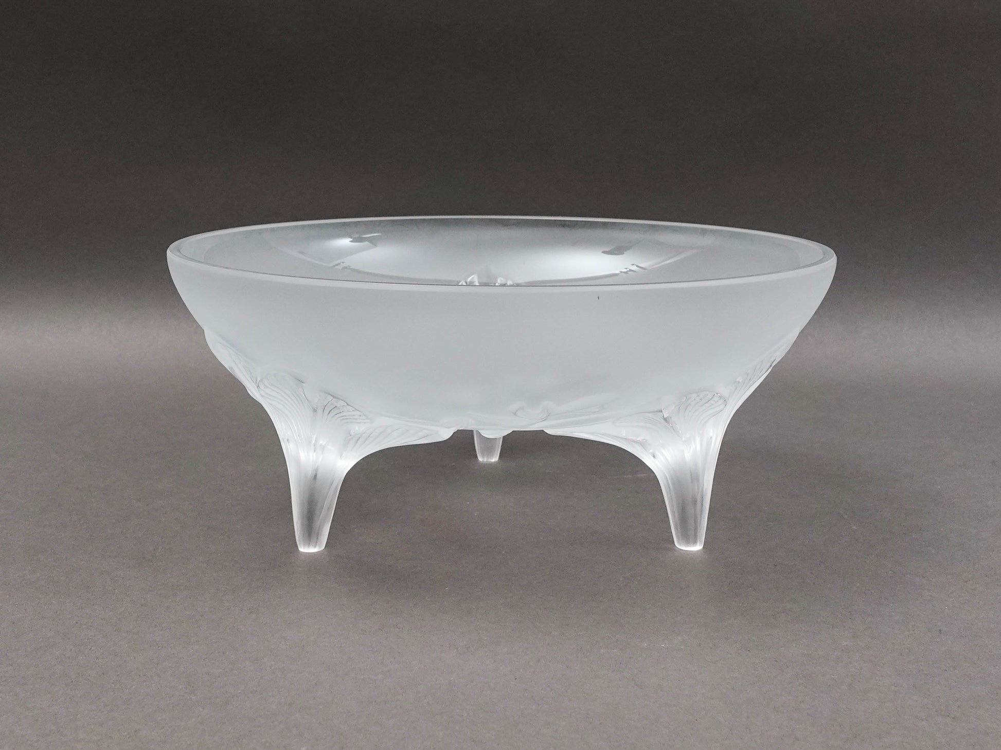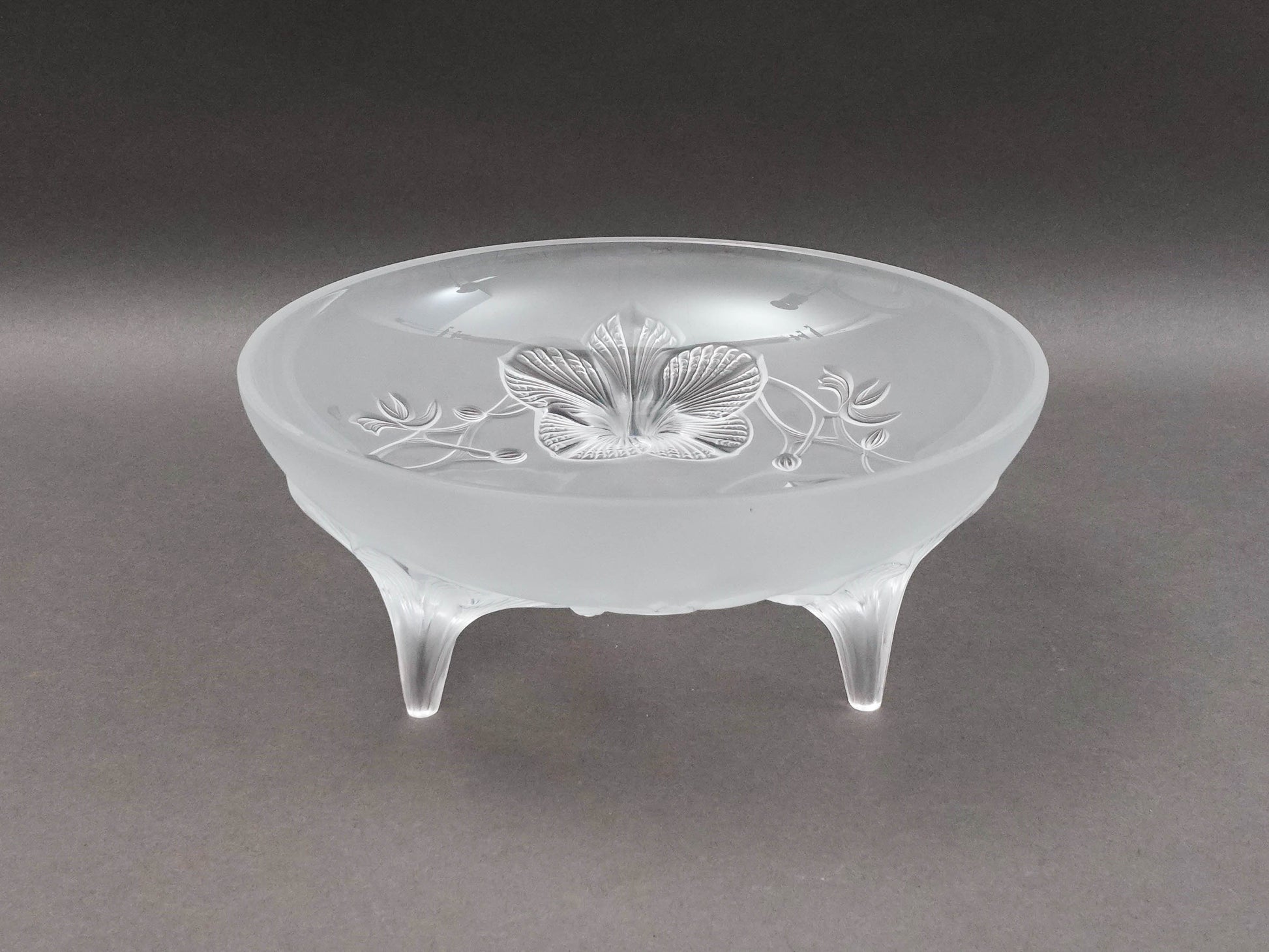 Lalique France Signed Orchidee Lys Orchid Three Footed Crystal Centerpiece Bowl
