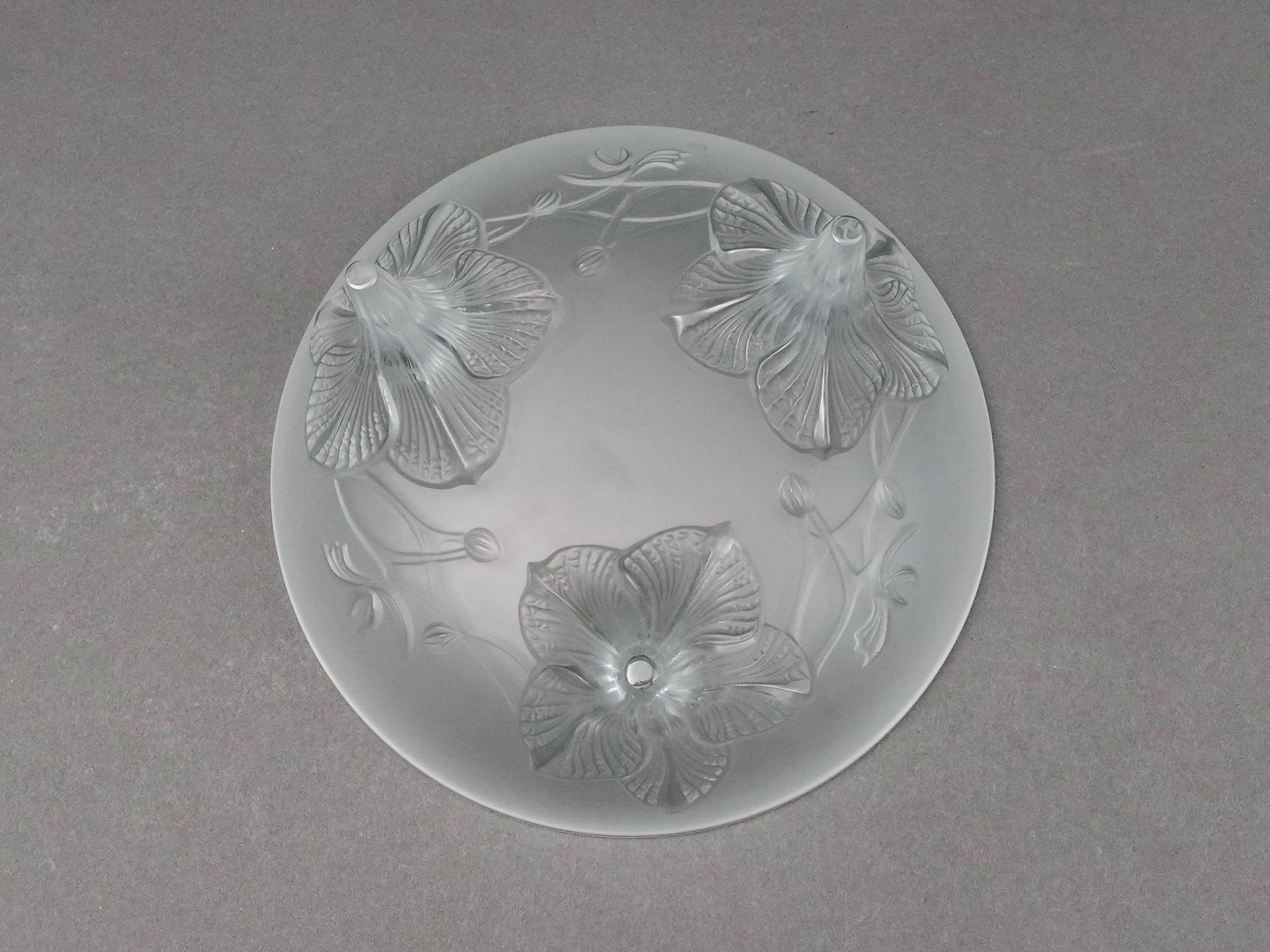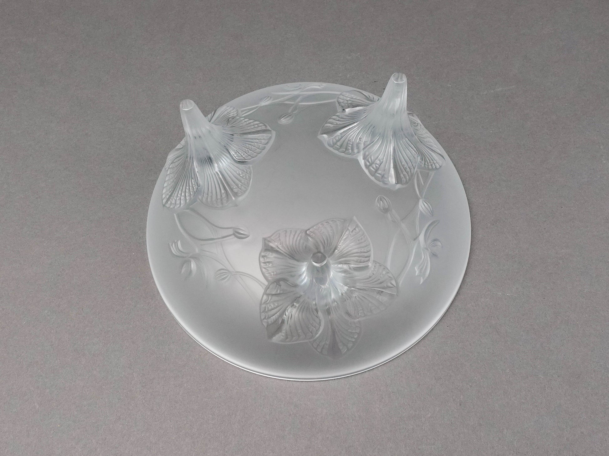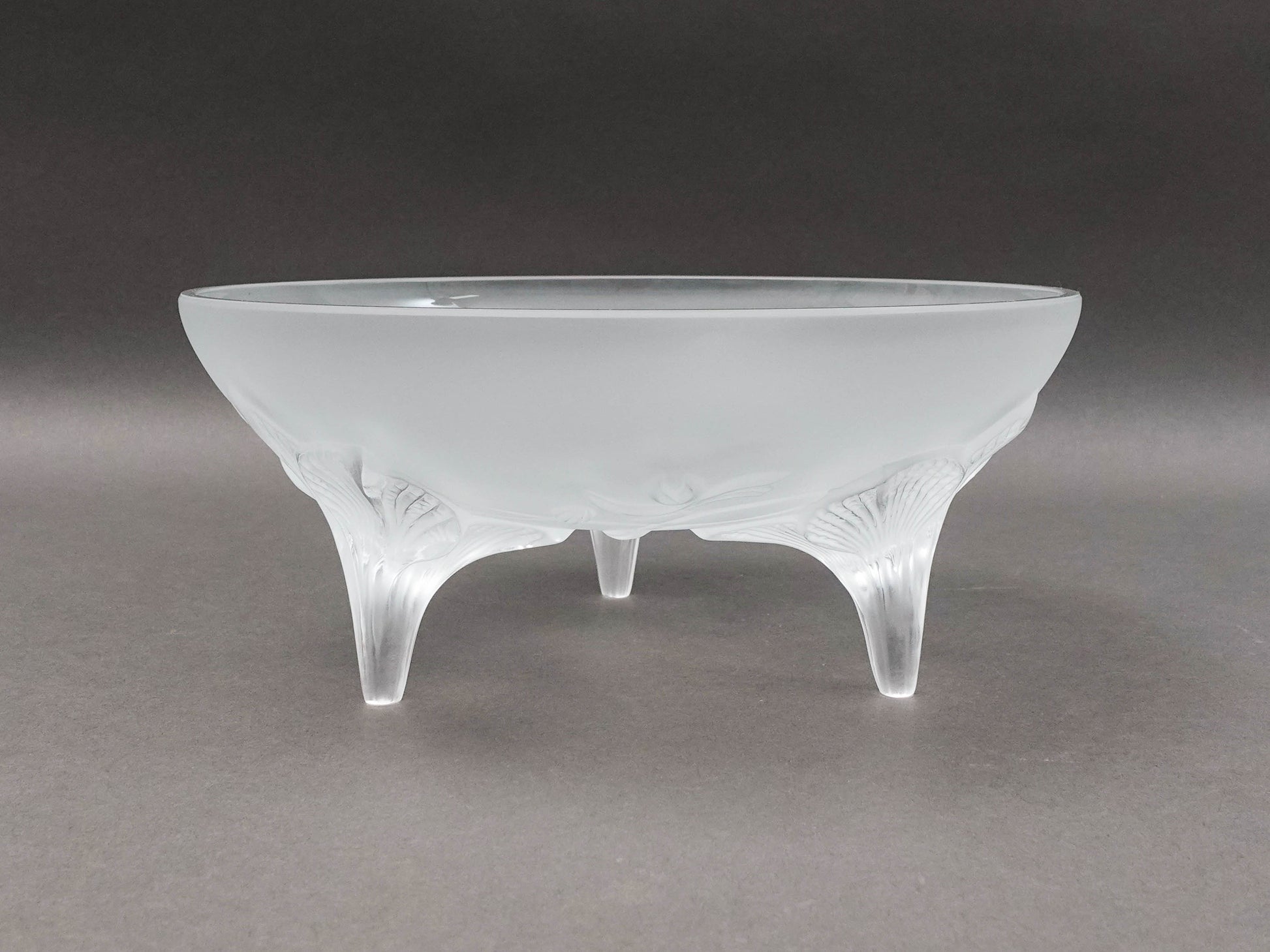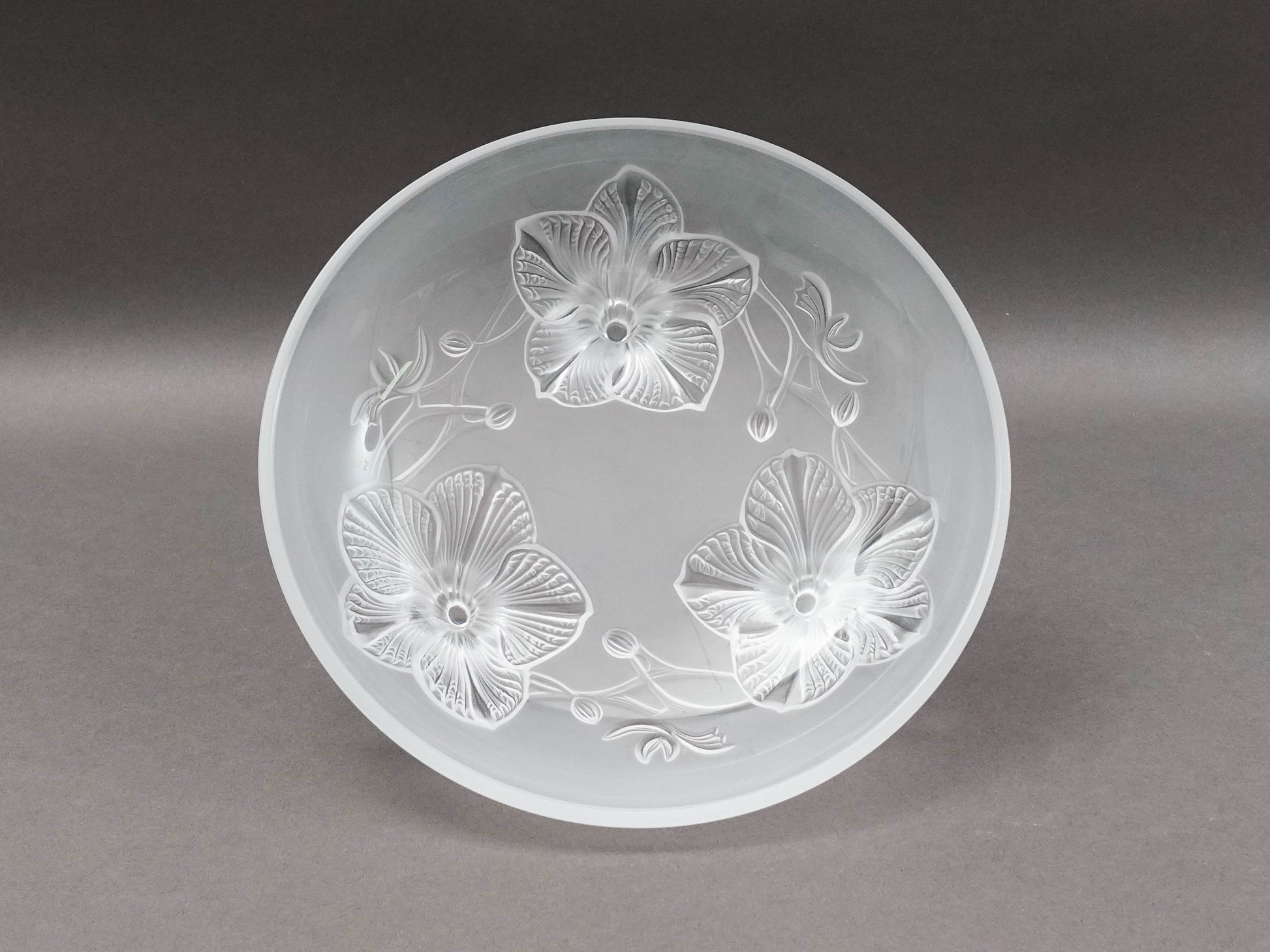 Lalique France Signed Orchidee Lys Orchid Three Footed Crystal Centerpiece Bowl