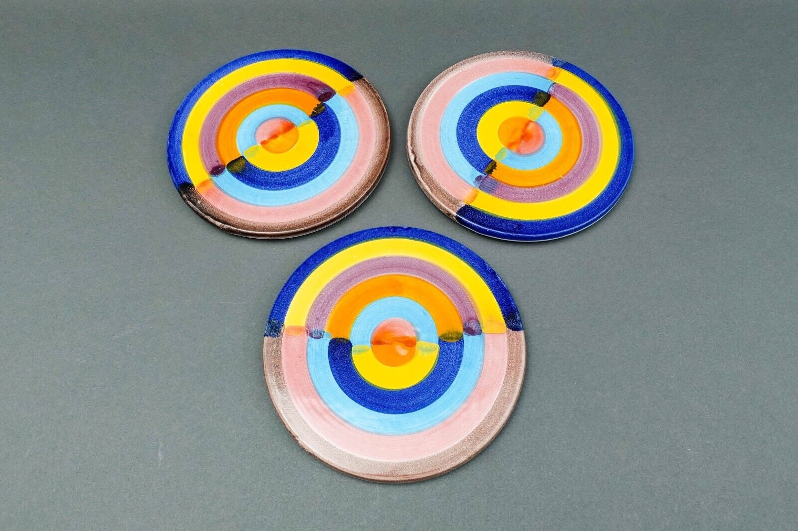 Italian Hand Painted Colorful Pottery Round 7 1/4" Trivet Hot Plate Set Of 3