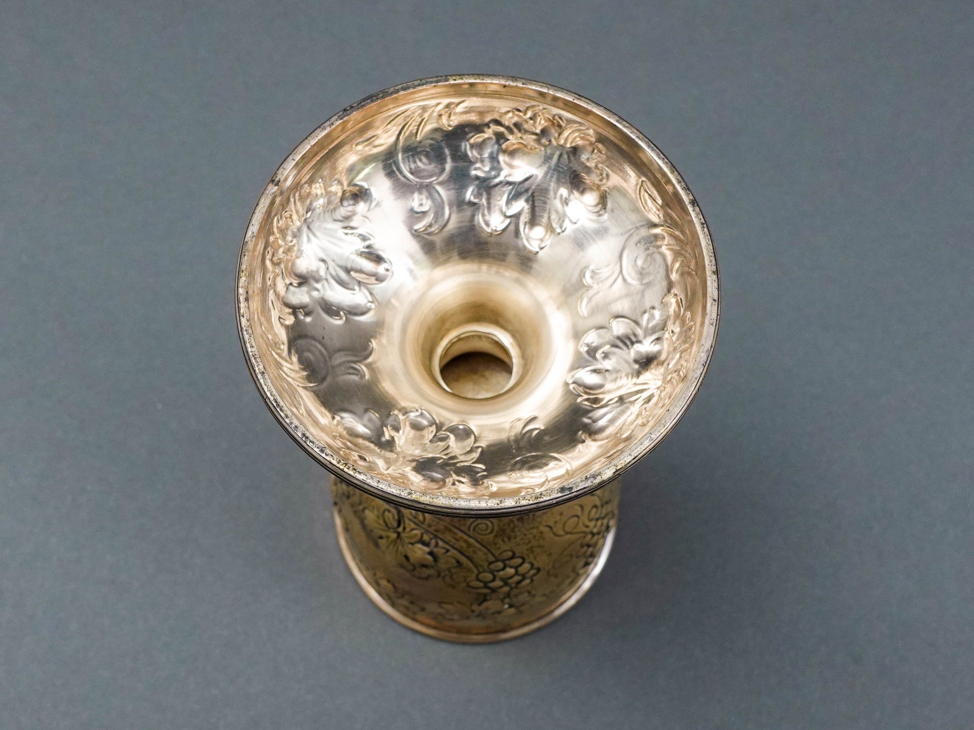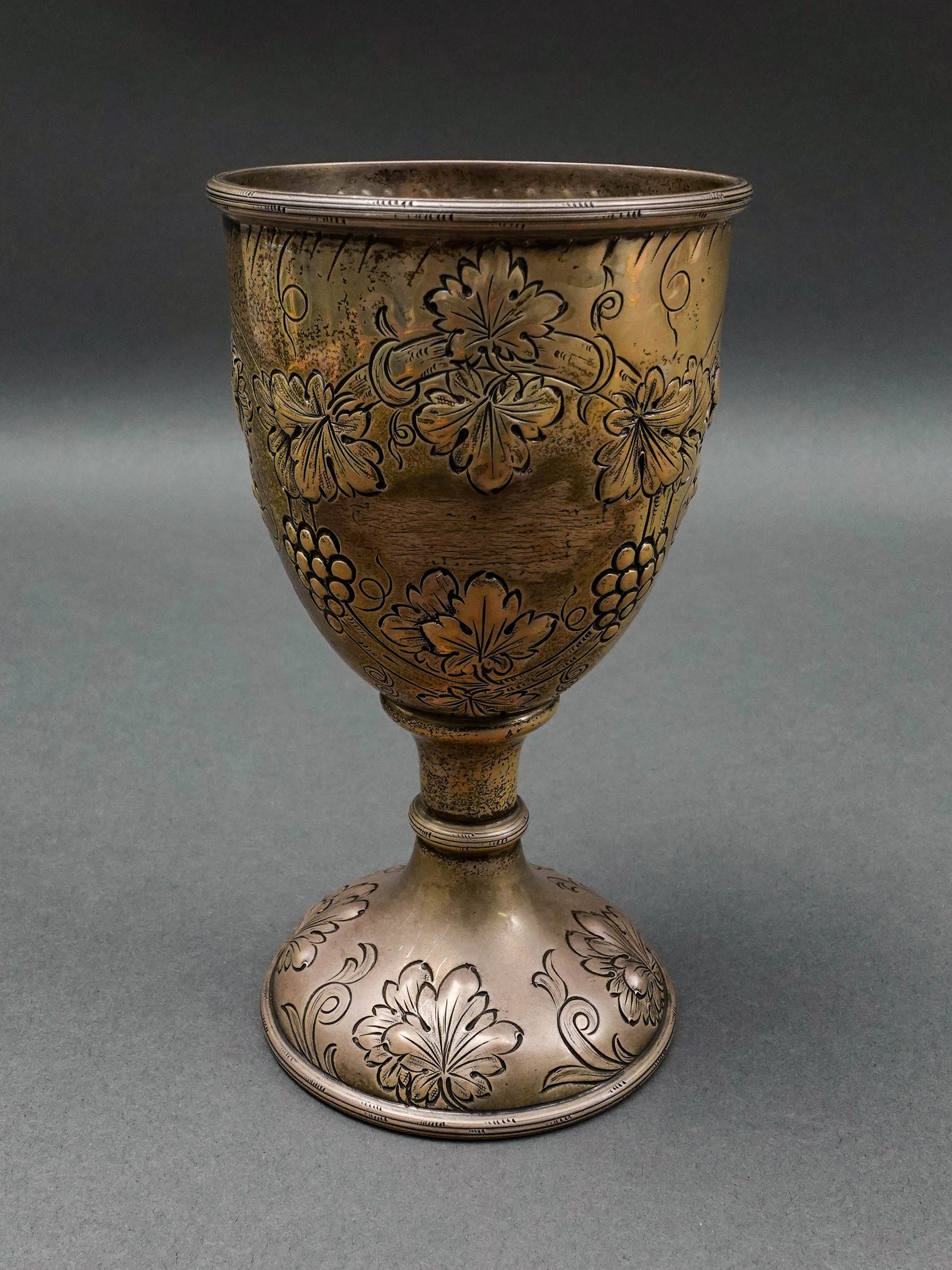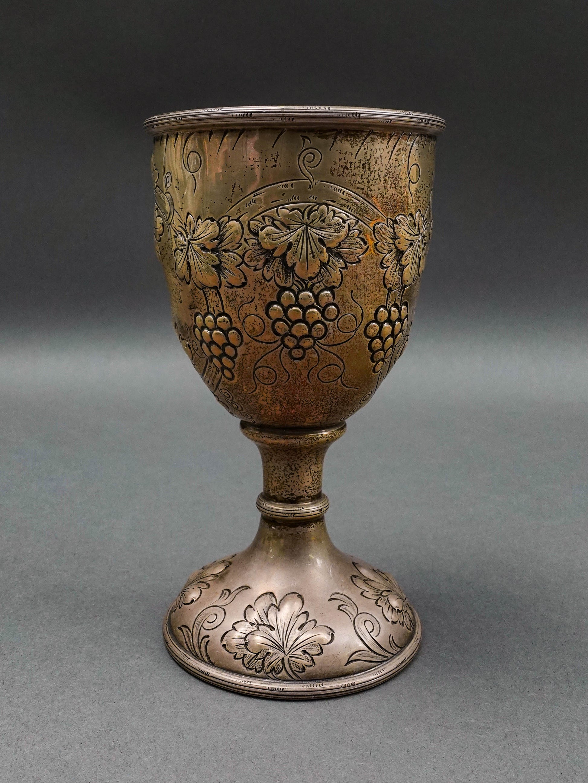 J.E. Caldwell & Co. Antique Sterling Silver Repousse Grape Motif Wine Goblet.