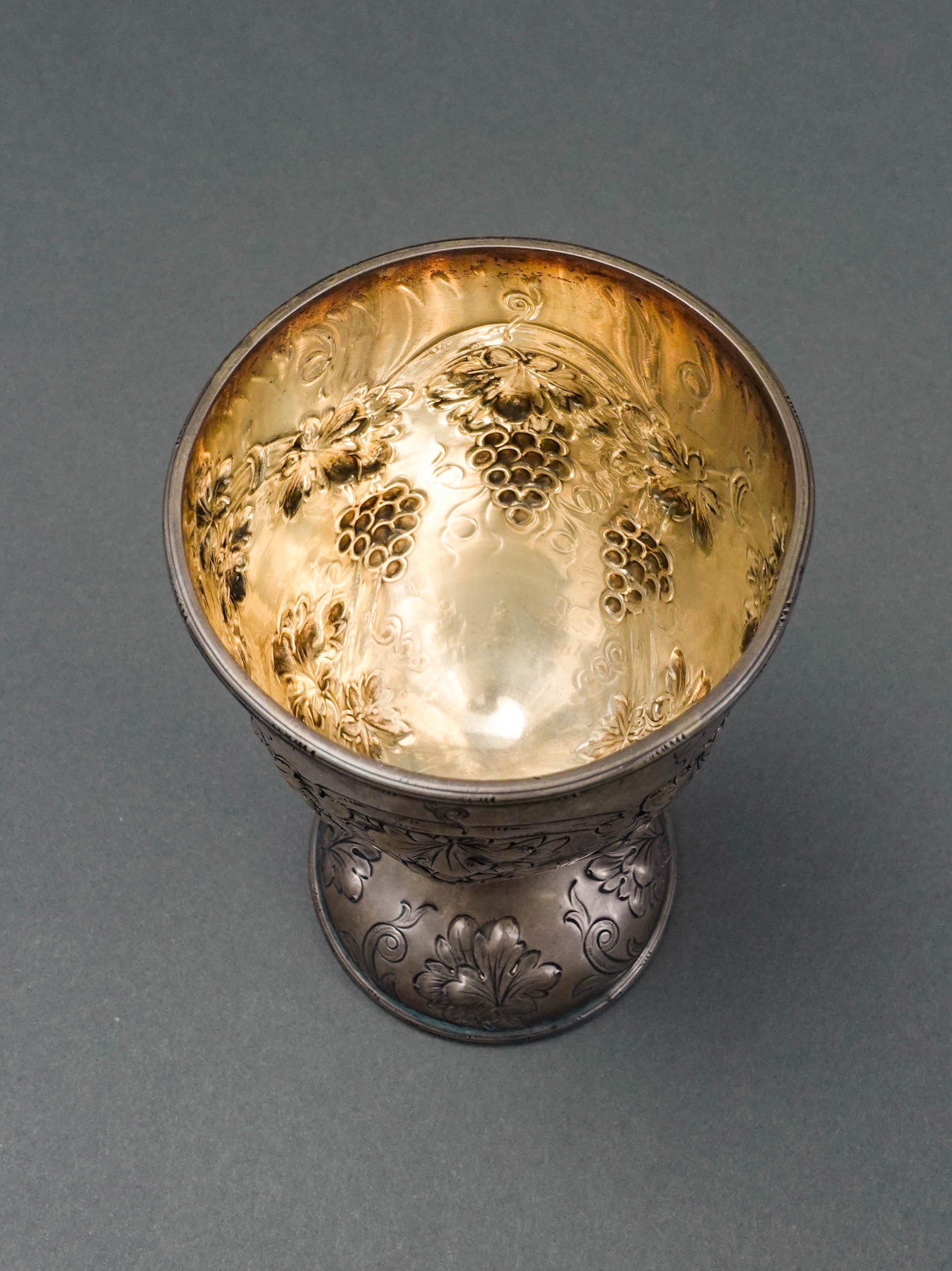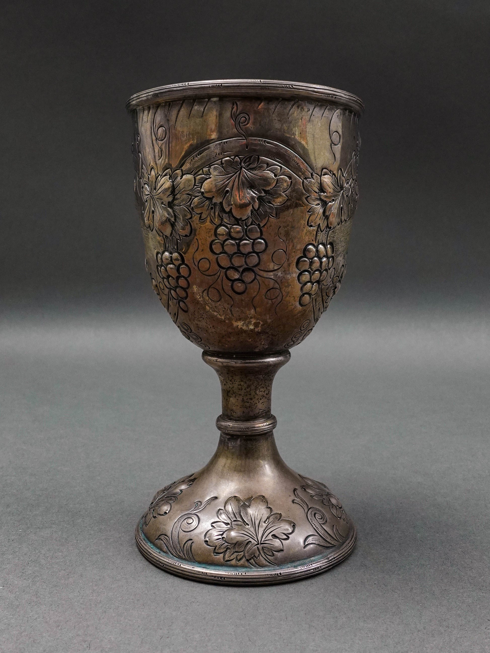 J.E. Caldwell & Co. Antique Sterling Silver Repousse Grape Motif Wine Goblet.