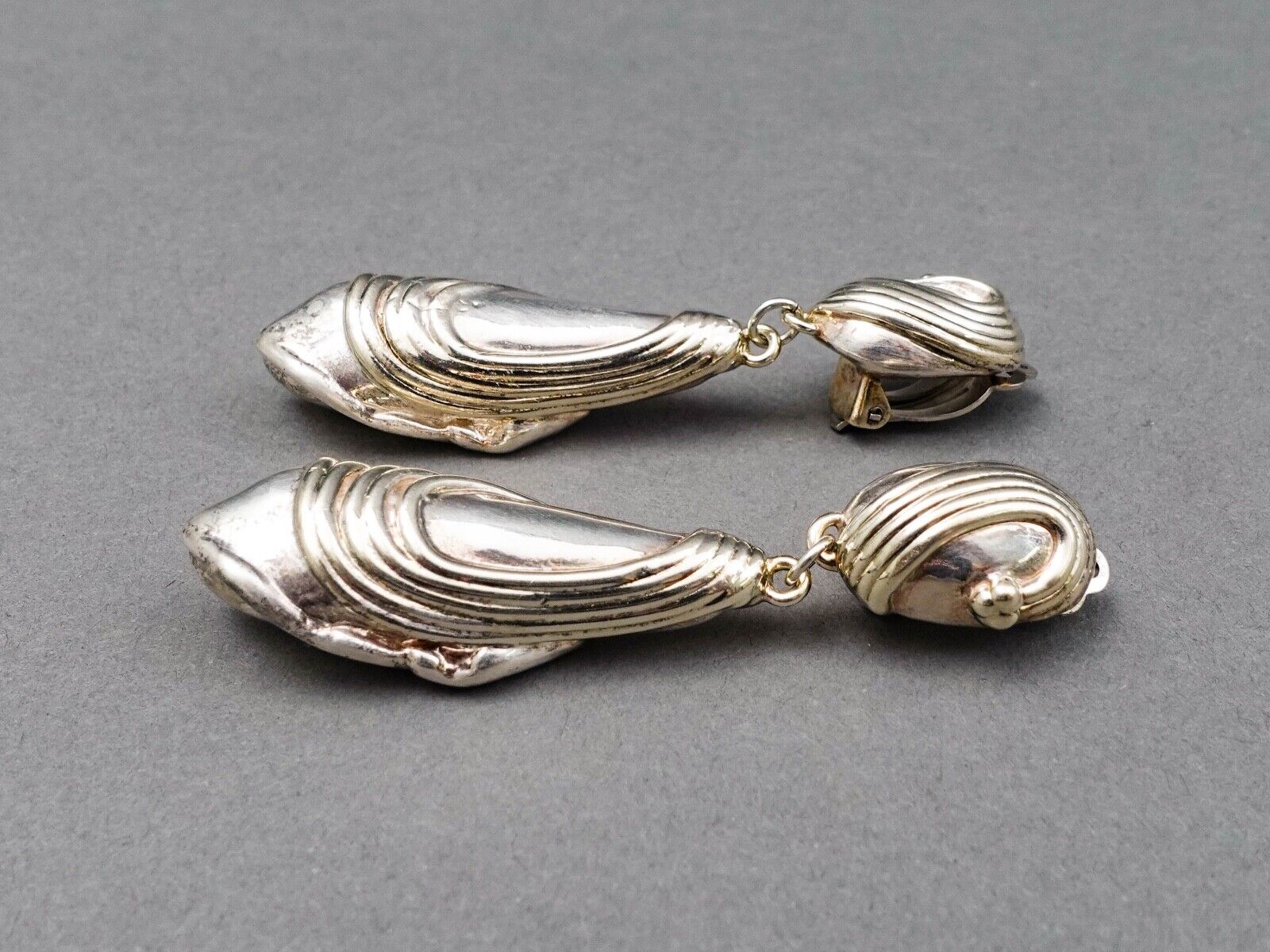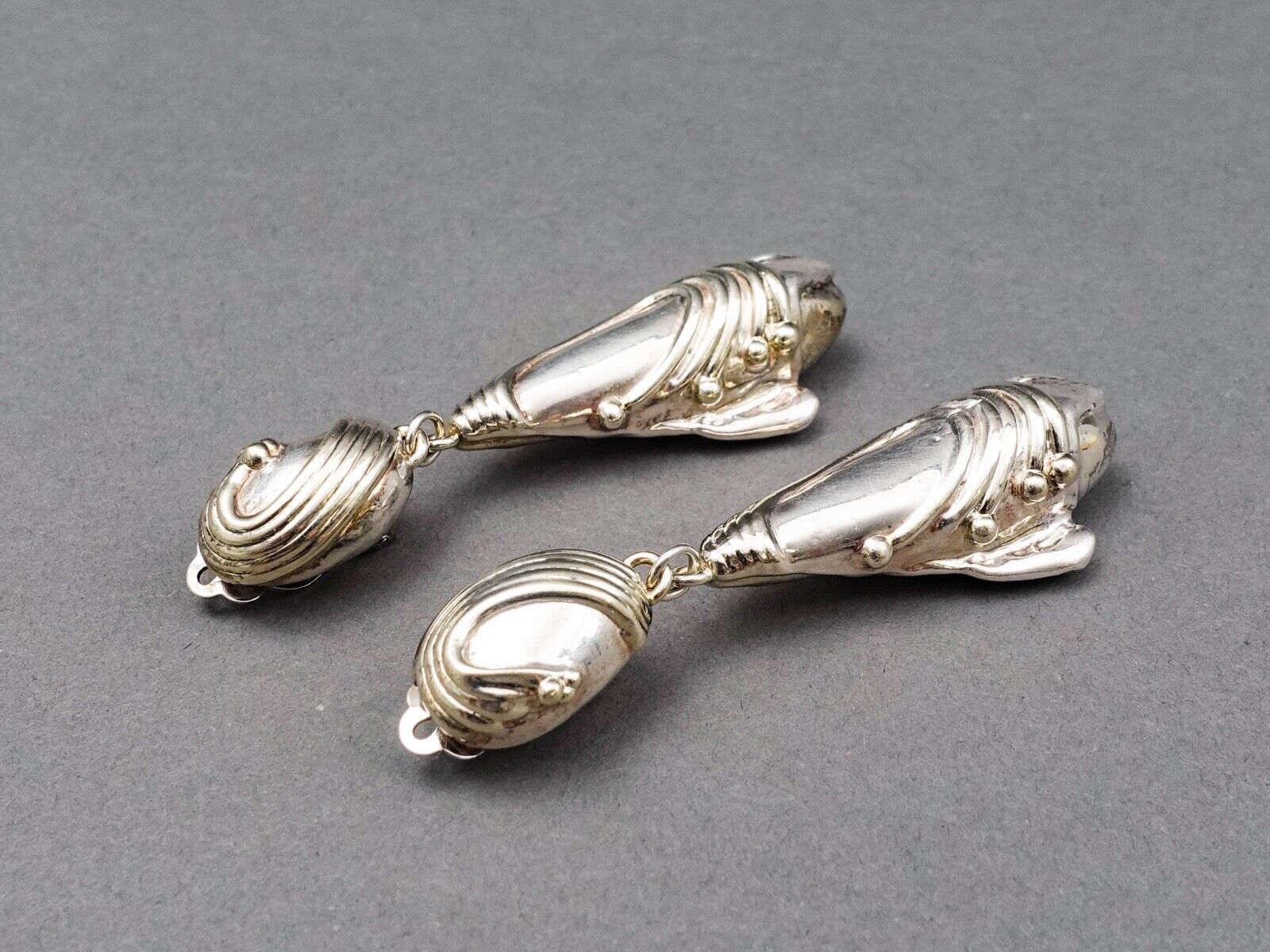 J.E.M. Signed Sterling Silver 925 Modern Dangle Drop Clip On Earrings