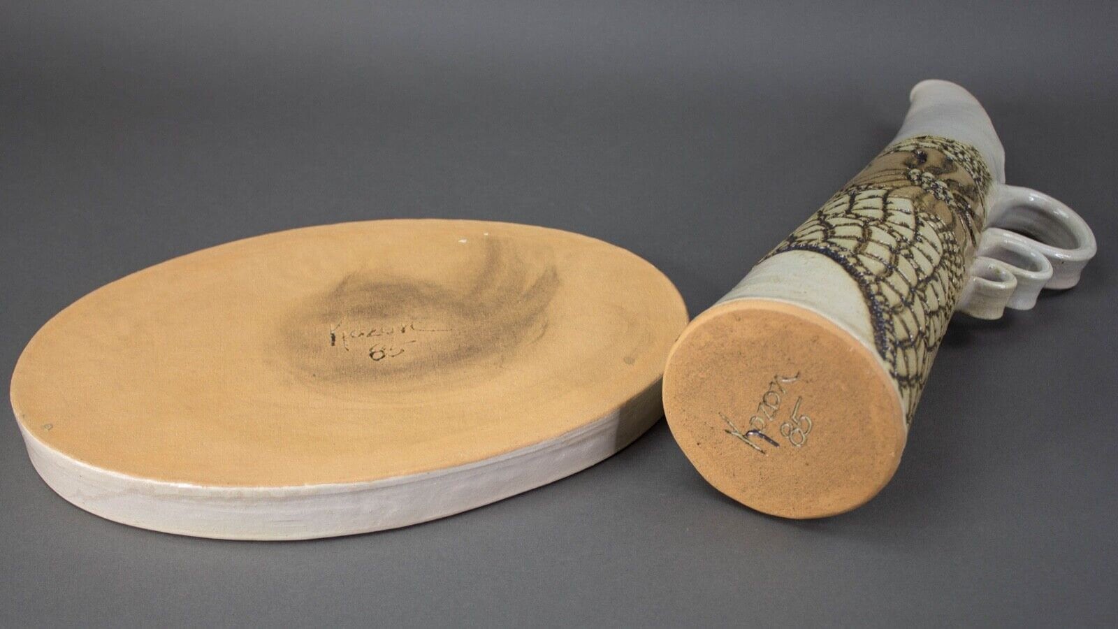 Jana Kozon Kausalik 1985 Glazed Art Pottery Stoneware Wine Serving Set Vintage