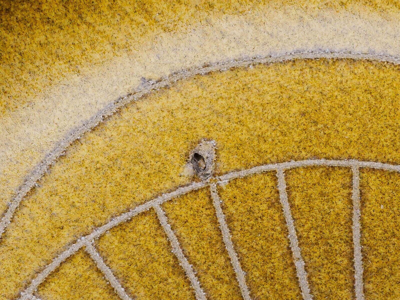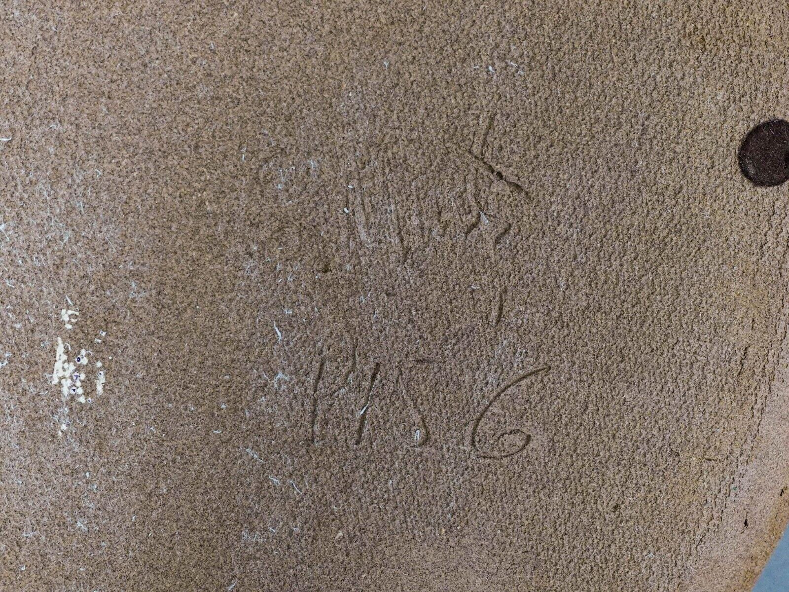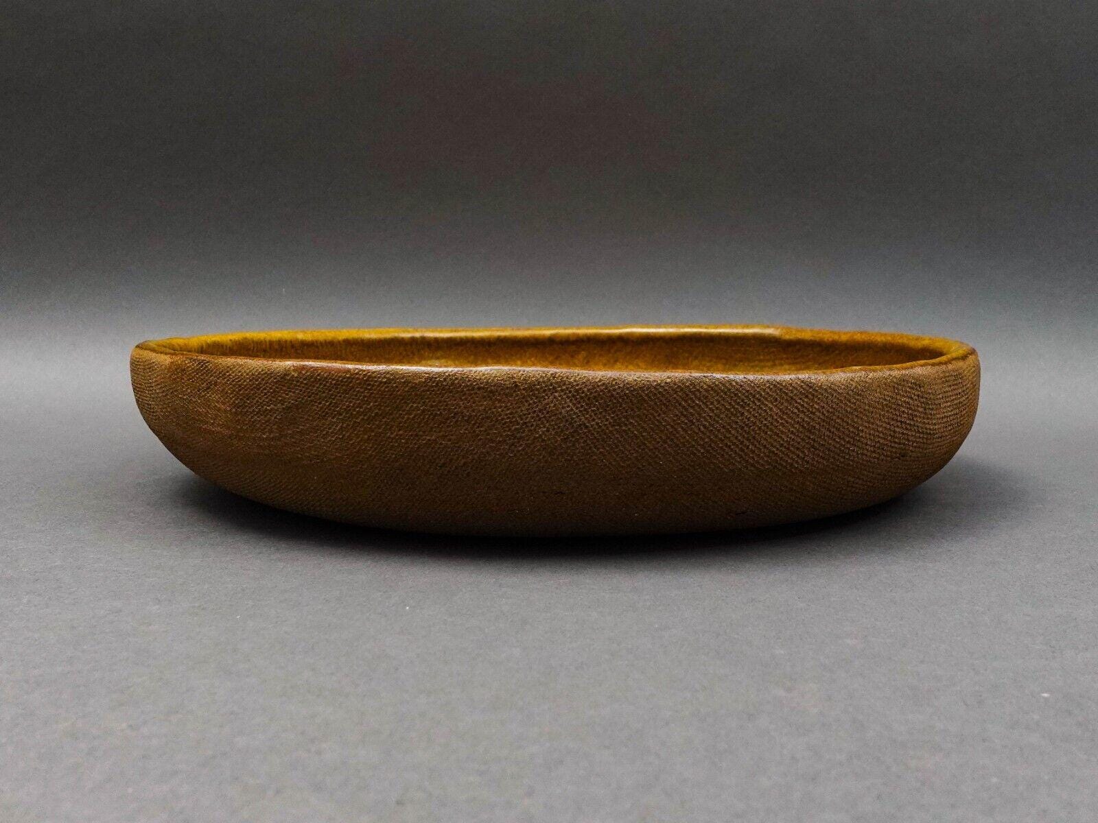 Ceramic Art Pottery Serving Bowl Platter.Measures approximately 12 7/8" diameter, 1 1/4" high.Very good pre-owned condition. Item is being sold as found. No chips, cracks or repairs. Kiln imperfections hole.
