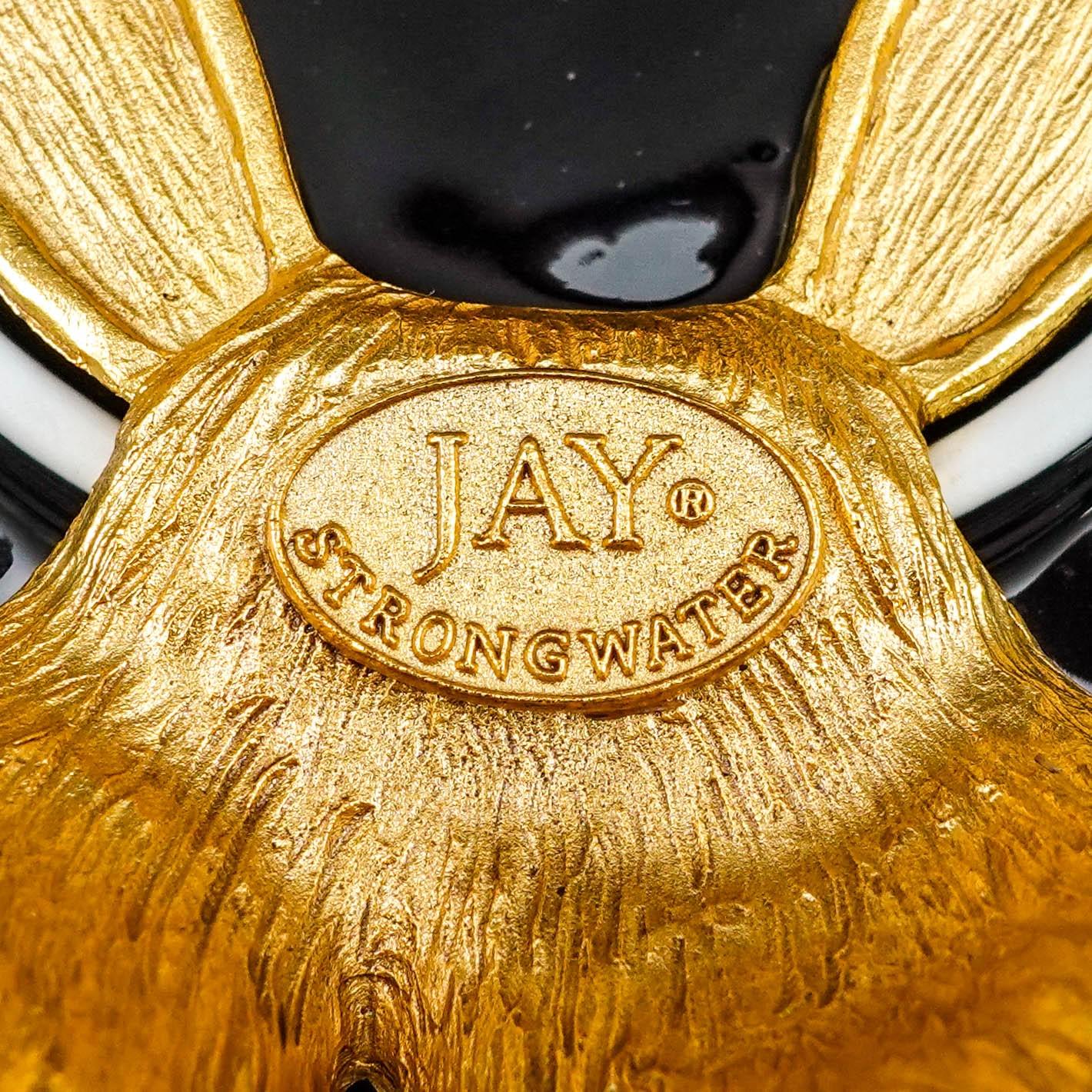 Jay Strongwater Brittany Black Porcelain 18K Gold Embellished Fluted Bowl.Measures approximately 5 1/2" diameter, 3 1/2" high.Excellent pre-owned condition. Item is being sold as found. No chips, cracks or