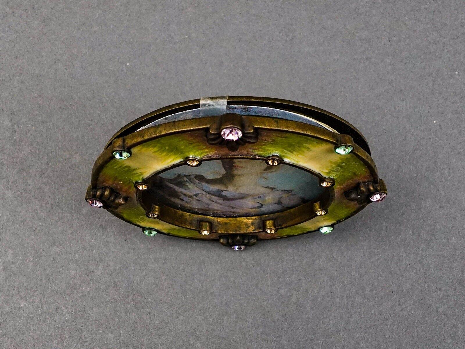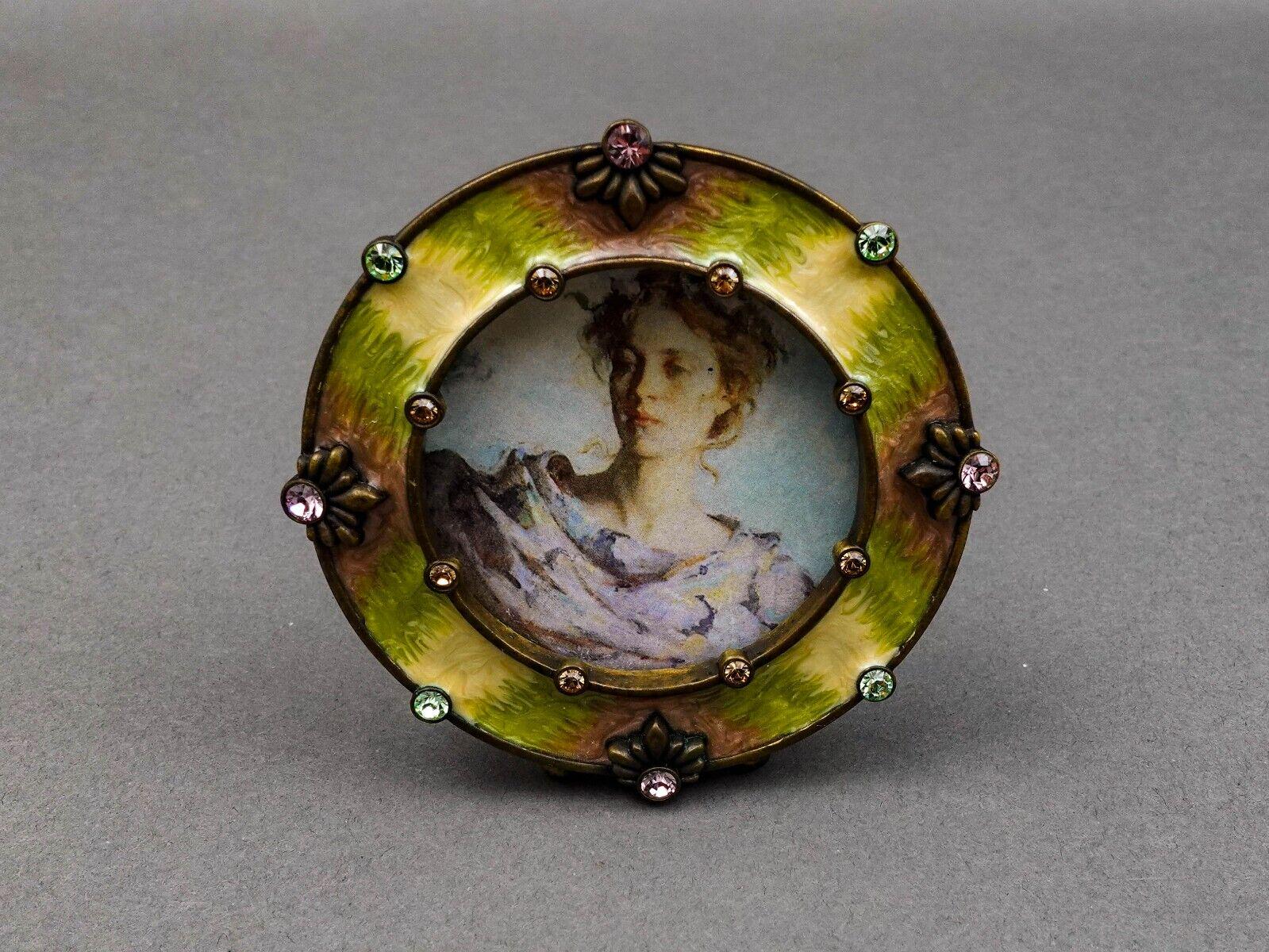 Jay Strongwater Swarovski Crystals Enameled Round MIni Photo Picture Frame 3"