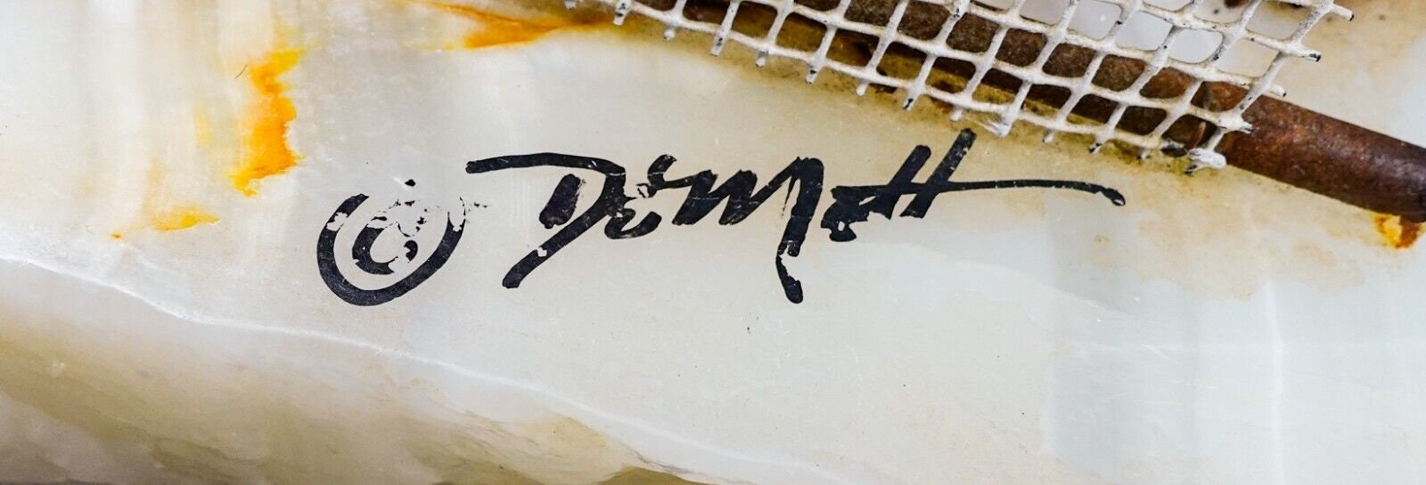 John DeMott Signed Vintage Brass Onyx Base Tennis Player Sculpture