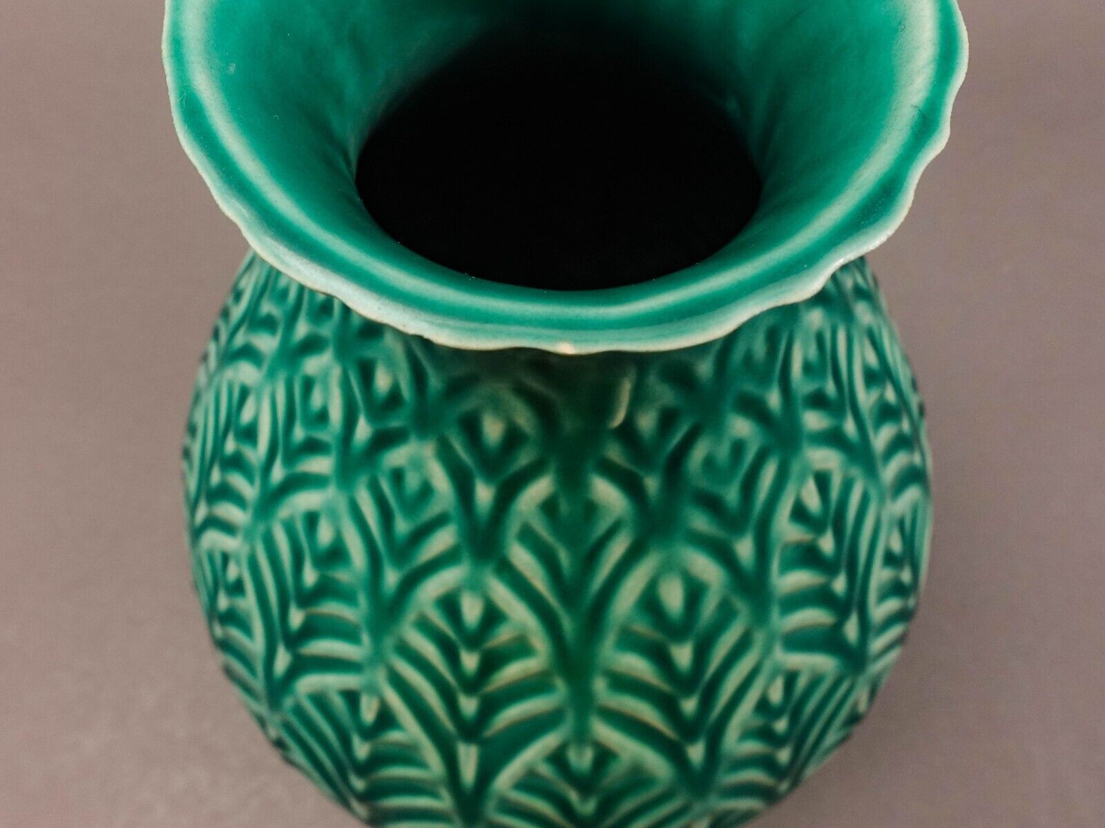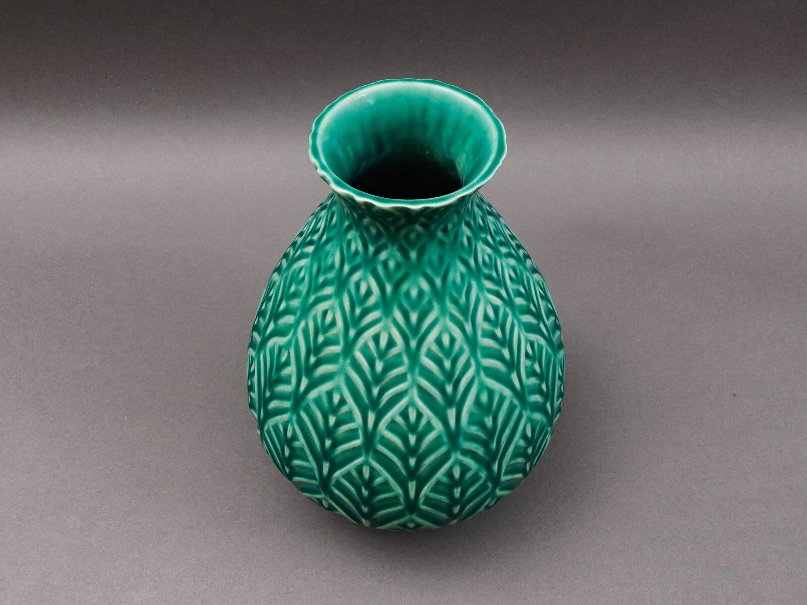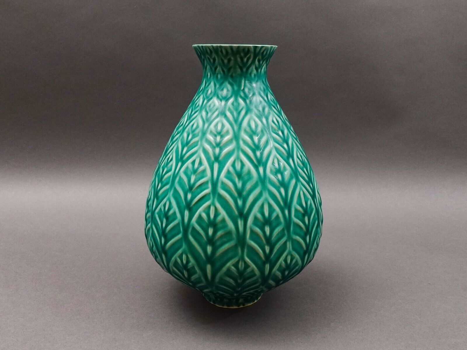 Jonathan Adler Peru Vintage Large Leaf Leaves Green Ceramic Pottery Vase 11 1/2"