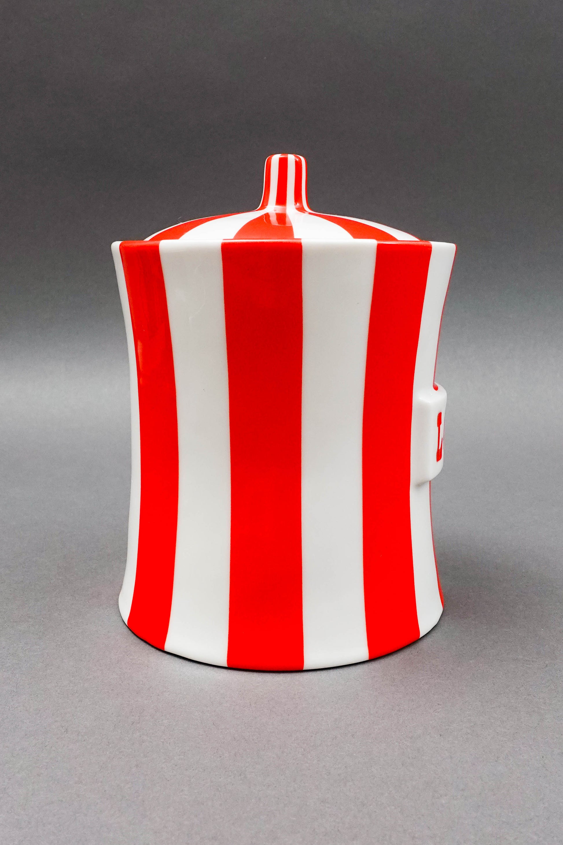 Jonathan Adler Vice Collection Love Red White Striped Ceramic Canister Jar.