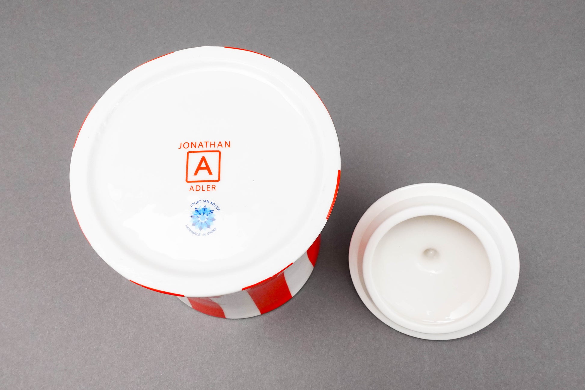 Jonathan Adler Vice Collection Love Red White Striped Ceramic Canister Jar