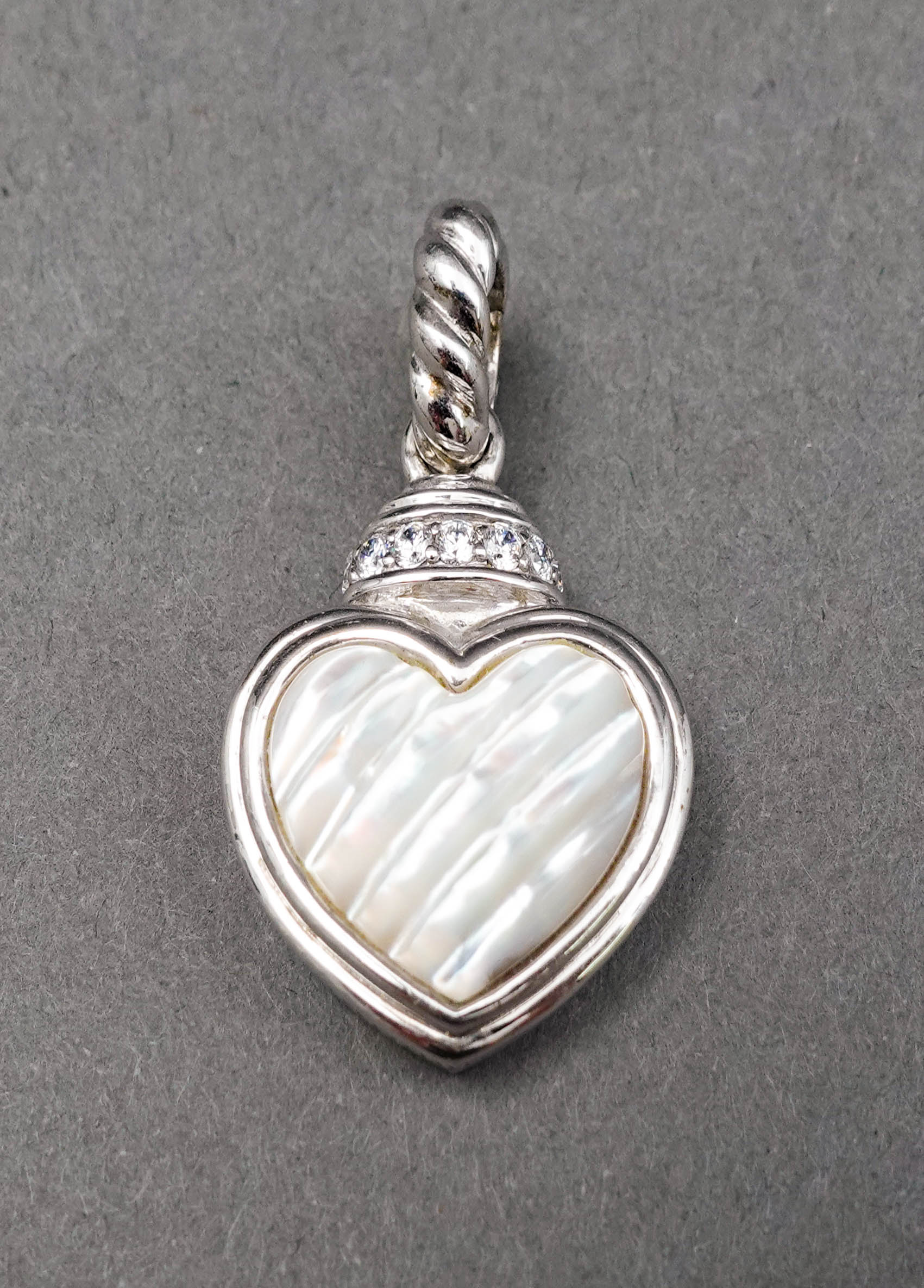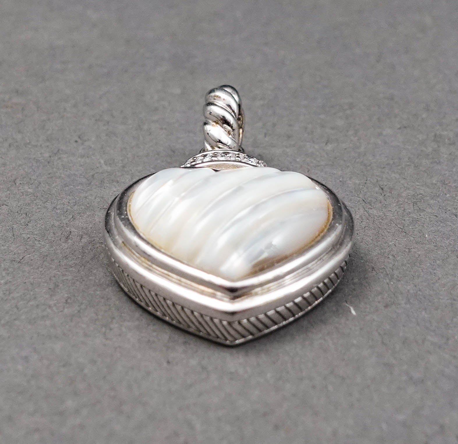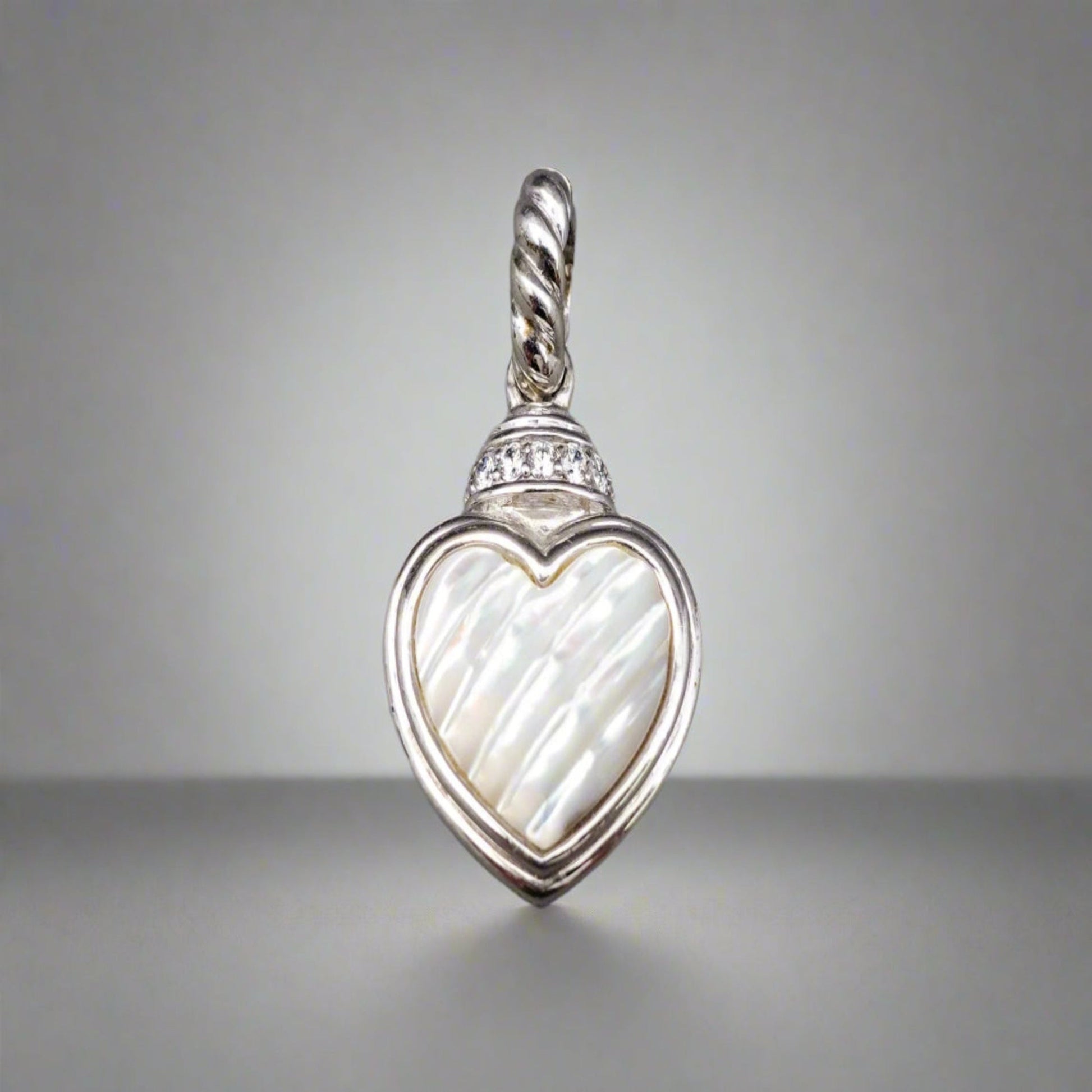 Judith Ripka Sterling Silver Mother Of Pearl CZ Heart Charm Pendant Enhancer.