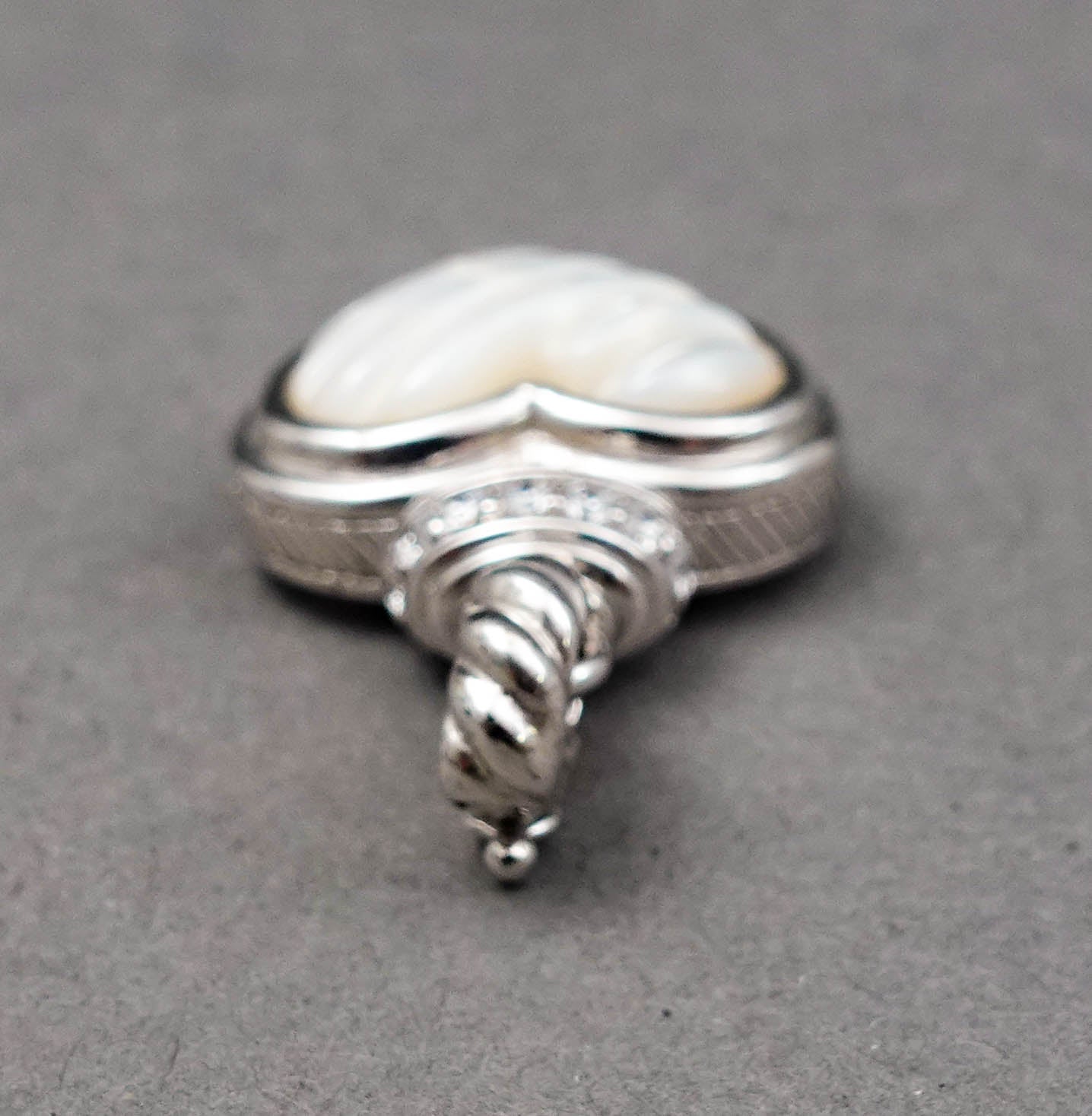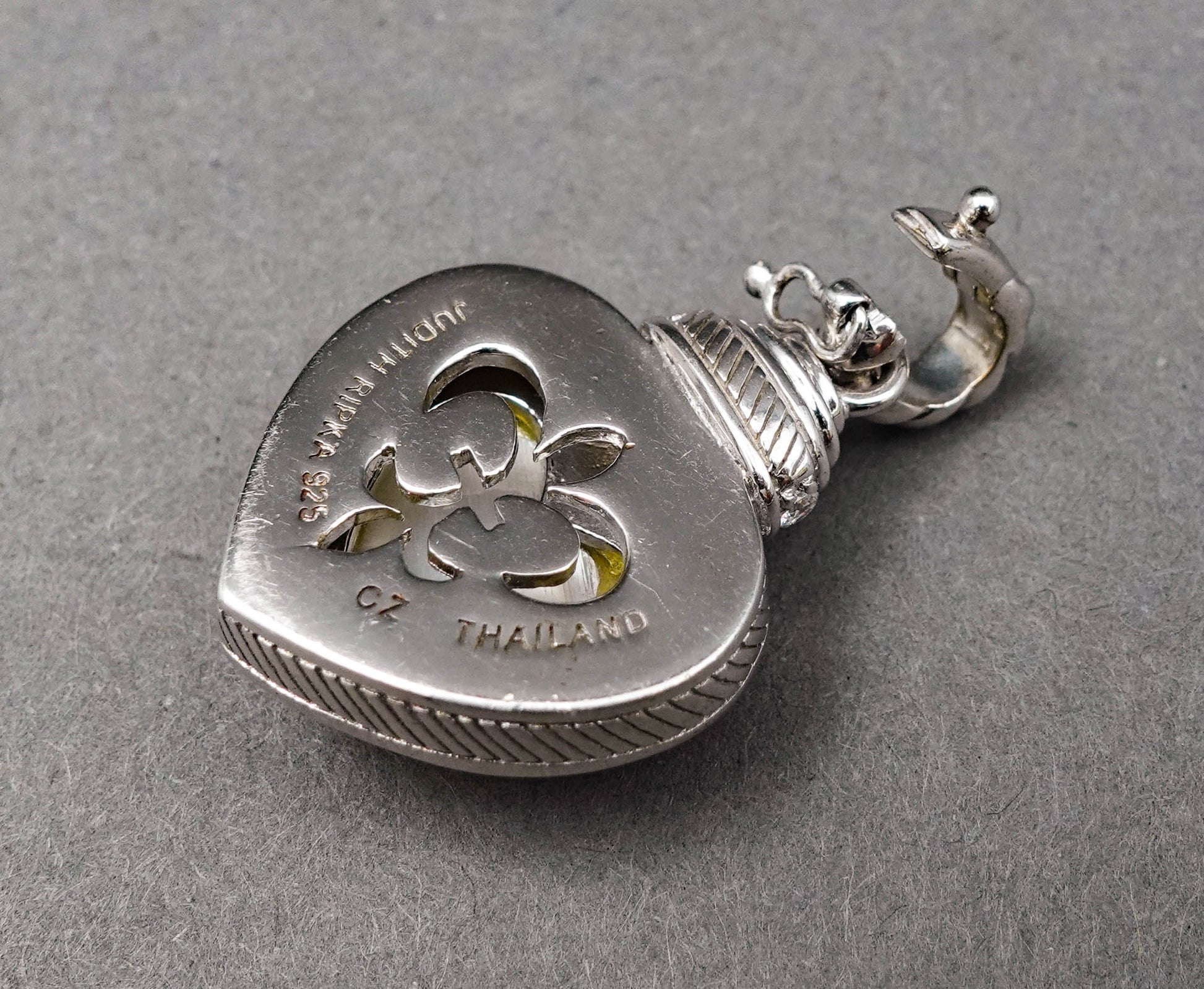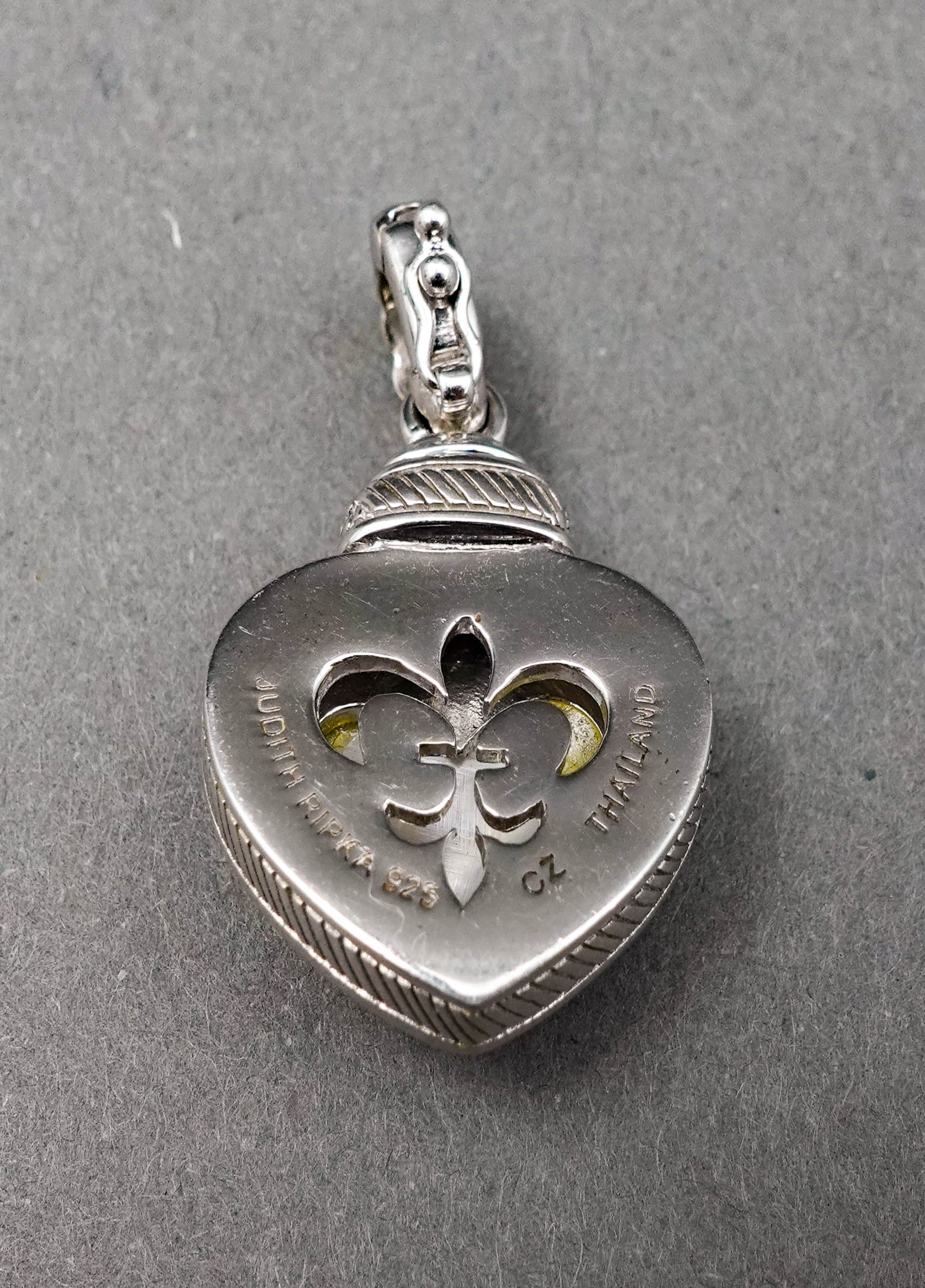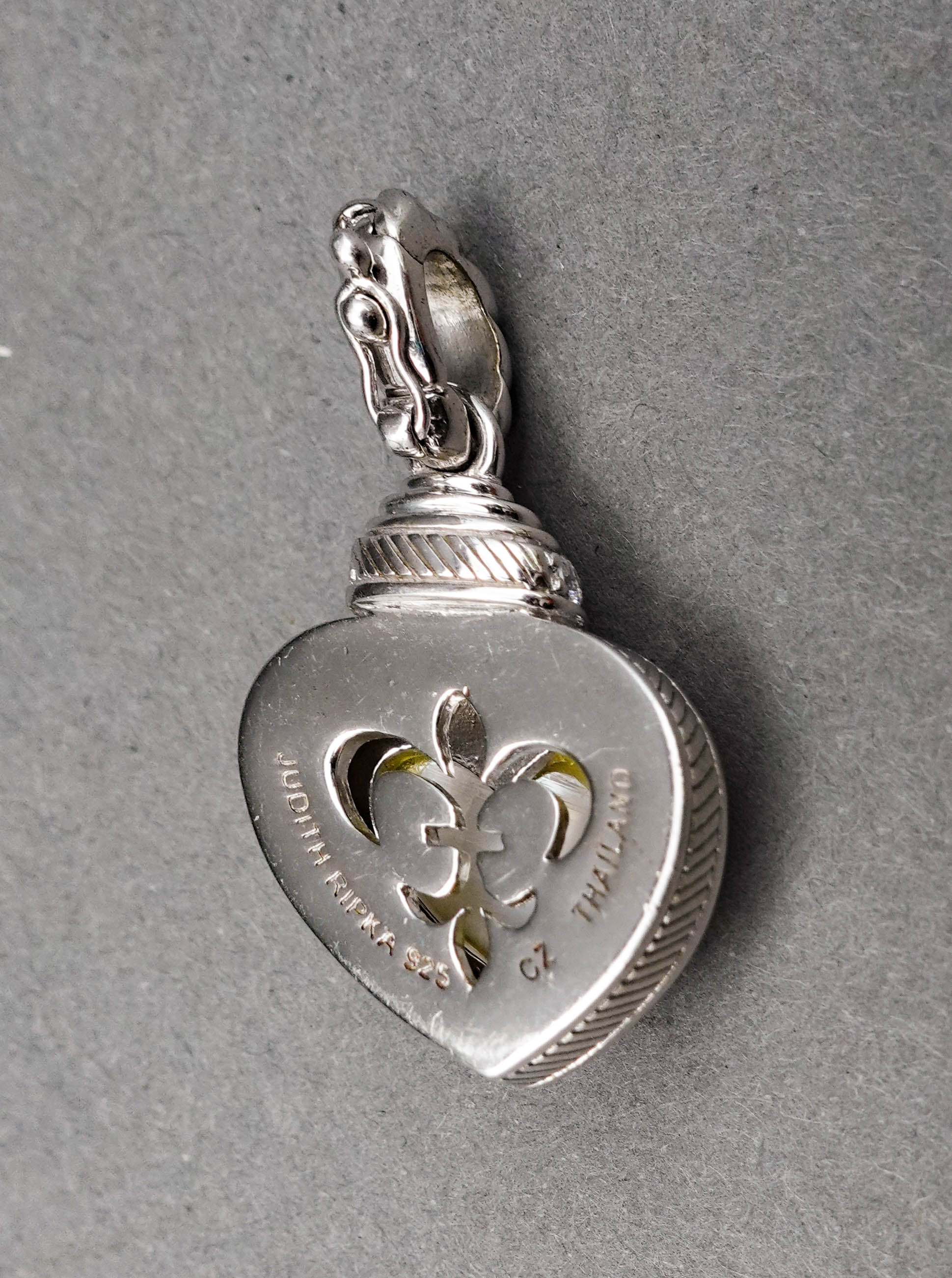Judith Ripka Sterling Silver Mother Of Pearl CZ Heart Charm Pendant Enhancer.