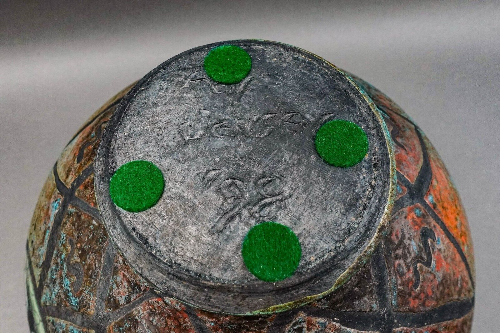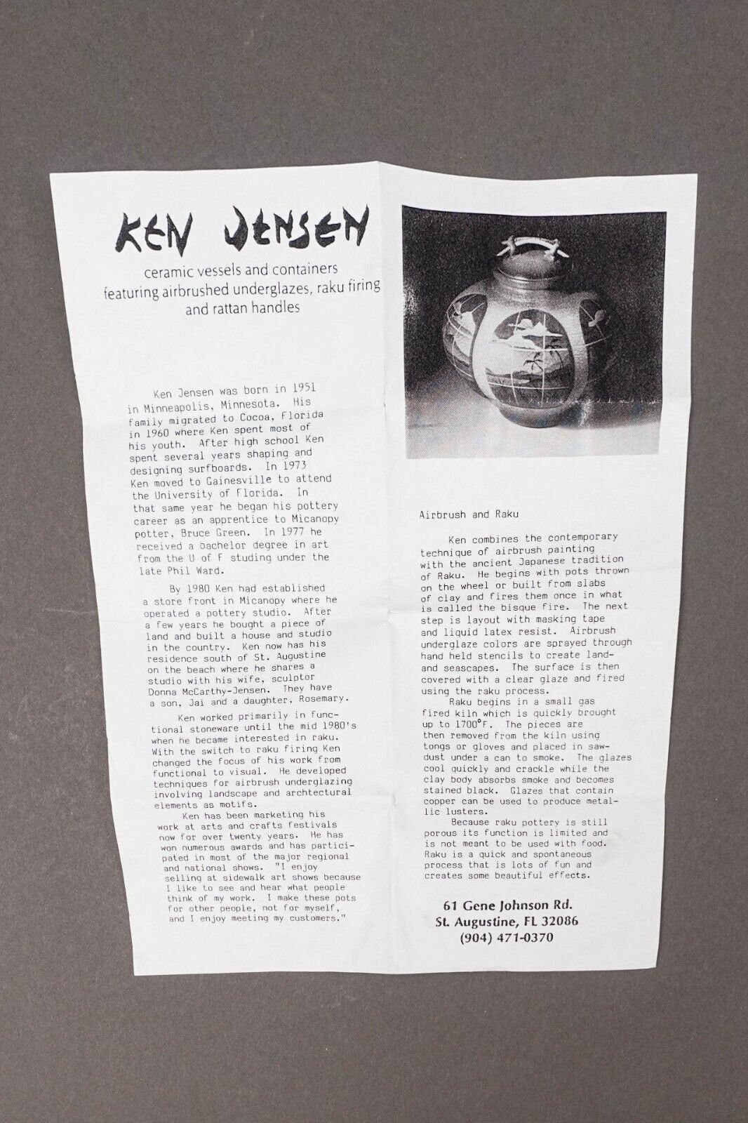 Ken Jensen 1998 Signed Large Landscape Scene Raku Pottery Covered Vessel Pot Jar