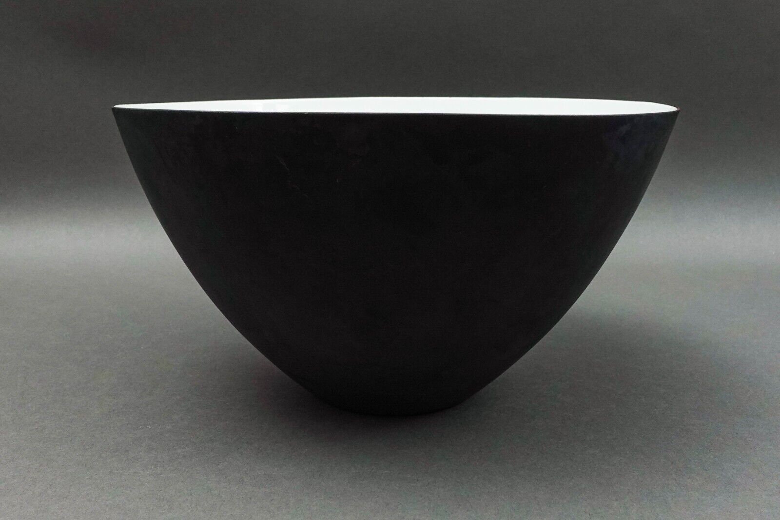 Krenit Denmark Herbert Krenchel Matte Black White Enamel Salad Serving Bowl.