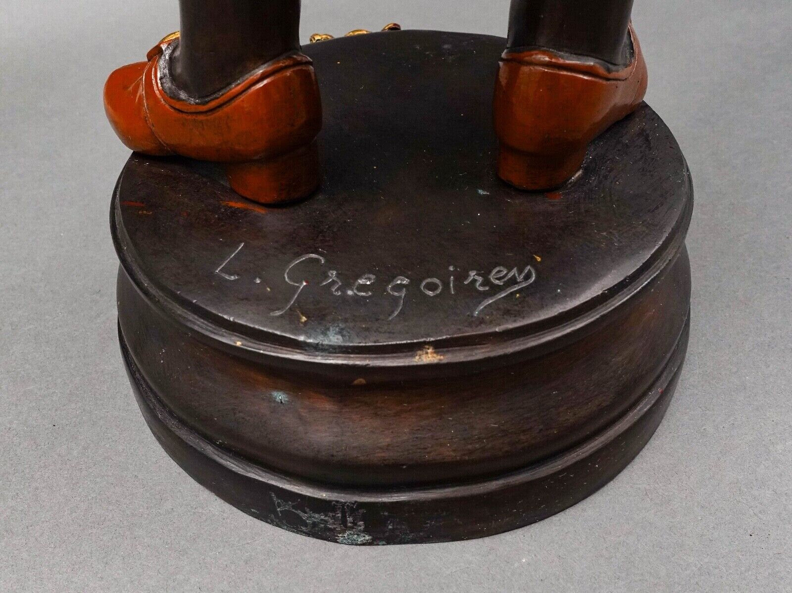 L. Gregoirey Signed Large Mozart With Violin Bronze Statue Sculpture.