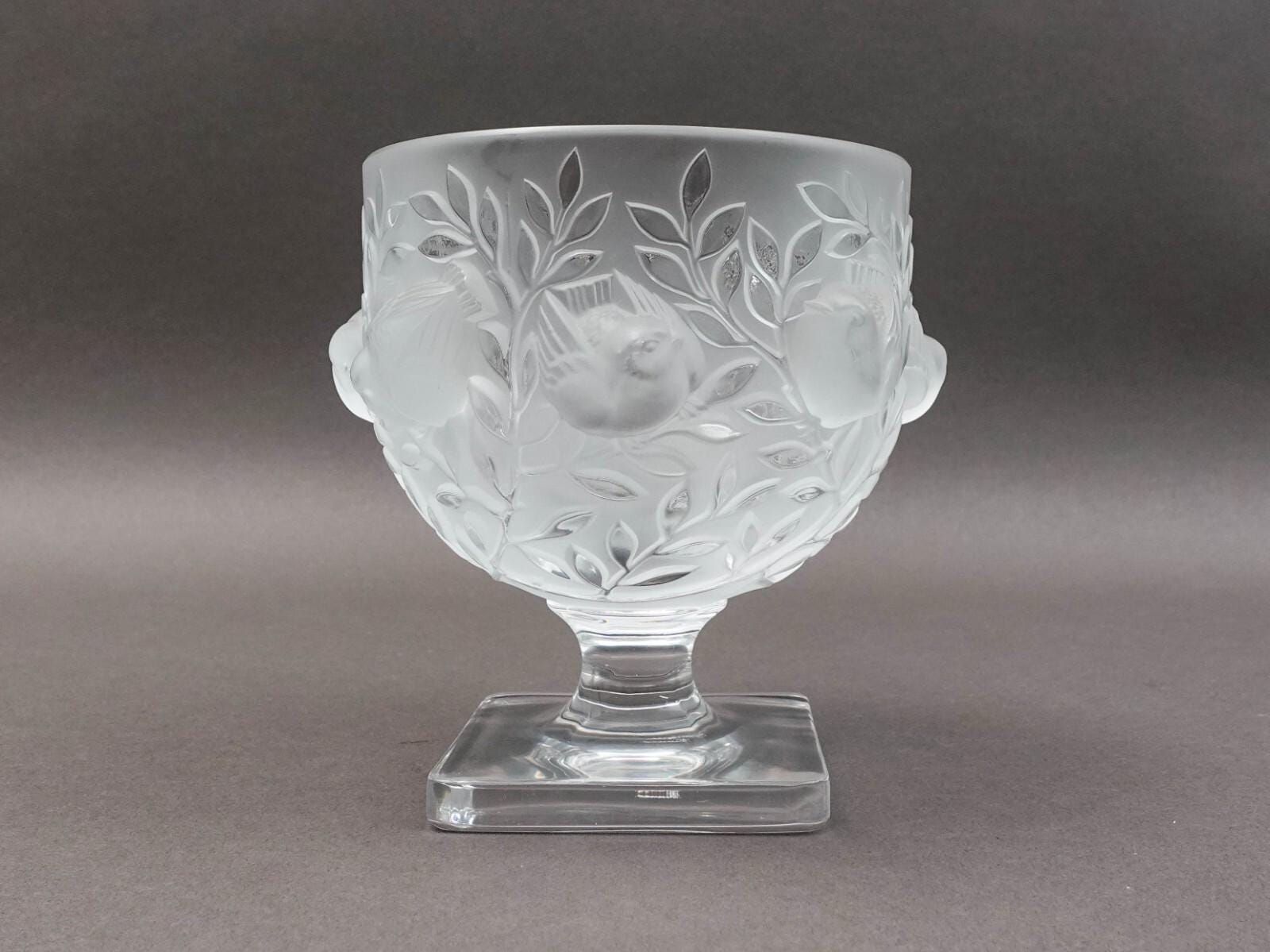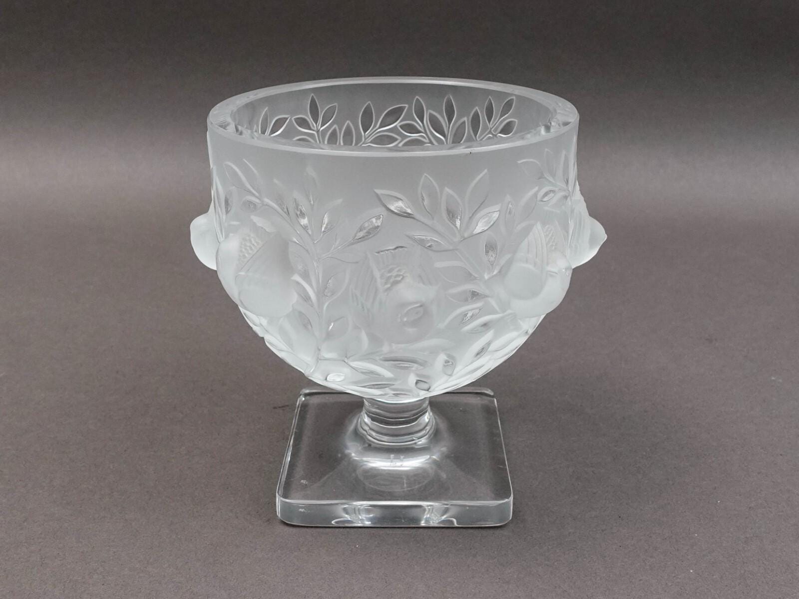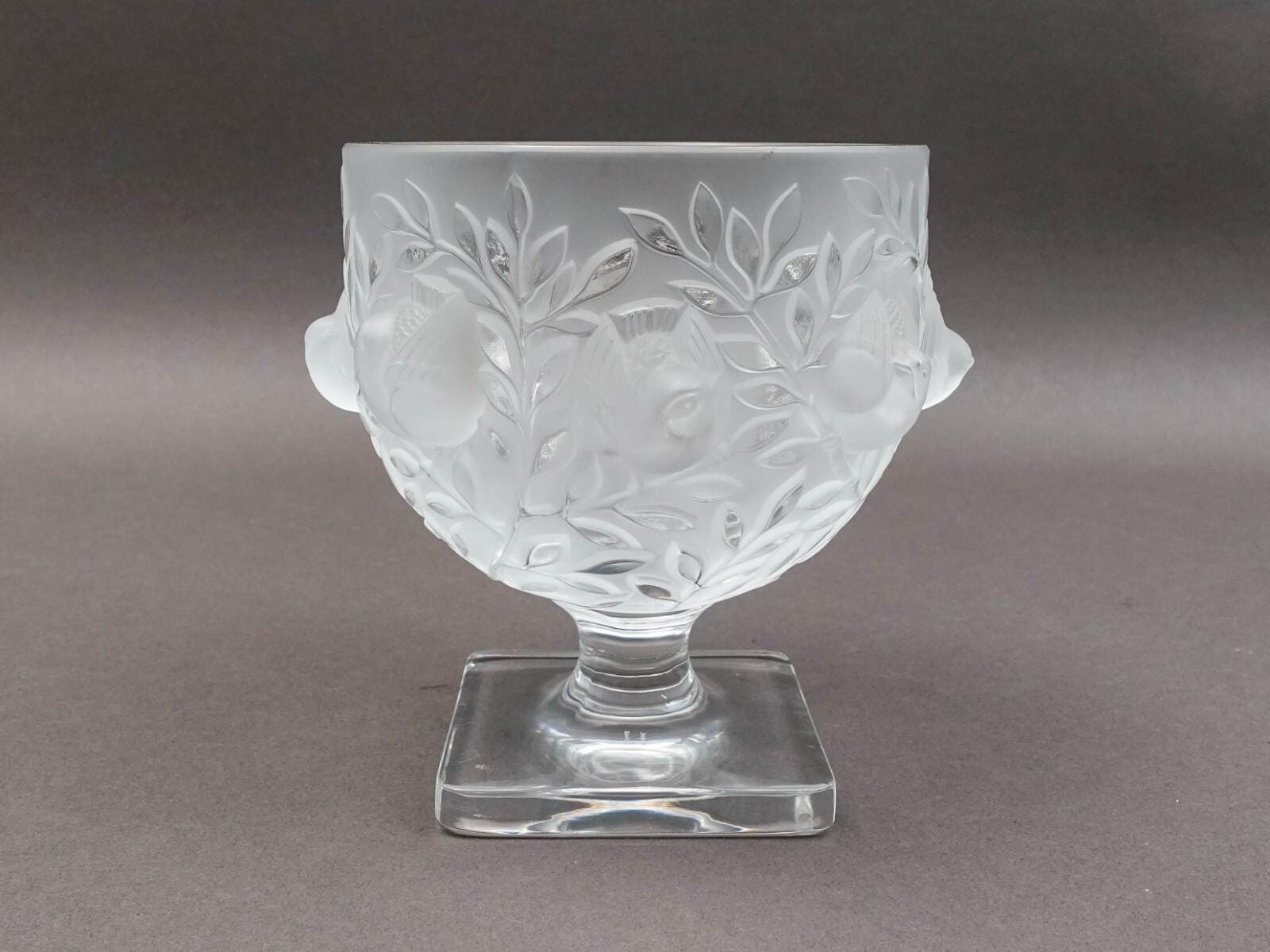 Lalique France Elisabeth Sparrow Birds Frosted Crystal Compote Footed Bowl Vase