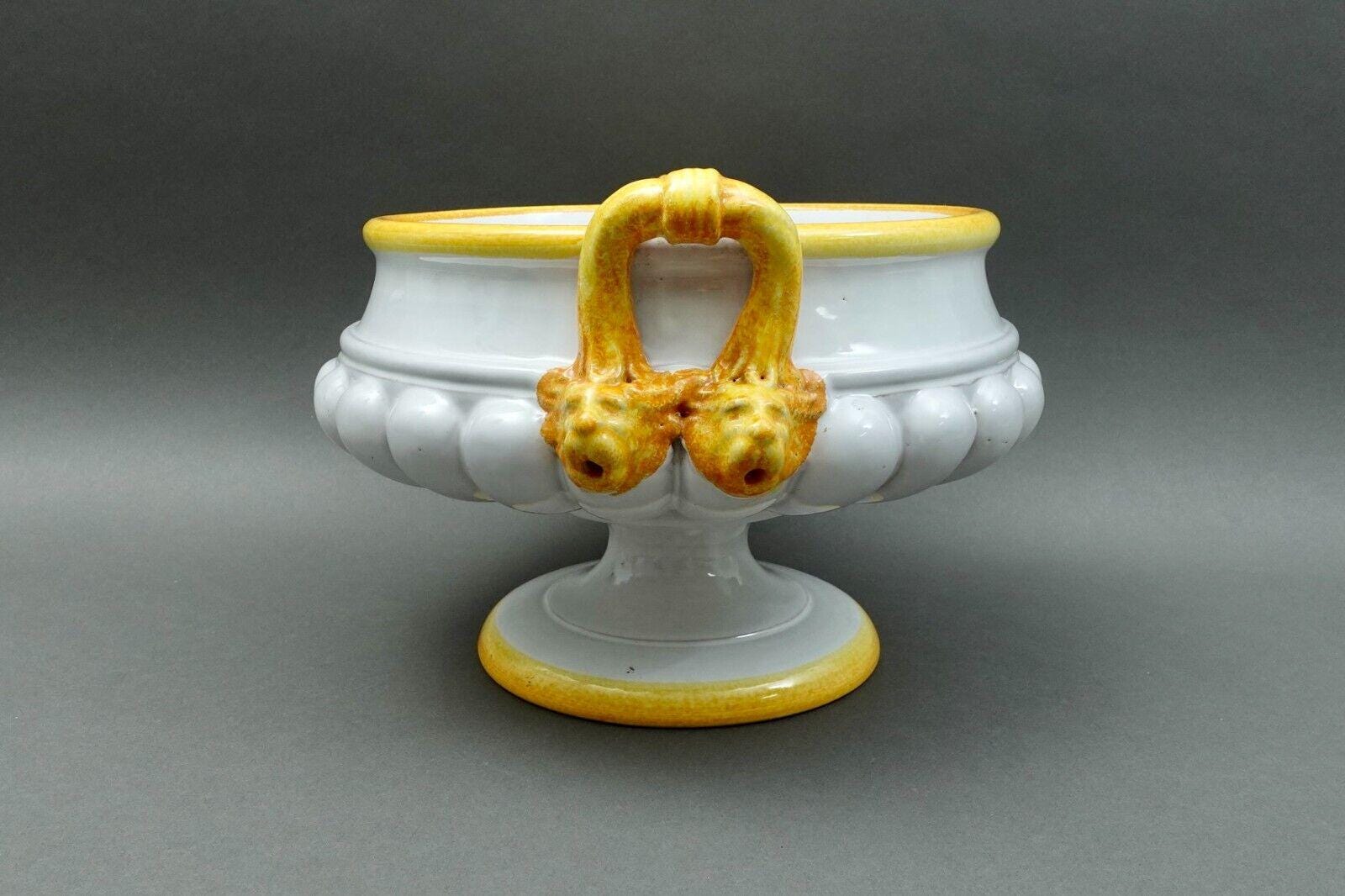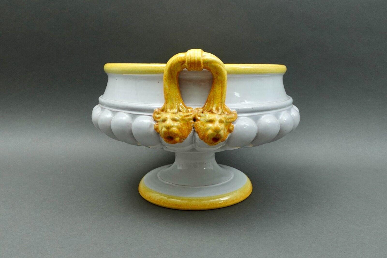 Large Fortunata Italy Handmade Pottery Centerpiece Pedestal Compote Bowl Lion's
