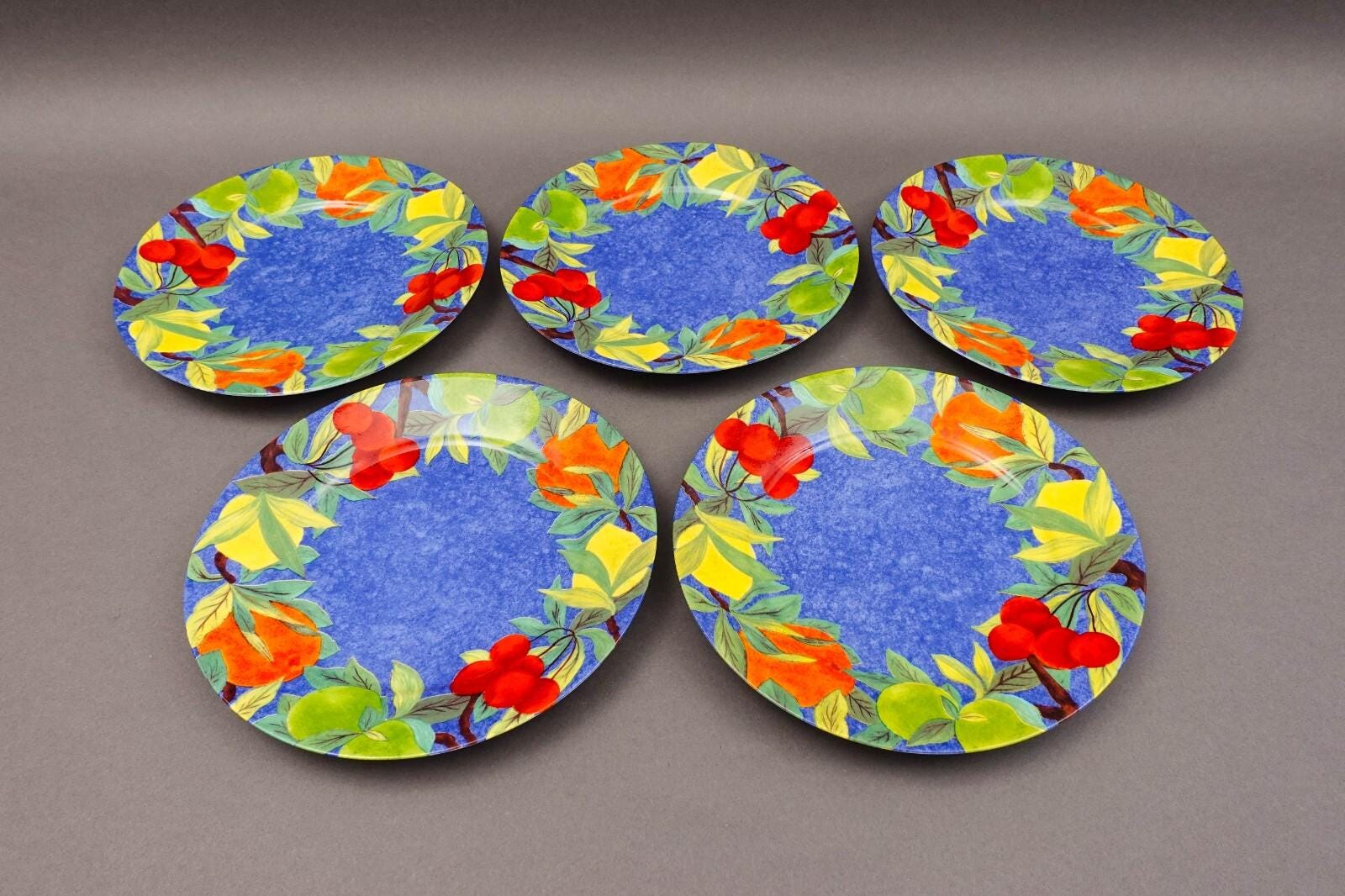 Laure Japy Paris Limoges France Jardin Bleu Fruit 8 3/4" Salad Dessert Plates
