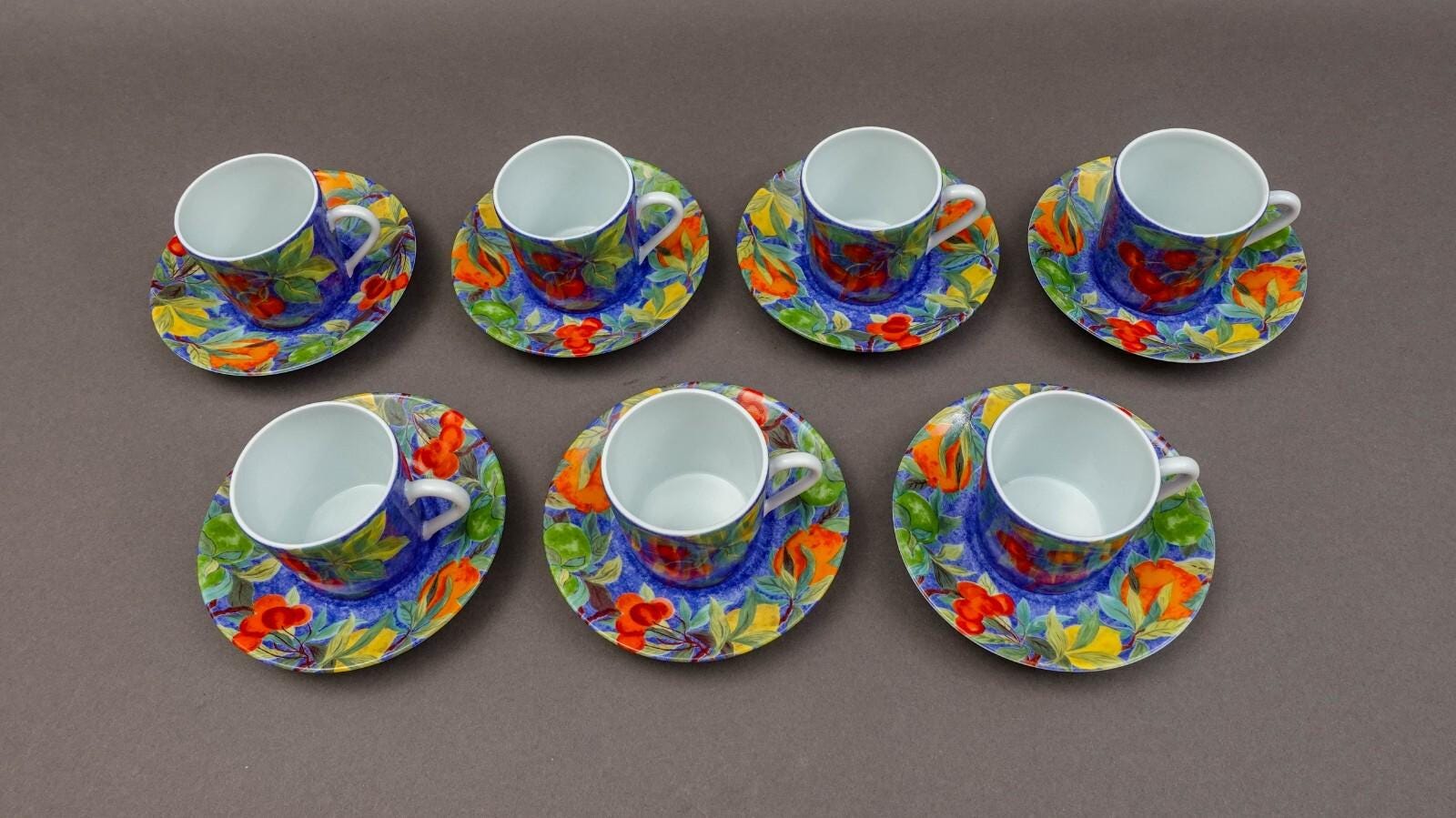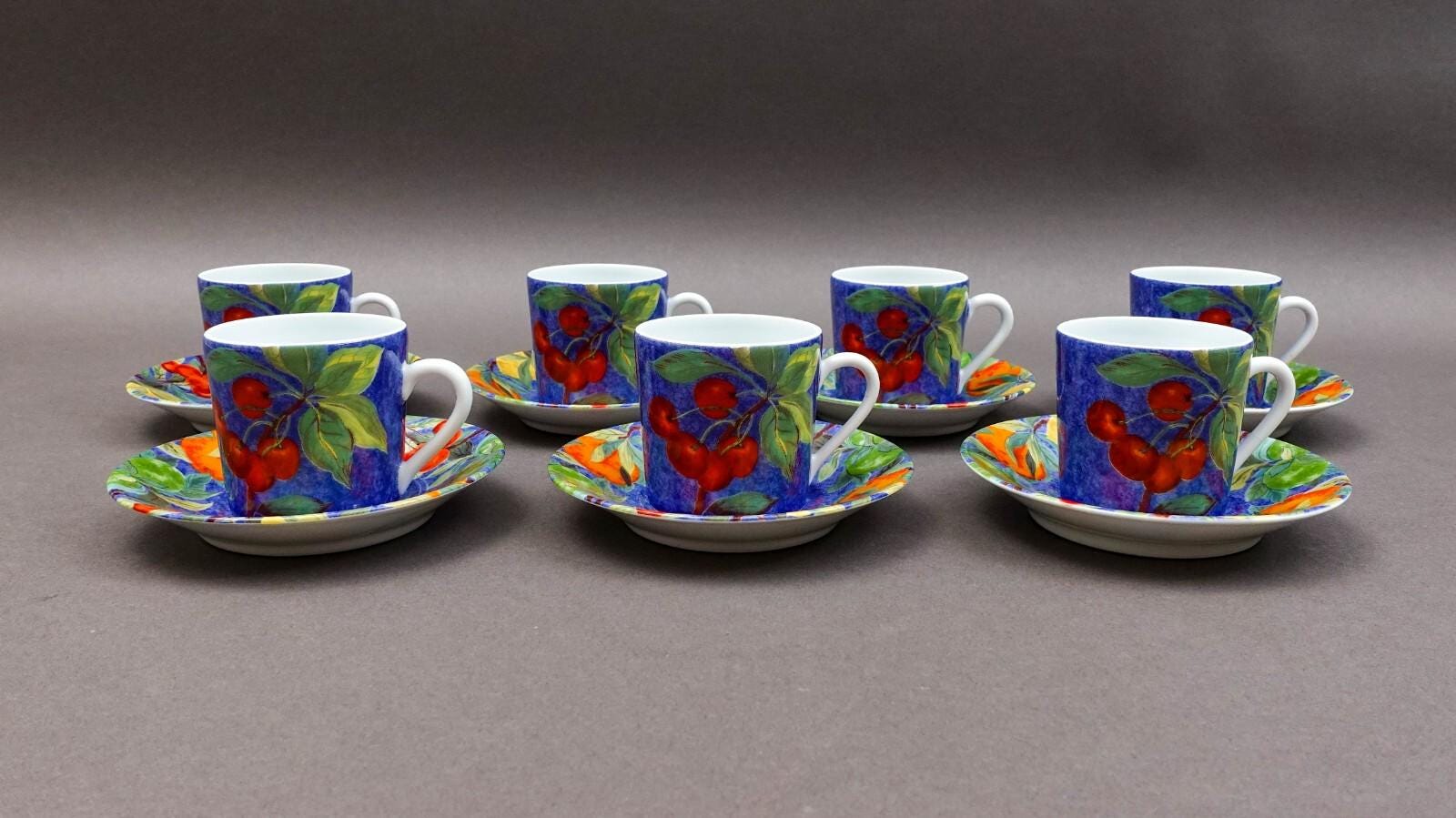 Laure Japy Paris Limoges Jardin Bleu Fruit Demitasse Cup & Saucer Set Of 7