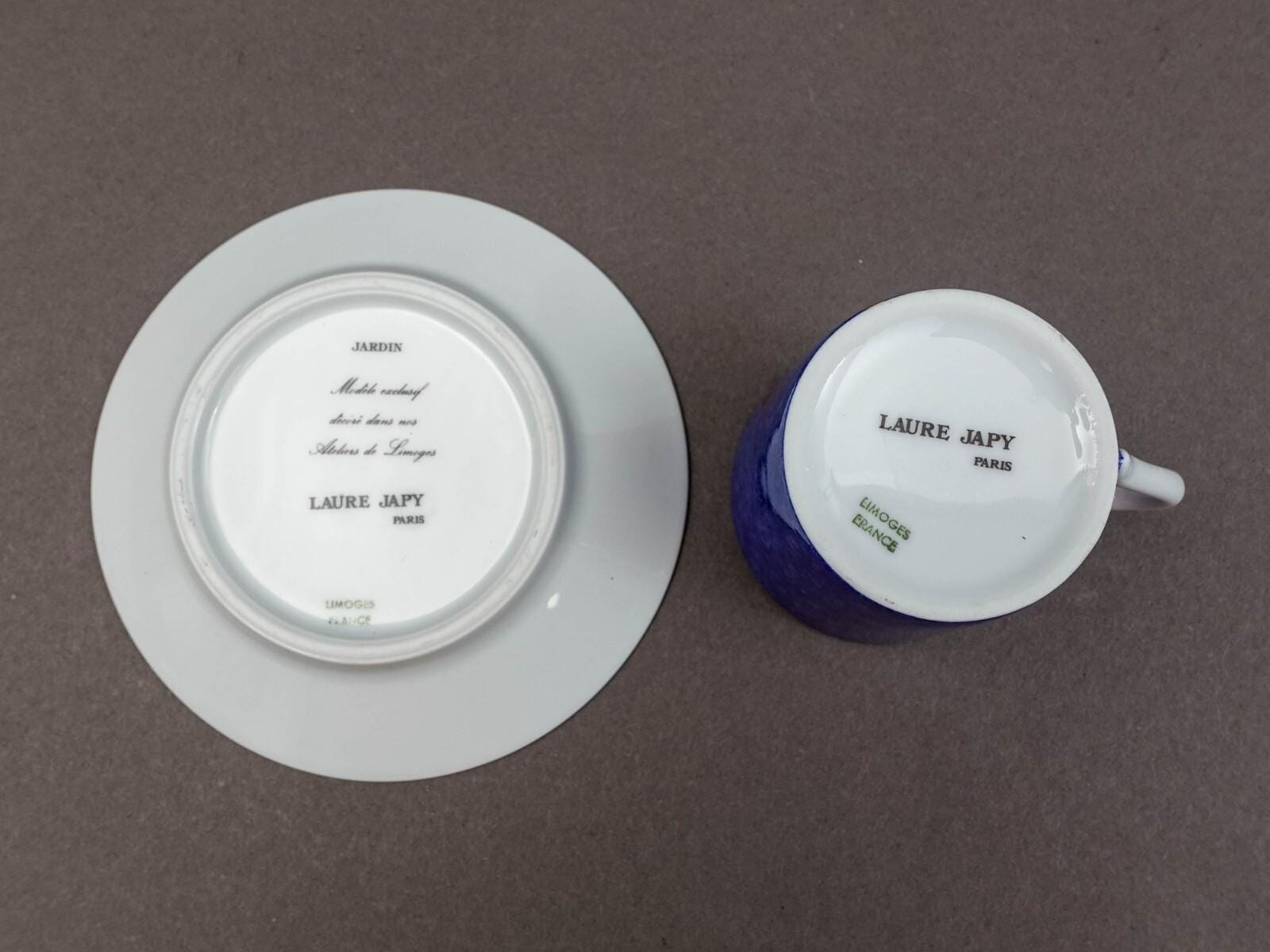 Laure Japy Paris Limoges France Jardin Bleu Fruit Demitasse Cup & Saucer Set Of