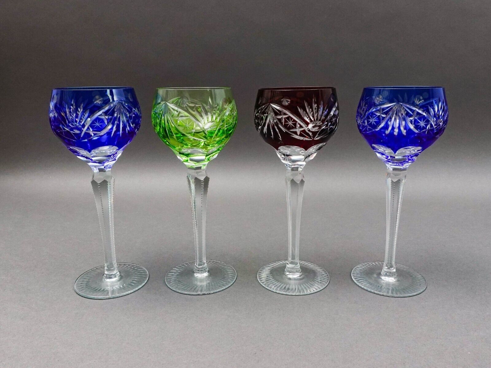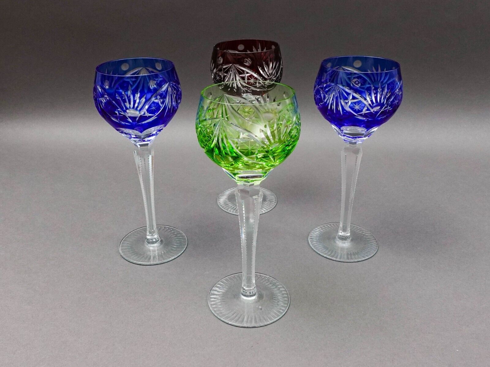 Lausitzer Bohemian Cut to Clear Crystal Fans Stars Roundlets Wine Hock Glasses Goblets Set Of 4.