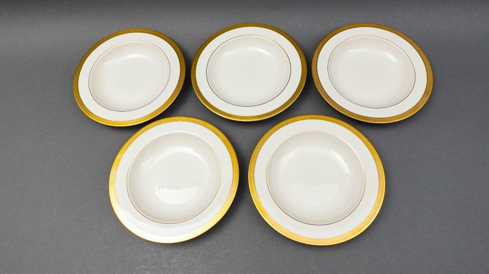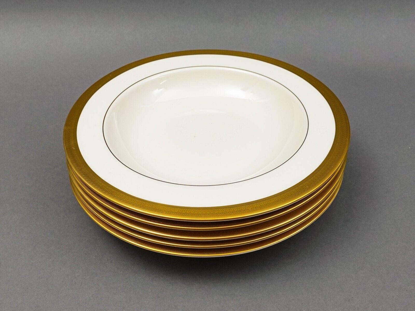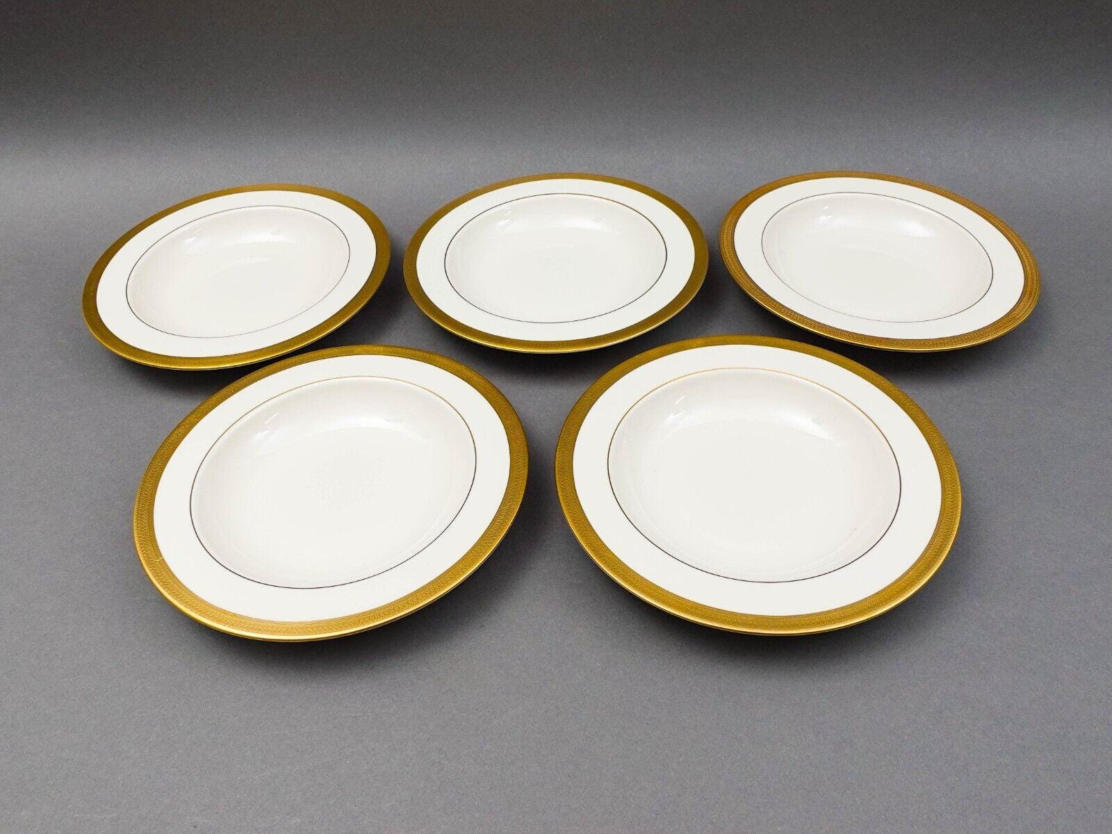 Lenox Lowell Fine Bone China Gold Encrusted Rimmed 9" Soup Bowl Set Of 5