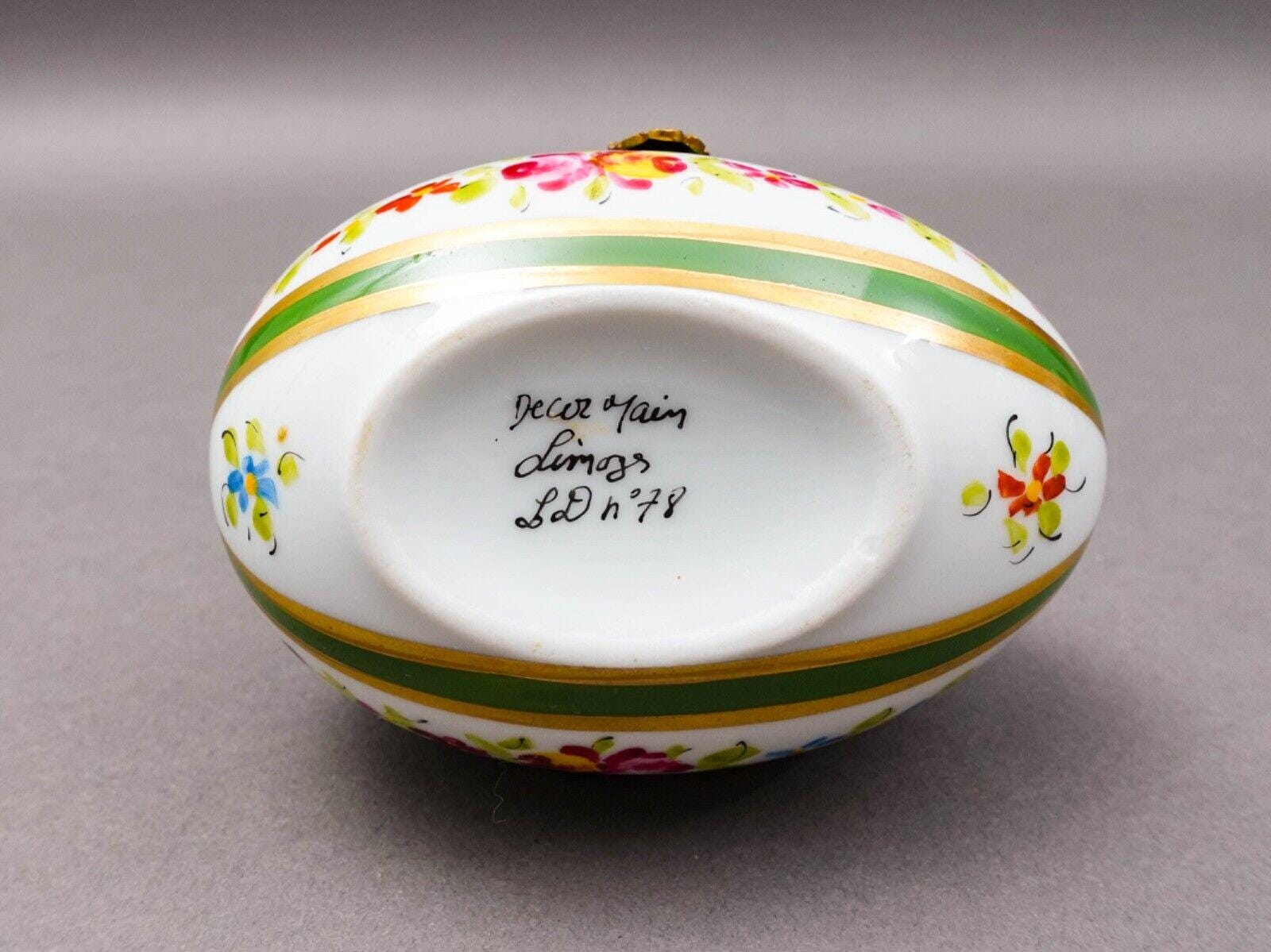 Limoges France Decor Main Green & Gold Floral Porcelain Egg Hinged Trinket Box