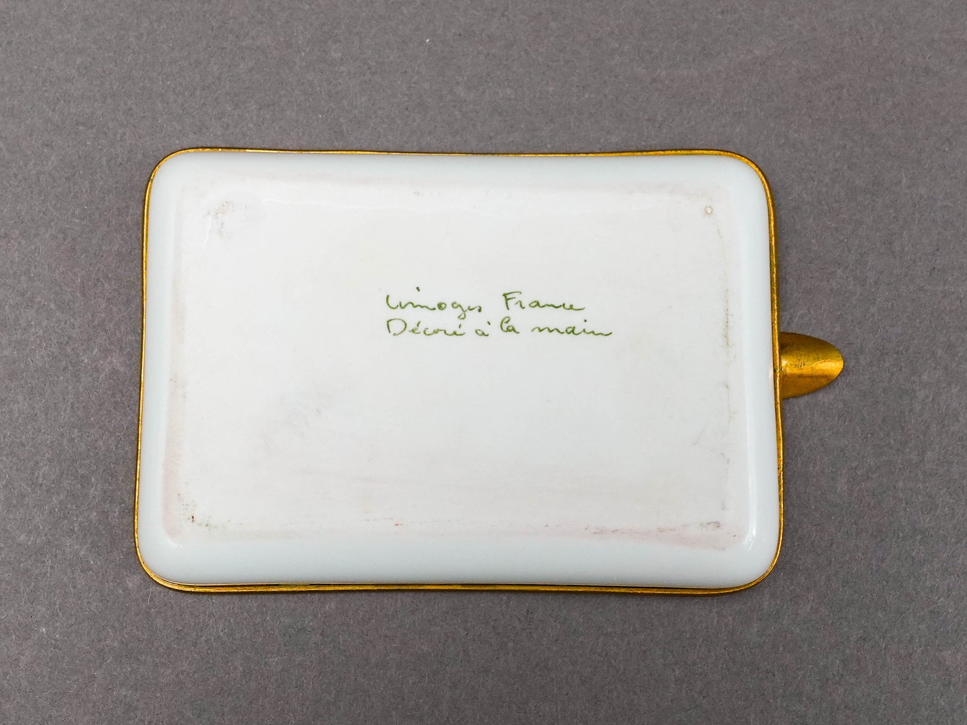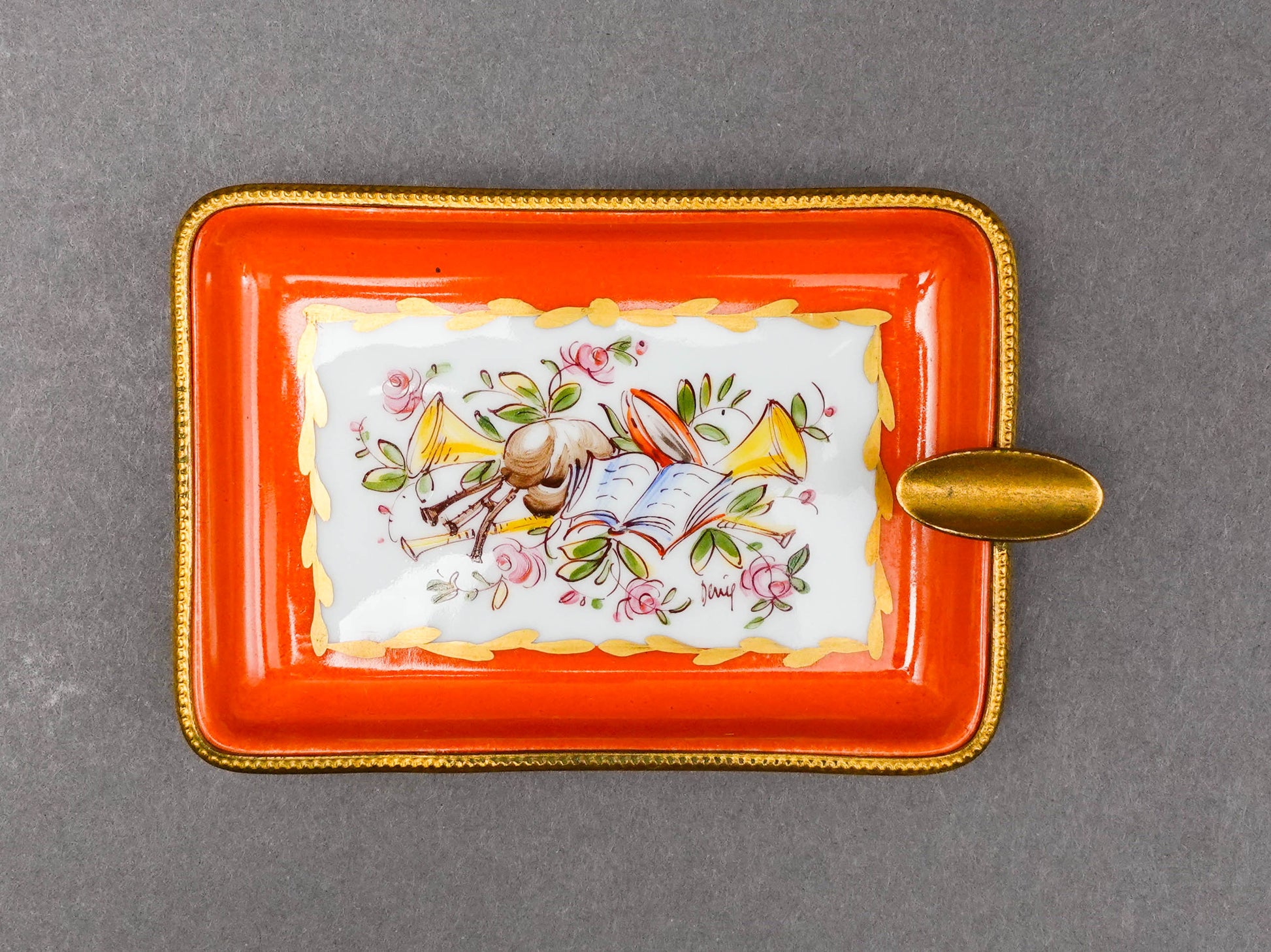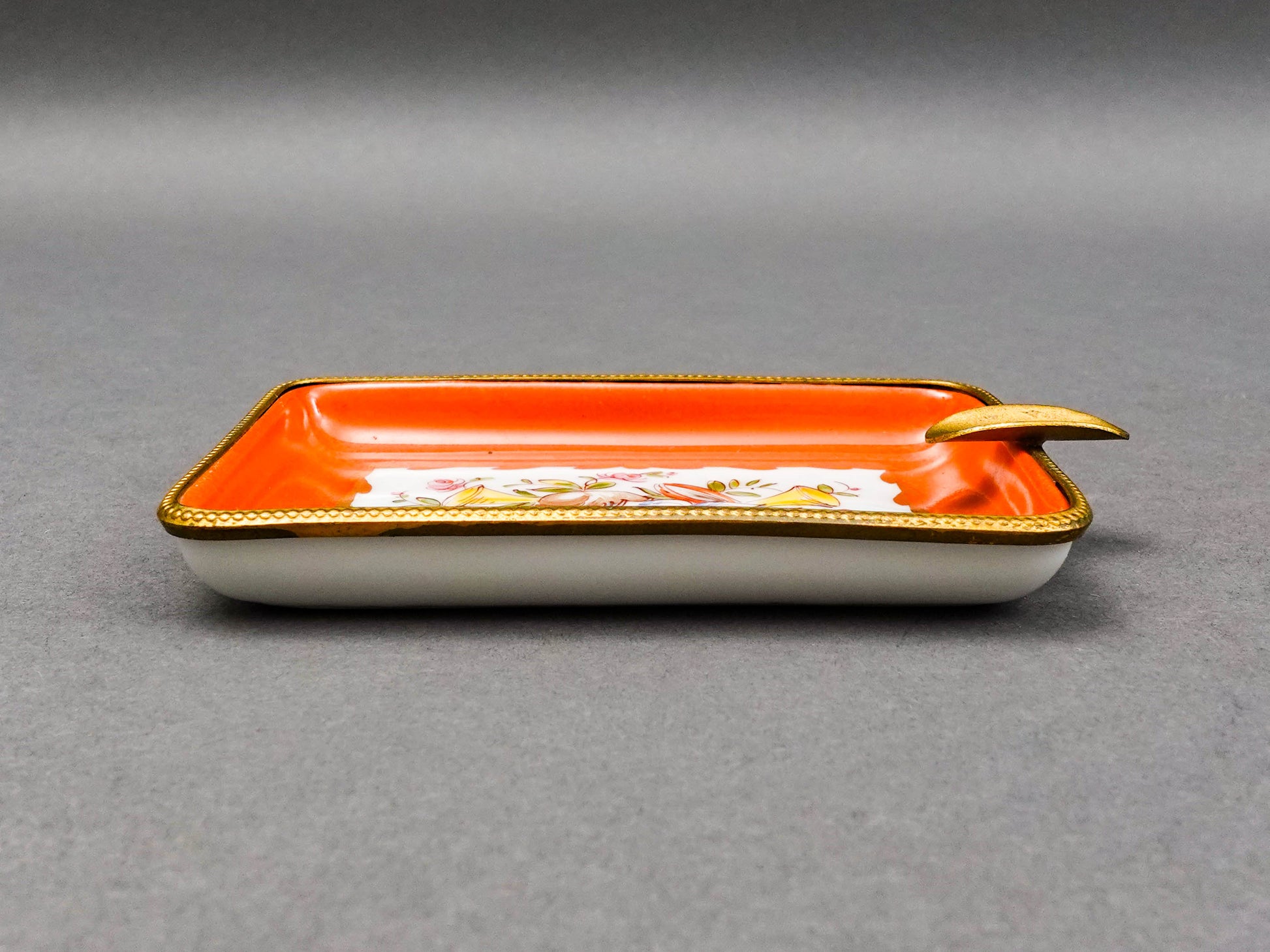 Limoges France Decore A La Main Handpainted Porcelain Bronze Ormolu Ashtray Dish