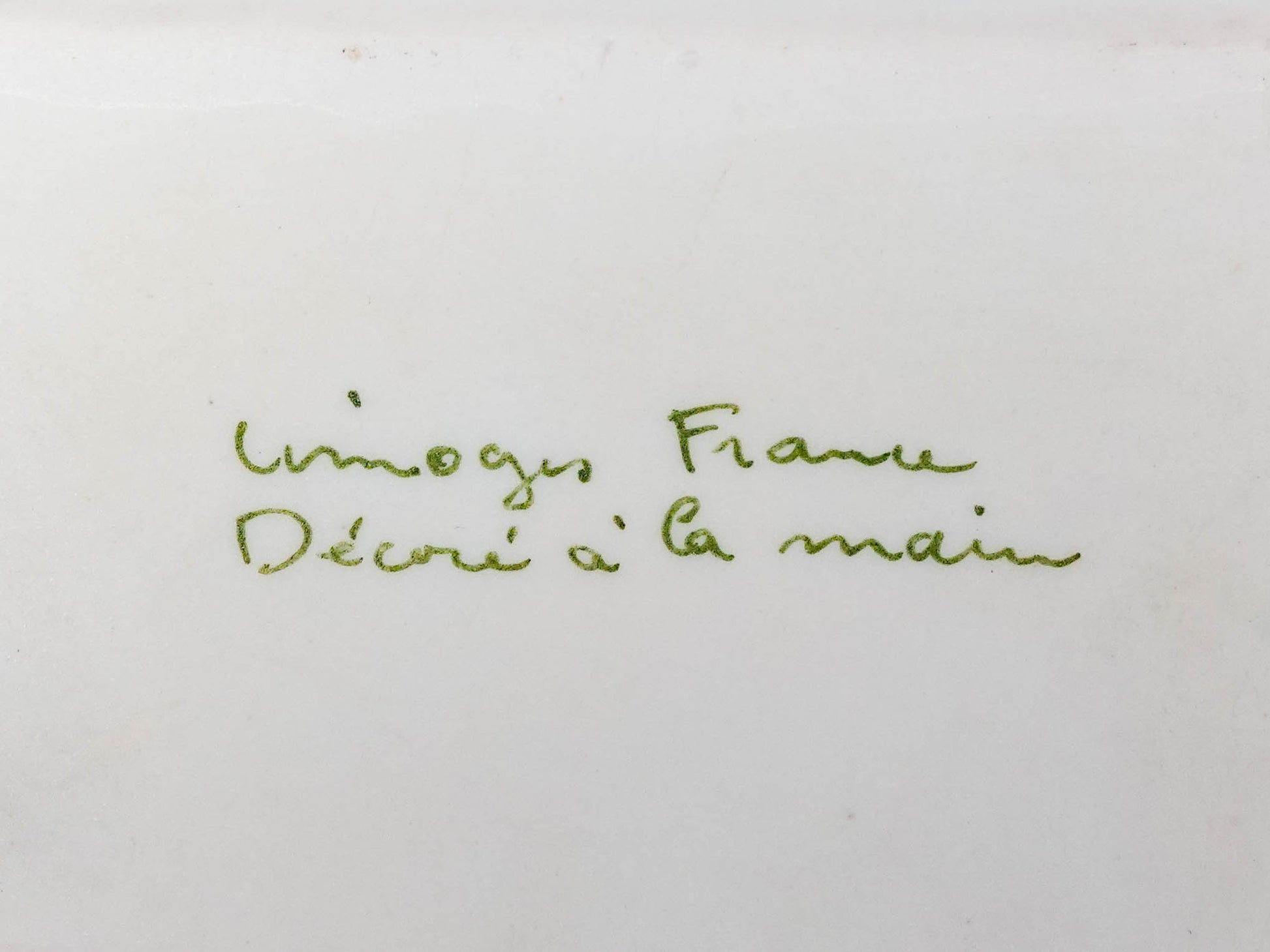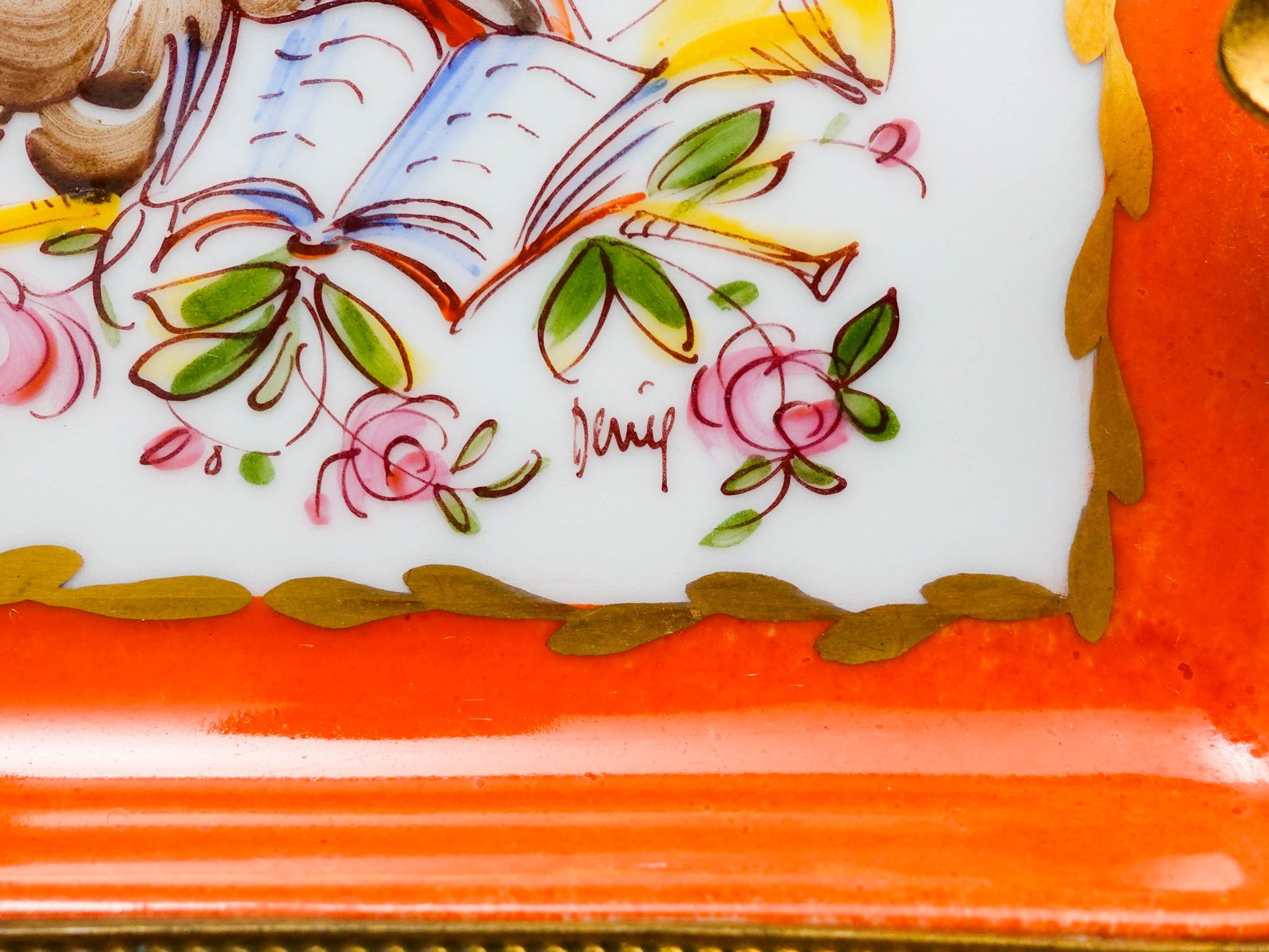 Limoges France Signed Decore A La Main Hand Painted Porcelain Bronze Ormolu Ashtray Dish