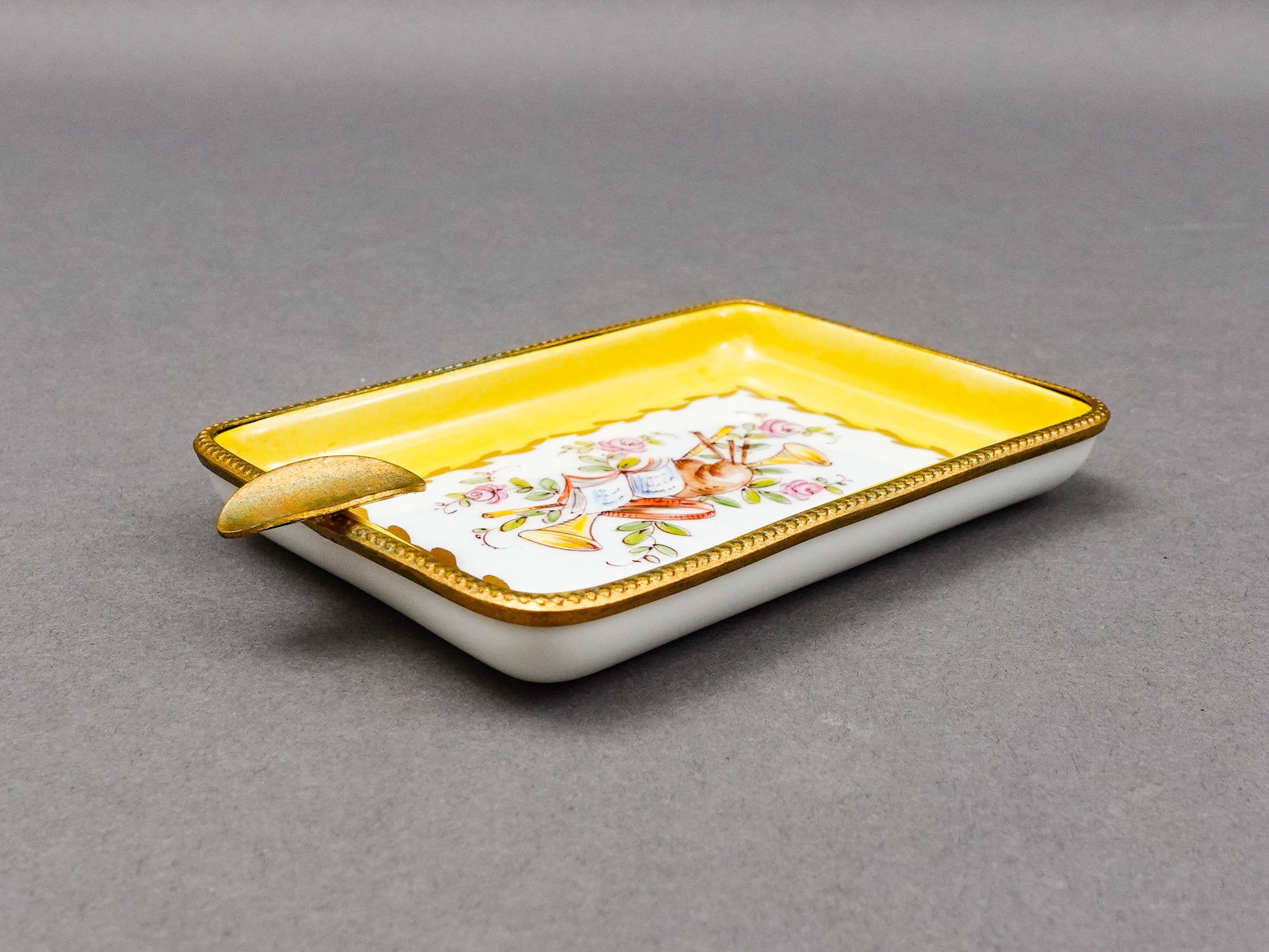 Limoges France Decore A La Main Handpainted Porcelain Bronze Ormolu Ashtray Dish