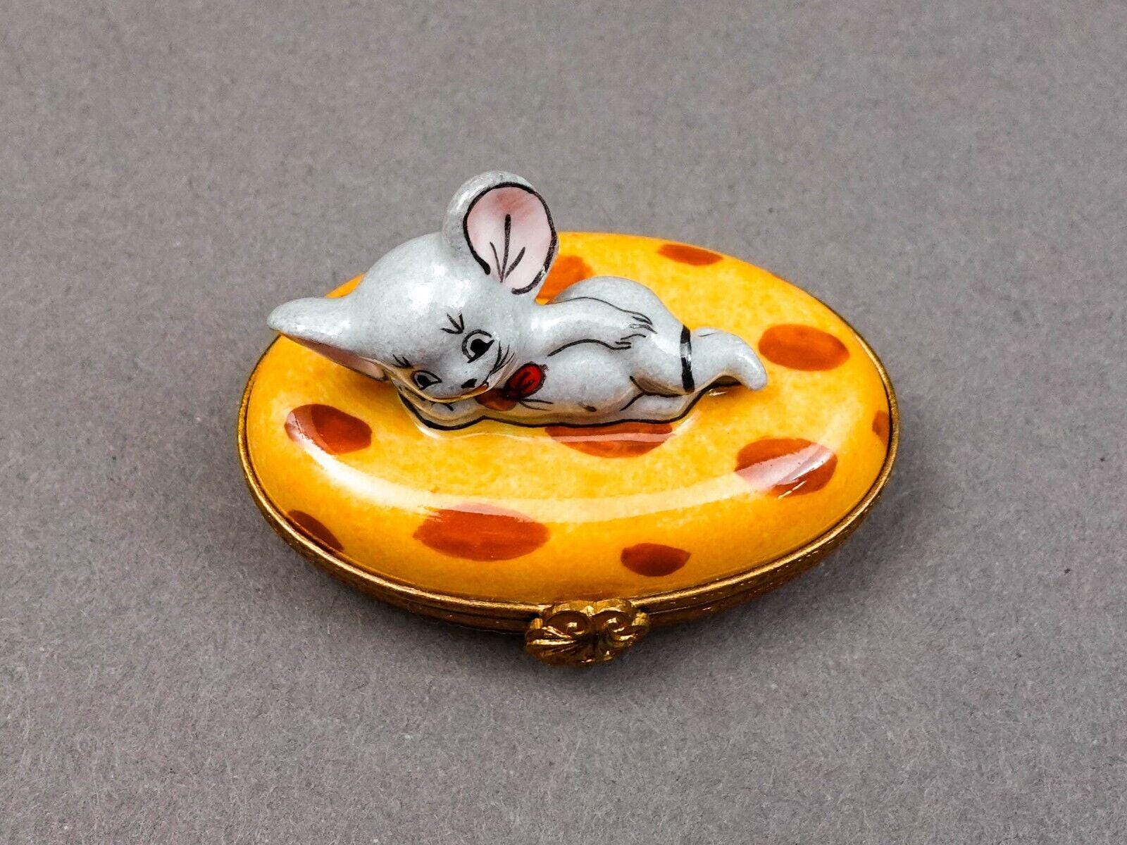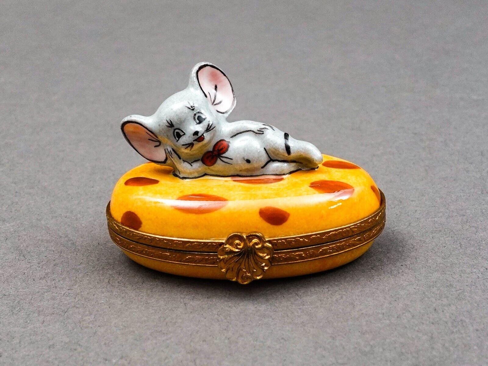 Limoges France Signed Peint Main Hand Painted Mouse And Cheese Porcelain Hinged